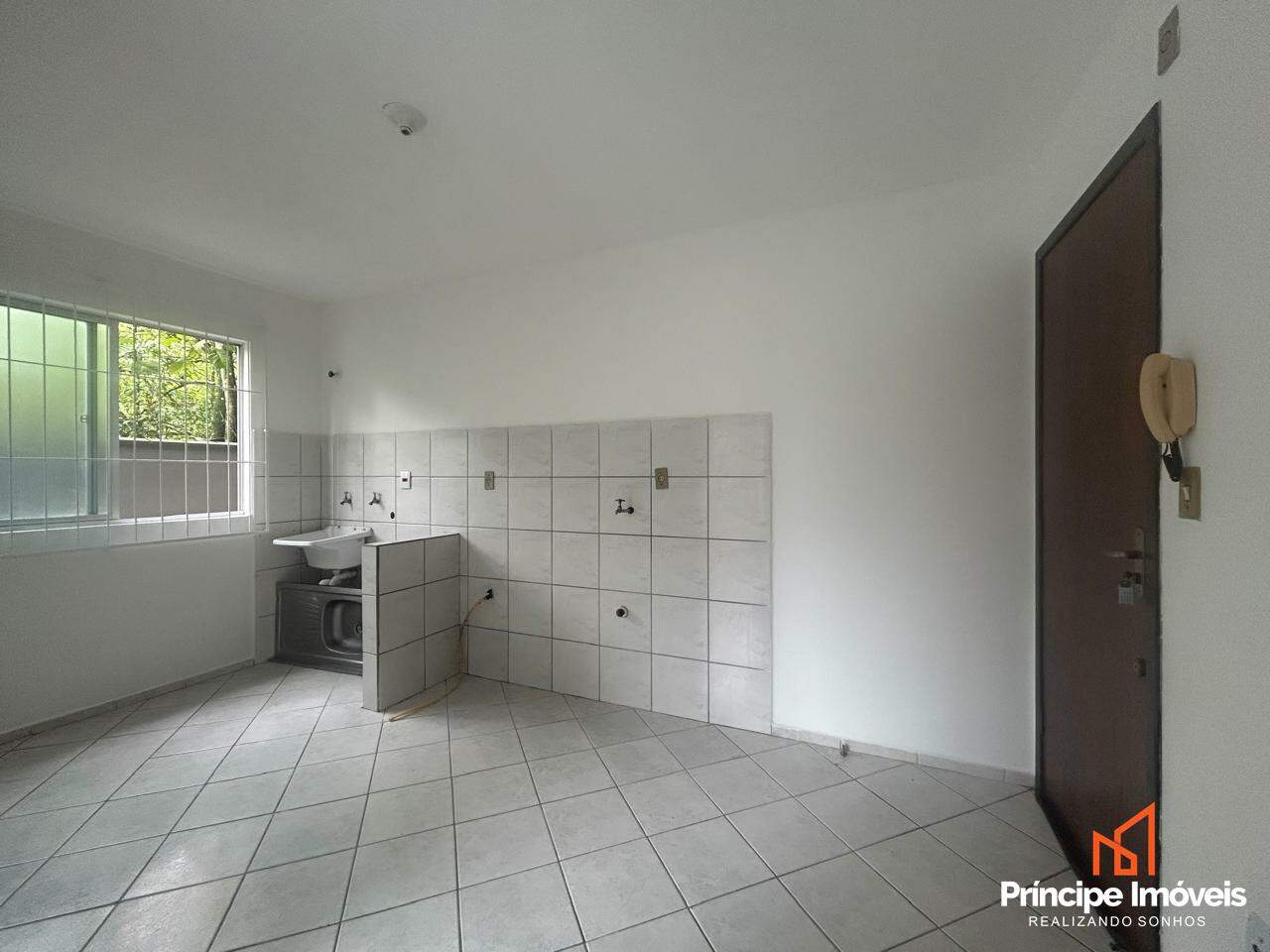 Apartamento térreo com 36,00 m² de área privativa e 46,00 m² de área total. Conta com 01 dormitórios, 01 banheiro social, sala de estar e cozinha com área de serviço conjugada. . Possui vaga de garagem rotativa.