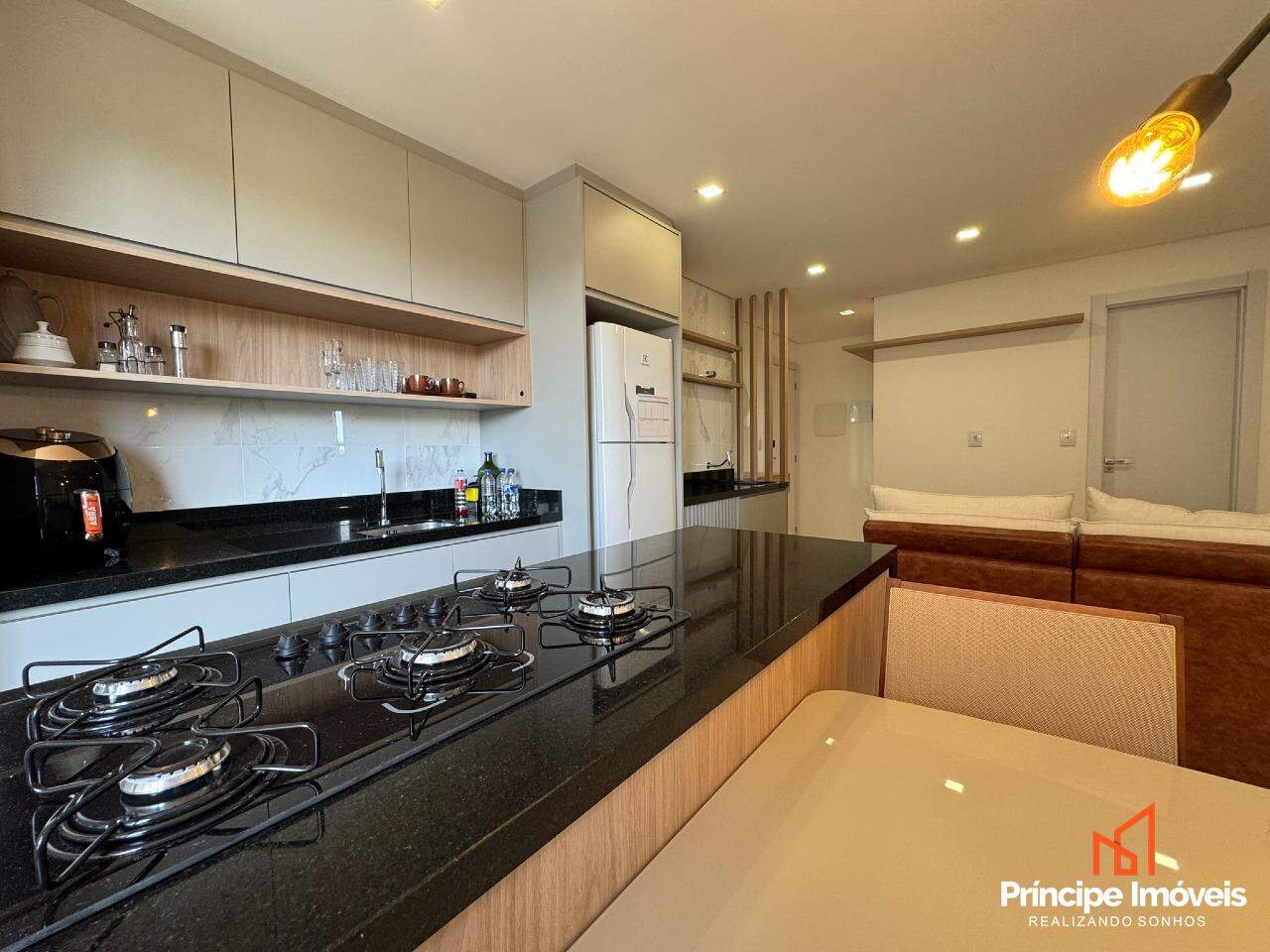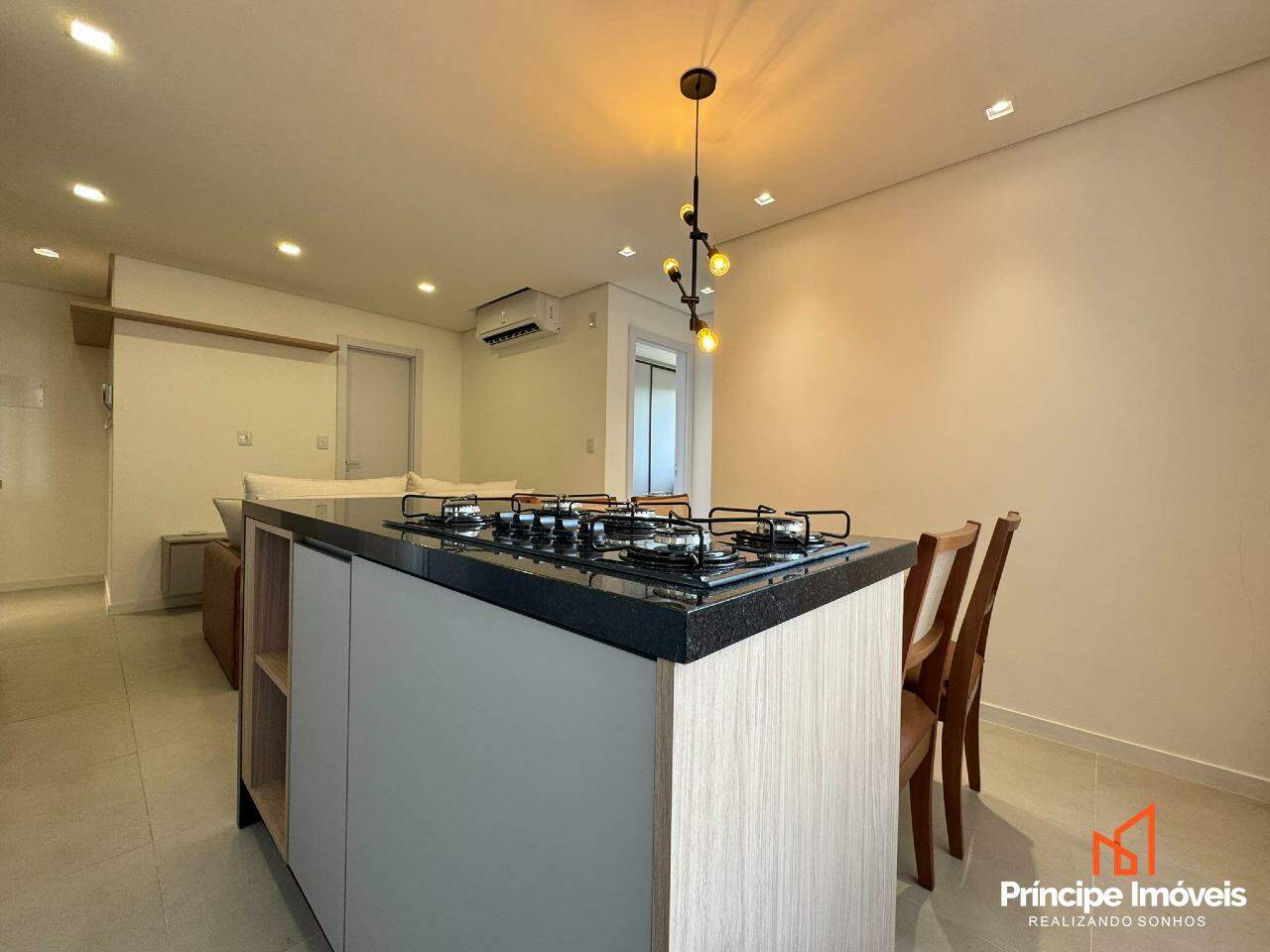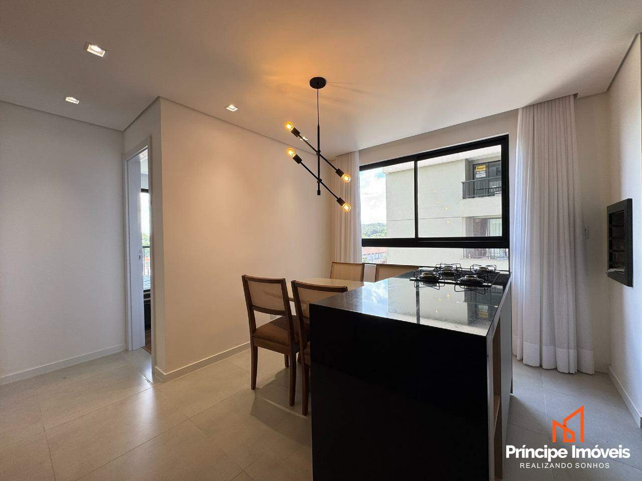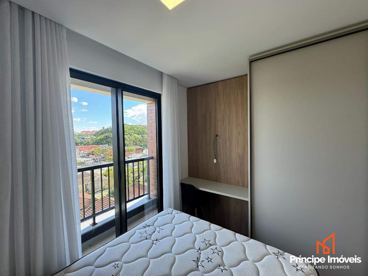 Apartamento mobiliado, no terceiro andar. Oferece 02 dormitórios, sala de jantar conjugada com a de estar, cozinha no conceito de espaço aberto com móveis planejados, cooktop geladeira e churrasqueira à carvão. Ainda conta com 01 banheiro, com sacada integrada, paredes duplas com isolamento, ponto elétrico para torneira na cozinha, piso laminado no quarto e porcelanato nos demais ambientes. Fechadura eletrônica, manta de isolamento no contra piso dos quartos e 01 vaga de garagem coberta. Tudo isso distribuído em um ambiente novo e moderno e aconchegante.