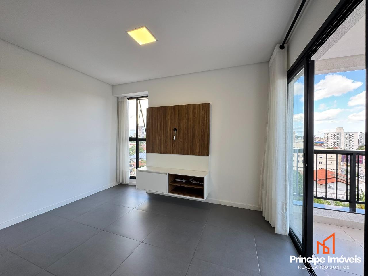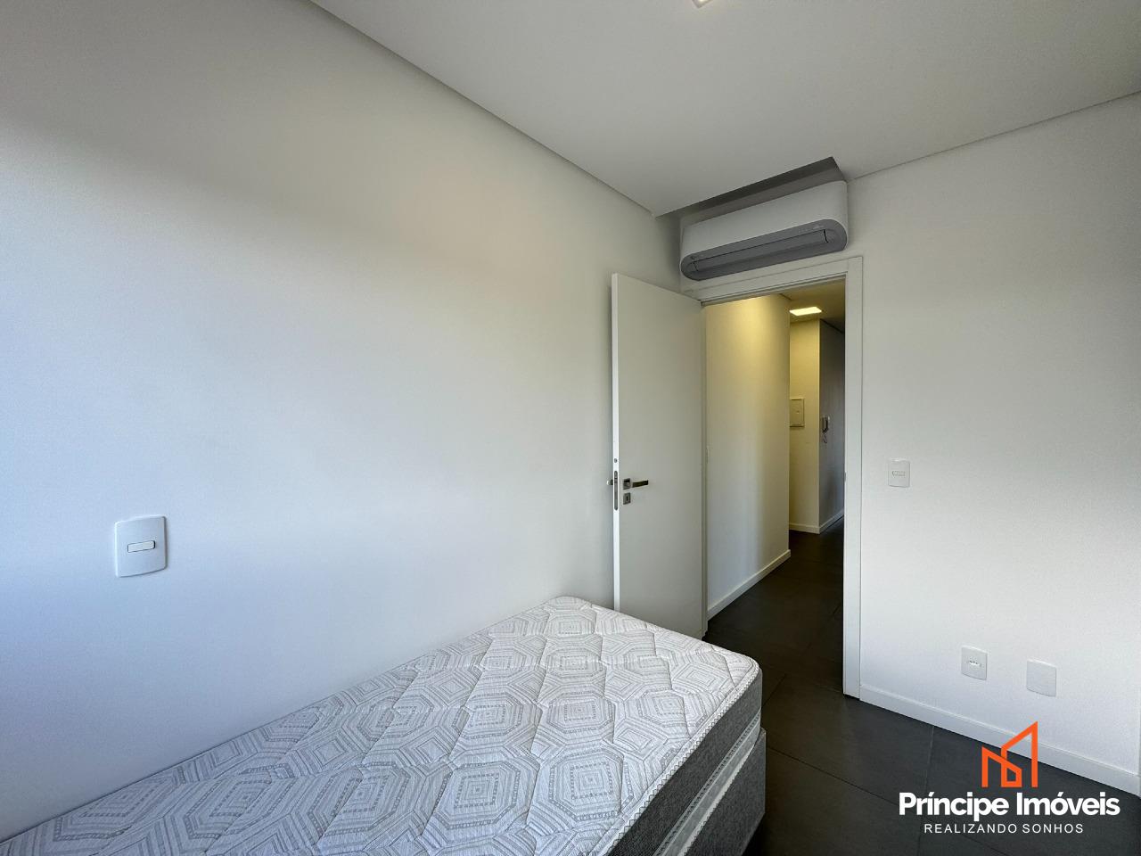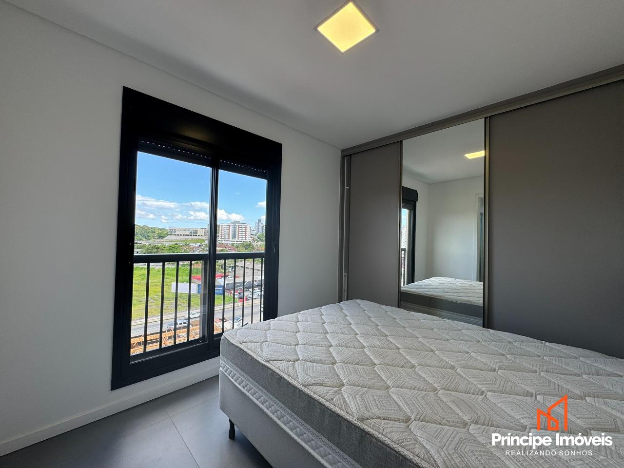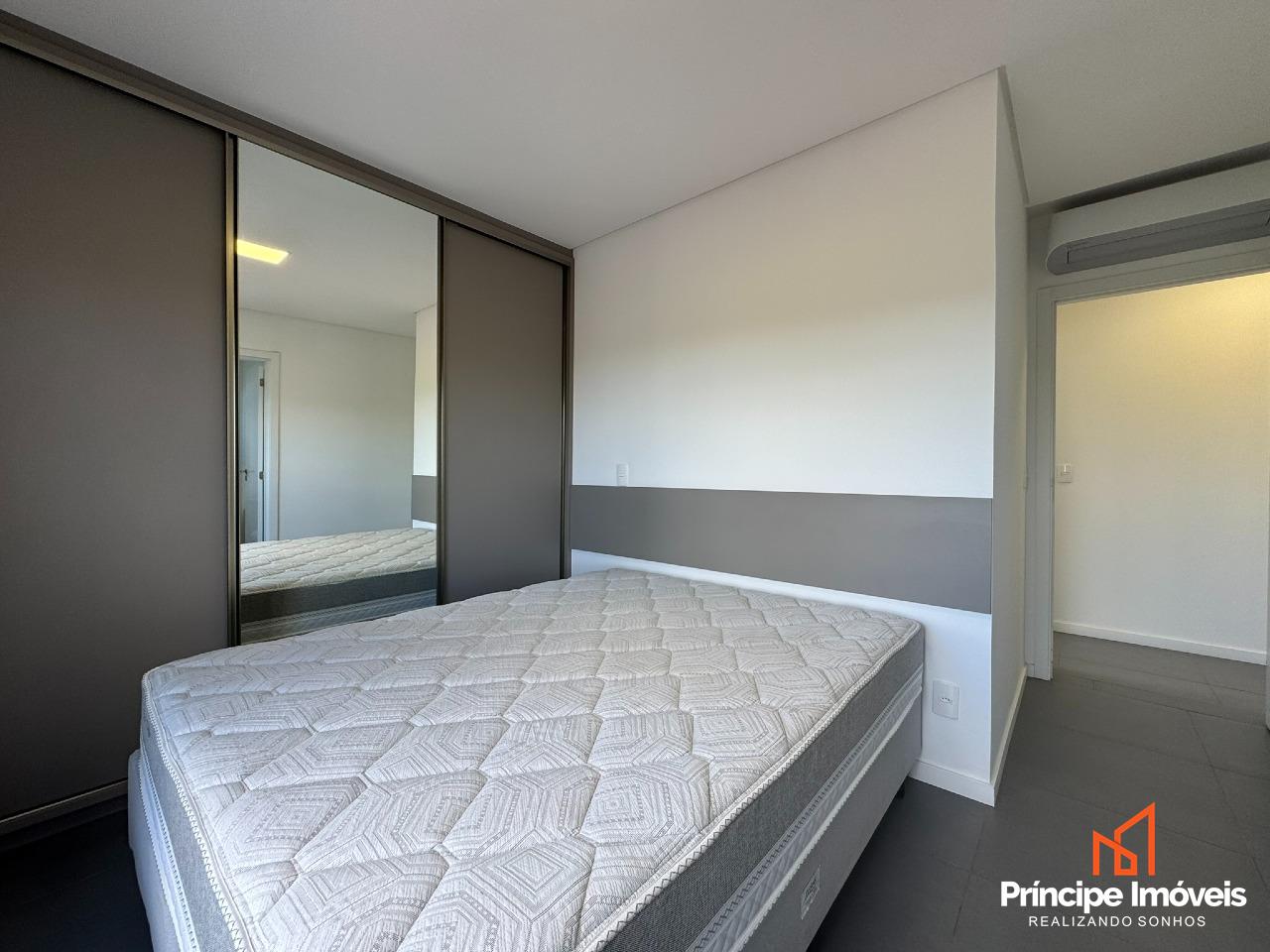 Apartamento sem mobiliado com acabamento de alto padrão com 02 dormitórios, sendo uma suíte. Em andar alto com bela vista da cidade. Oferece sala de jantar conjugada com a de estar, cozinha no conceito de espaço aberto com móveis planejados e eletros, e ar condicionado em todos os cômodos. Ainda, os quartos possuem armários planejados, e sistema de persianas. Conta com 01 banheiro social, com sacada com churrasqueira a carvão, e 01 vaga de garagem coberta e sacada técnica. Tudo isso distribuído em um ambiente novo e moderno.
