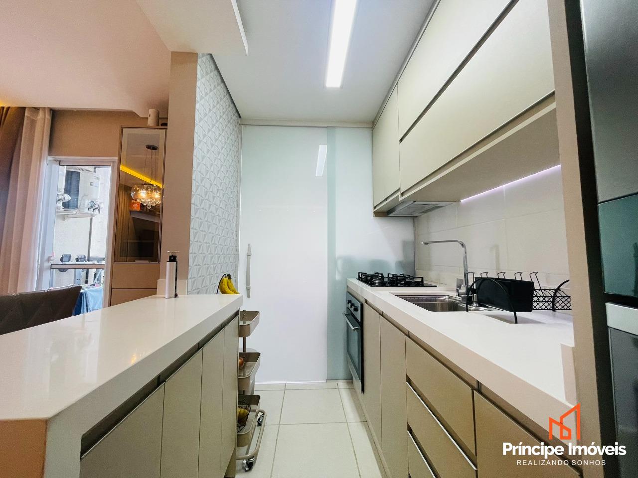 Apartamento: 11º andar com elevador, um lindo apartamento de 54,67m² de área privativa e 90,81m² de área total. Este apartamento impecável une modernidade e funcionalidade com móveis planejados em todos os cômodos, otimizando cada espaço. O imóvel conta com 02 quartos, banheiro social e uma charmosa sala e cozinha integradas, perfeitas para o convívio. Sacada com churrasqueira para momentos de lazer e a área de serviço isolada, garantindo mais organização no dia a dia. Pronto para morar, é a escolha ideal para quem busca conforto e praticidade em uma localização privilegiada.