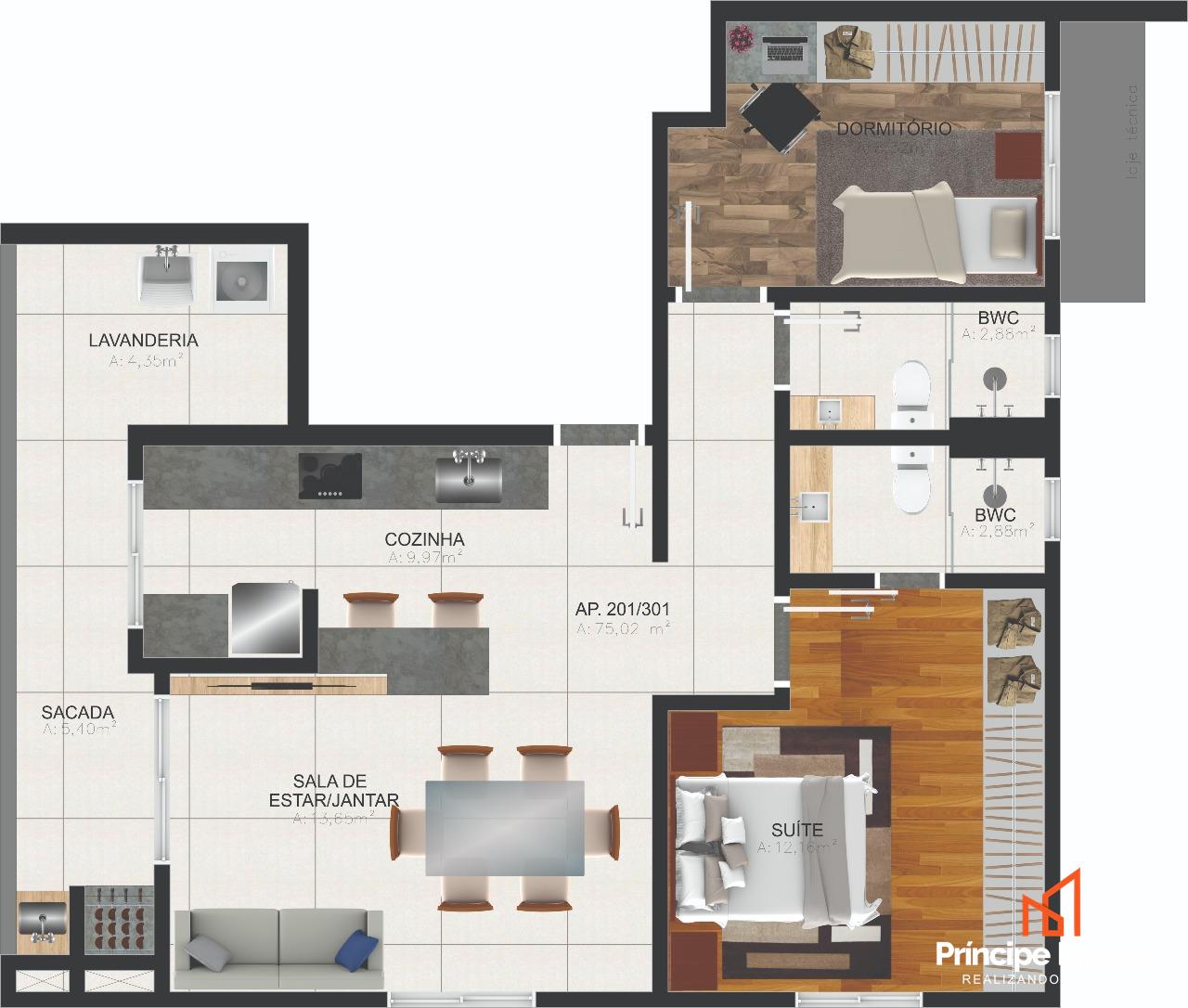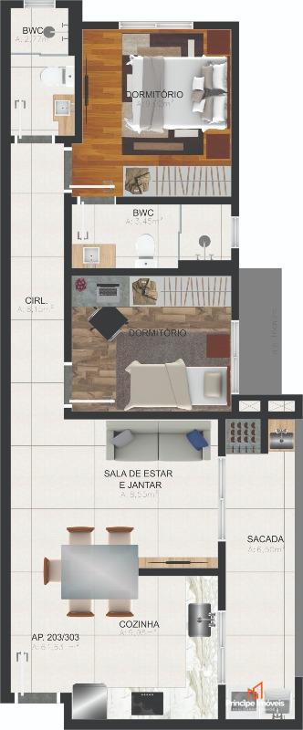 Apartamento: No 2° andar com elevador, esse apartamento irá te surpreender pela ótima planta que oferece, com 75m² de área privativa, e 106,27m² de área total, composto por 02 quartos sendo 01 suíte, sacada com churrasqueira, 01 banheiro social, cozinha, lavanderia e duas vagas de garagem. Trazendo um ótimo padrão de acabamento, infra para ar condicionado, massa corrida, rebaixo em gesso, porcelanato e laminado, agende agora mesmo uma visita e aproveite essa oportunidade. Entrega prevista para Setembro/2026.