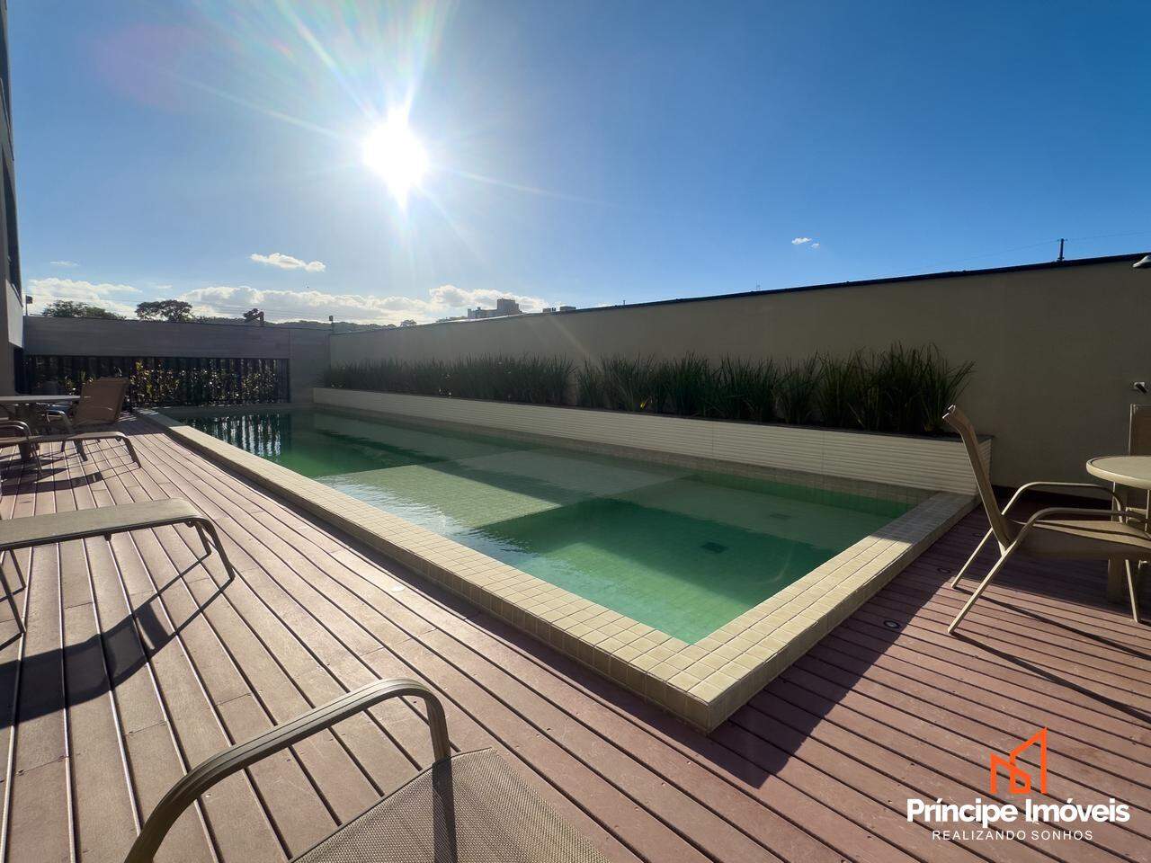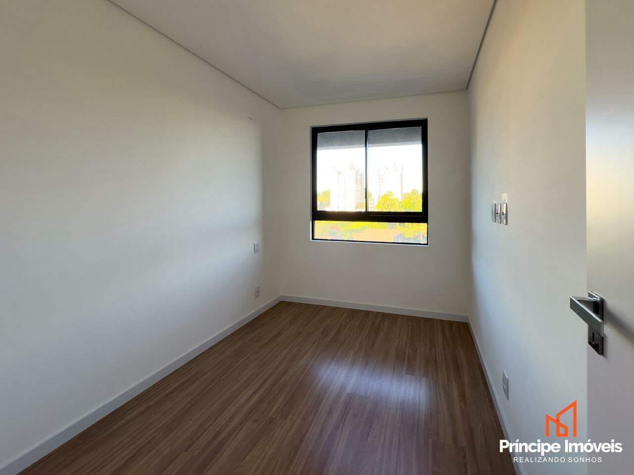 Apartamento: No 4º andar, com elevador, este apartamento oferece 76,35m² de área privativa e 107,89m² de área total, com uma planta ampla, funcional e muito bem distribuída. O imóvel conta com 01 suíte e 02 quartos, além de uma cozinha espaçosa em ambiente integrado e área de serviço separada, proporcionando excelente aproveitamento dos espaços. O grande destaque é a sacada ampla com vista privilegiada e churrasqueira a carvão, perfeita para momentos de lazer, além de sacada privativa em um suíte. O apartamento recebe lindo sol da manhã e está situado em rua sem saída, garantindo mais tranquilidade e segurança. Possui acabamento de alto padrão, com piso porcelanato nas áreas sociais e piso laminado nos quartos, rebaixamento em gesso, vidros com isolamento térmico, isolamento acústico de alto desempenho entre unidades, além de preparação para aquecimento a gás. Os banheiros contam com nichos, o acesso ao imóvel é feito por fechadura biométrica, e as esquadrias premium linha Suprema, com vidros refletivos linha Habitat, garantem excelente vedação, conforto térmico e sofisticação. O apartamento dispõe de 01 vaga de garagem de fácil acesso e além de ampla área de guardados individual.