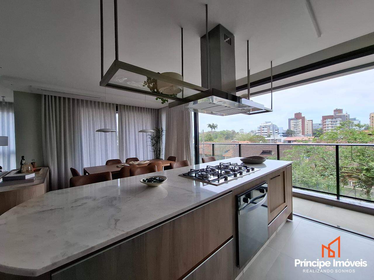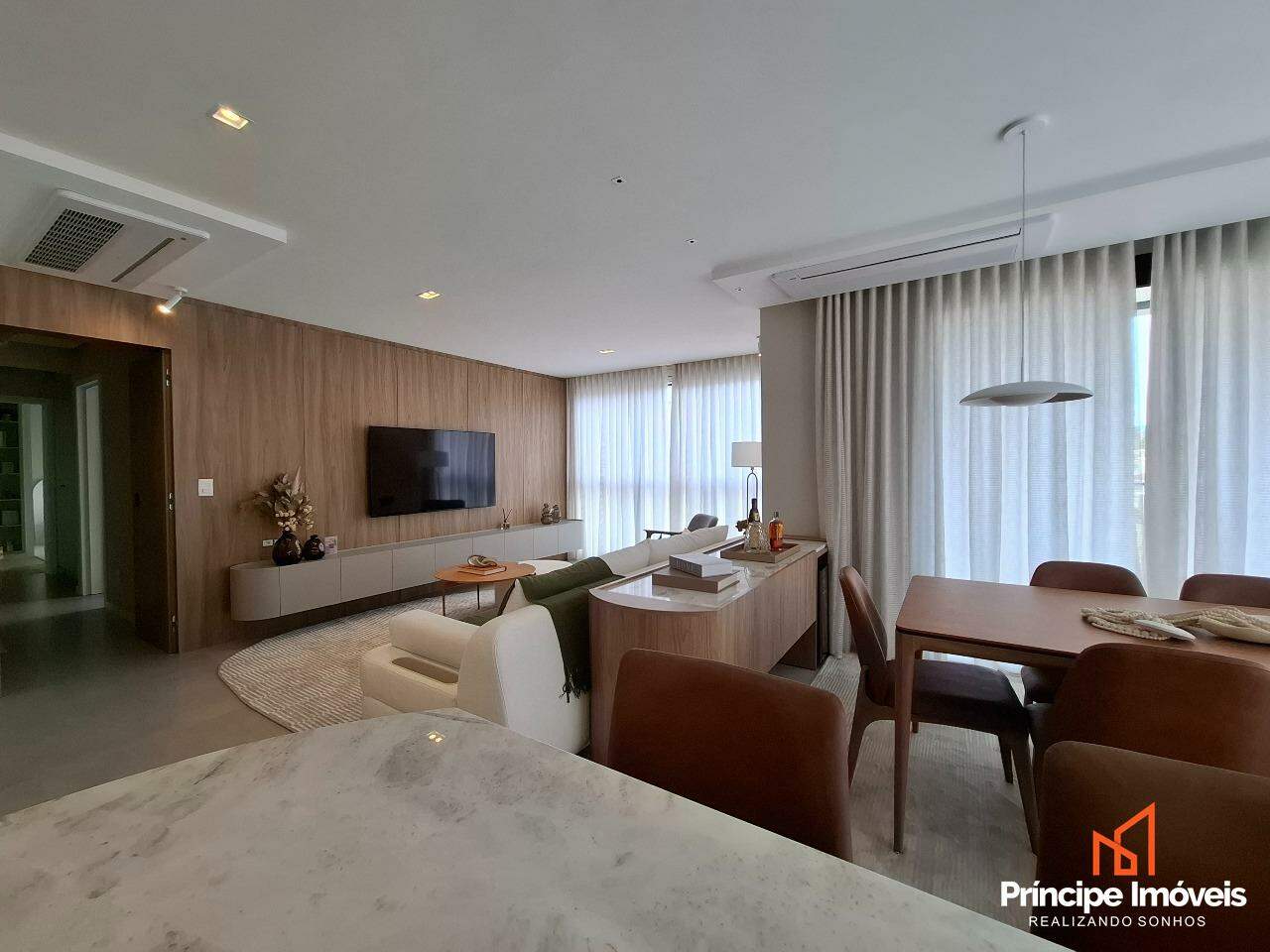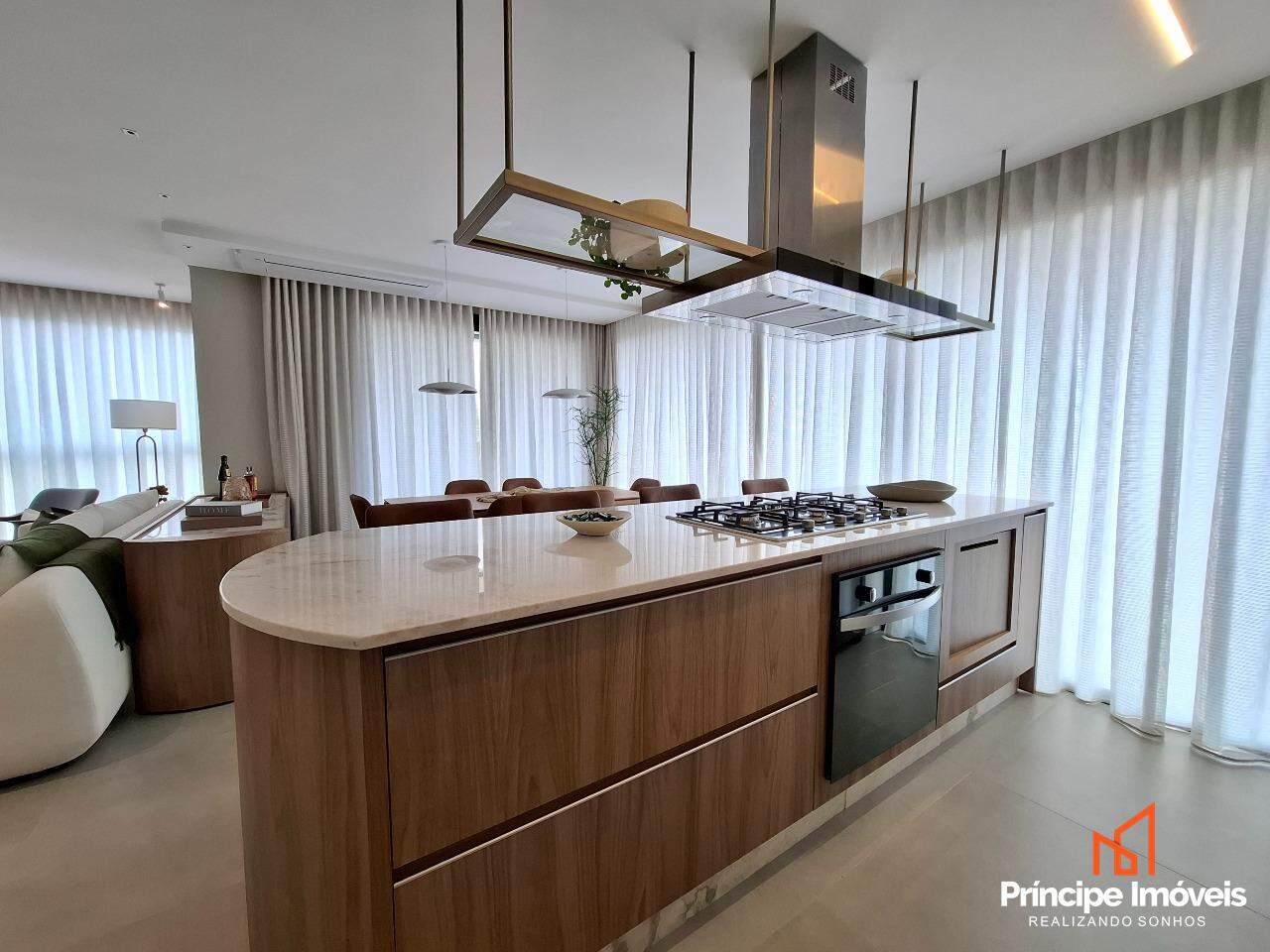 Apartamento: No 3° andar com elevador, possui 153,32m² de área privativa e 217,58m² de área total. O apartamento está 100% decorado e mobiliado, com ótima otimização de espaço proporcionada pela arquitetura. É composto por 03 suítes, sendo 02 delas com sacada e 01 suíte master com closet integrado, banheiro completo com bancada dupla, armário, box piso ao teto e nicho embutido, além de sacada privativa para descanso. O imóvel dispõe também de lavabo e home office decorado. O apartamento conta com uma divisória moveleira que permite integrar ou separar a área íntima do espaço social. Na área social, encontramos uma cozinha completa, incluindo geladeira e lava-louças, sala de estar e jantar integradas, totalmente mobiliadas e climatizadas. A área de serviço possui acesso independente e está equipada com máquinas lava e seca. Na área externa, destaca-se a varanda em “L”, com churrasqueira a carvão, ideal para momentos íntimos e integrações sociais. A abertura das portas tipo Light Holder permite ampliar o ambiente, conectando de forma elegante o espaço interno com o externo.
