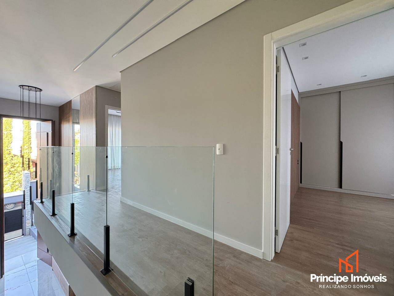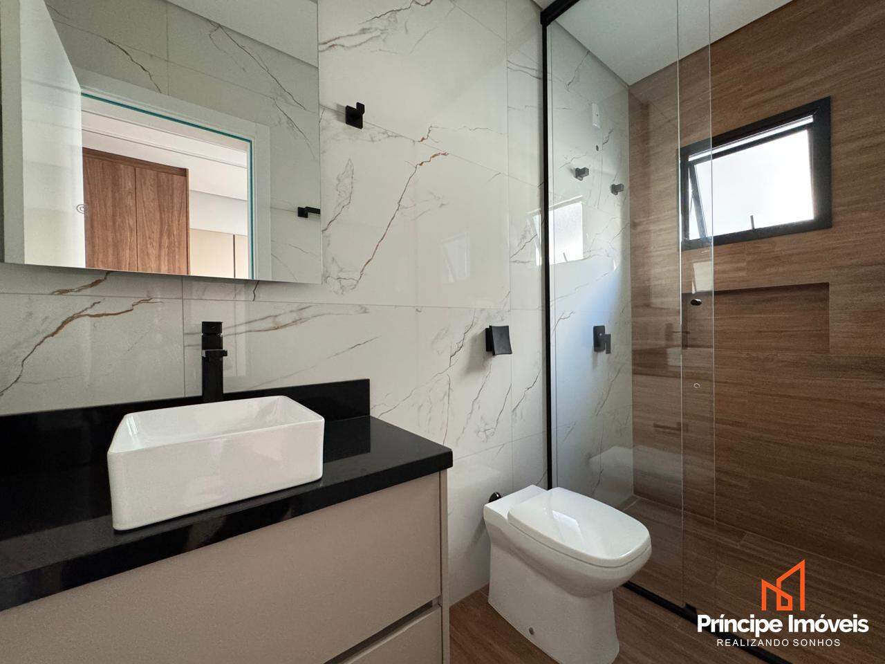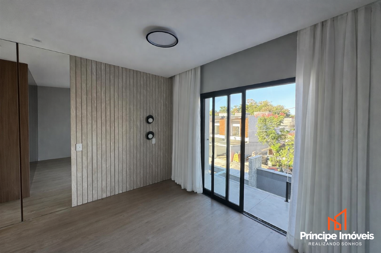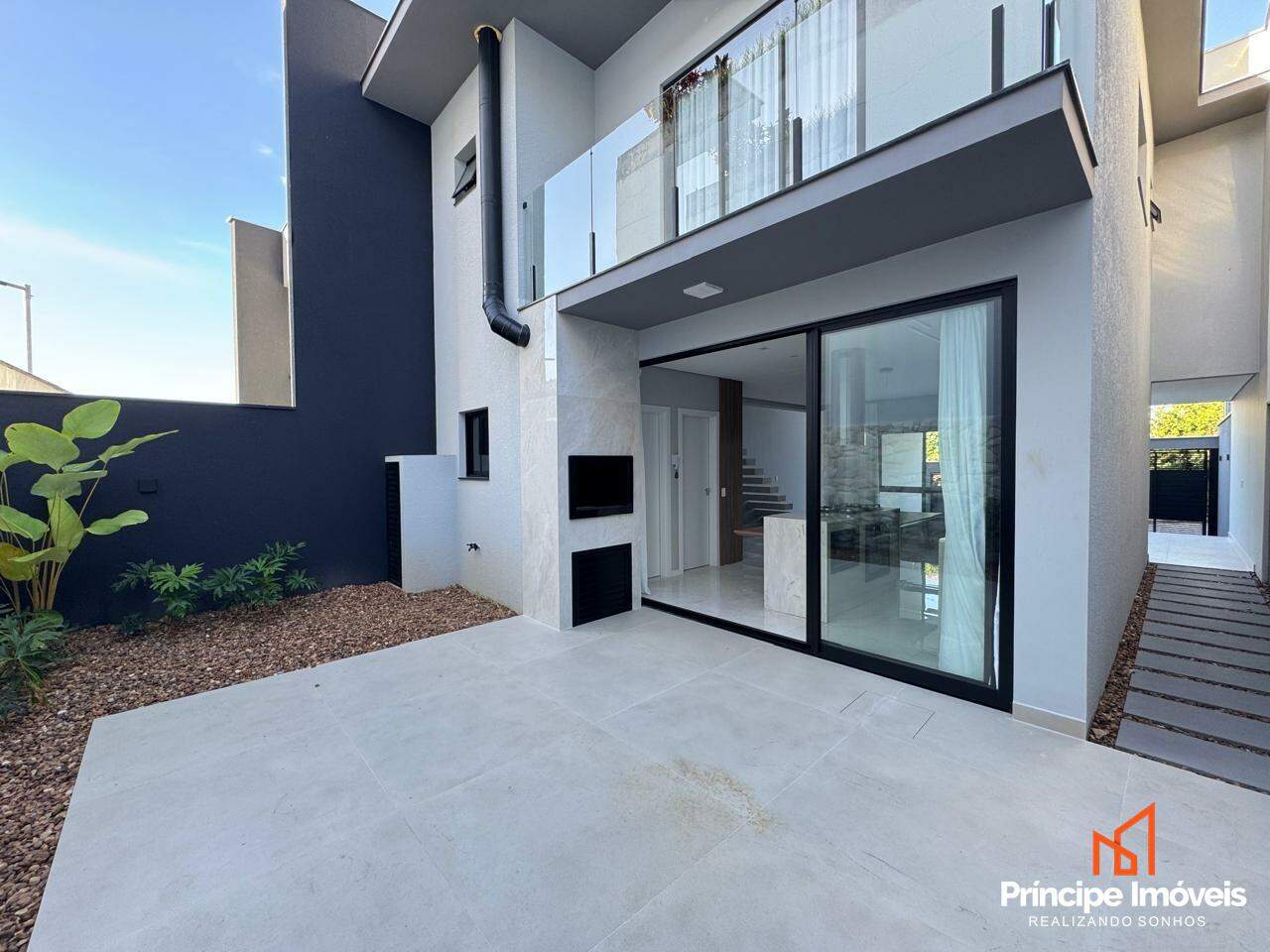 Geminado alto padrão distribuído em 160,00m² de área privativa. Com ambientes amplos e modernos, bem arejados, boa iluminação natural! Rico em detalhes nos seus acabamentos, tudo o que se espera de casa nesse estilo! Conta com Hall de entrada, dando acesso ao living integrado com sala de estar ampla já possuindo painel de tv, cozinha completa com eletros e móveis, e acesso aos fundos por uma porta de vidro retrátil, onde temos nossa área de festas com churrasqueira. No piso superior ficam as 03 suítes, sendo a principal com sacada para a frente do imóvel. O Geminado é rico em acabamentos com piso porcelanato e laminado de madeira. Com sistema de iluminação em led que lhe dão um toque todo especial ao ambiente. Além disso conta 02 vagas coberta de garagem.