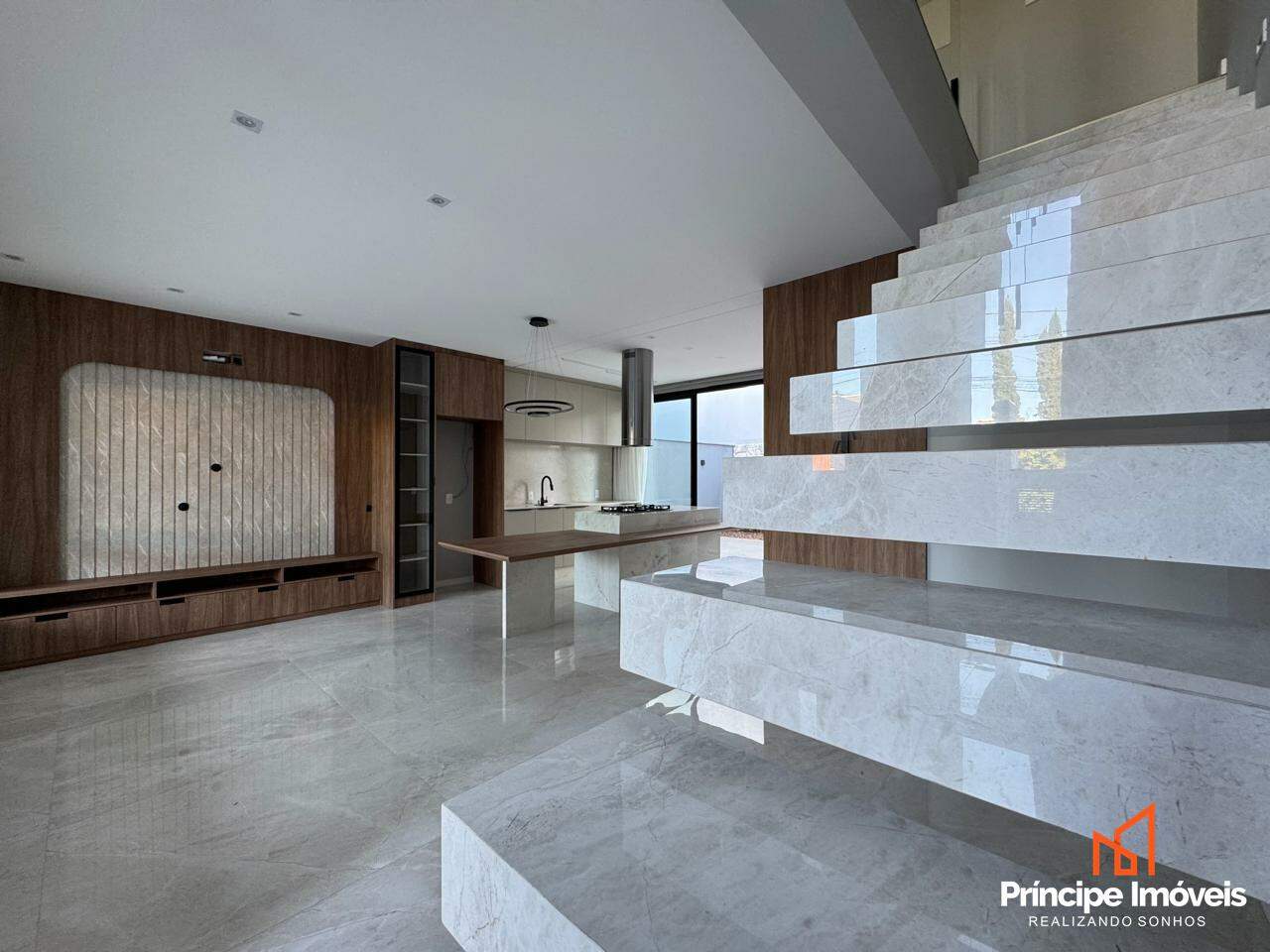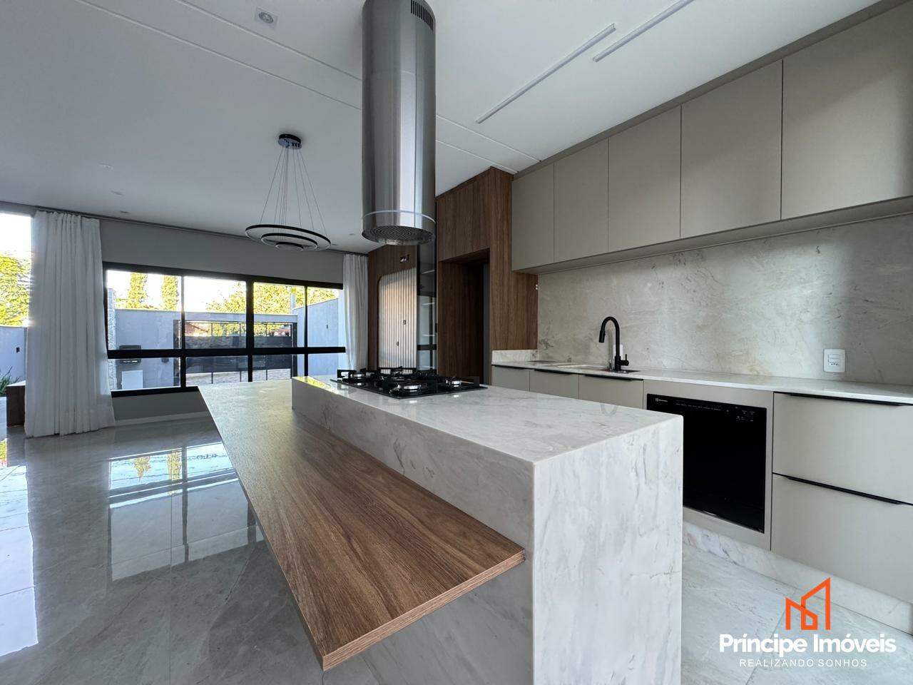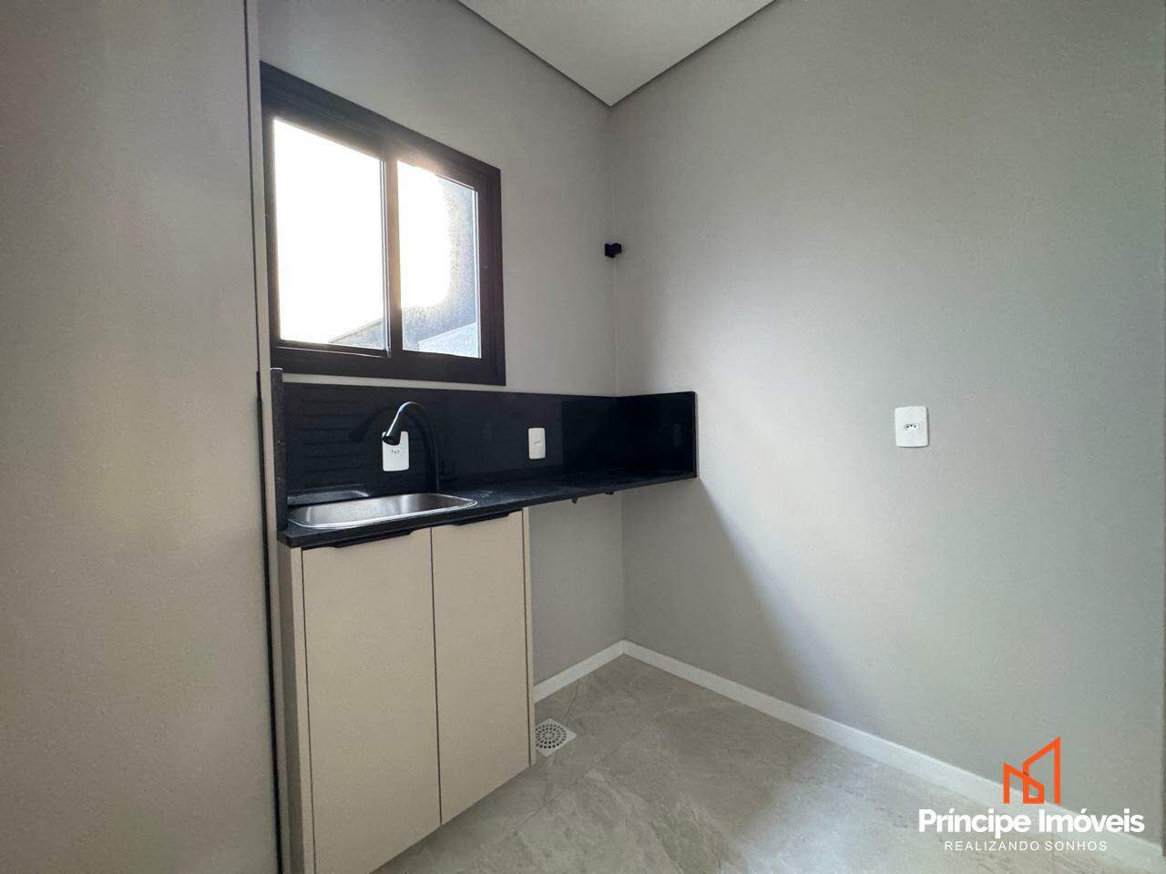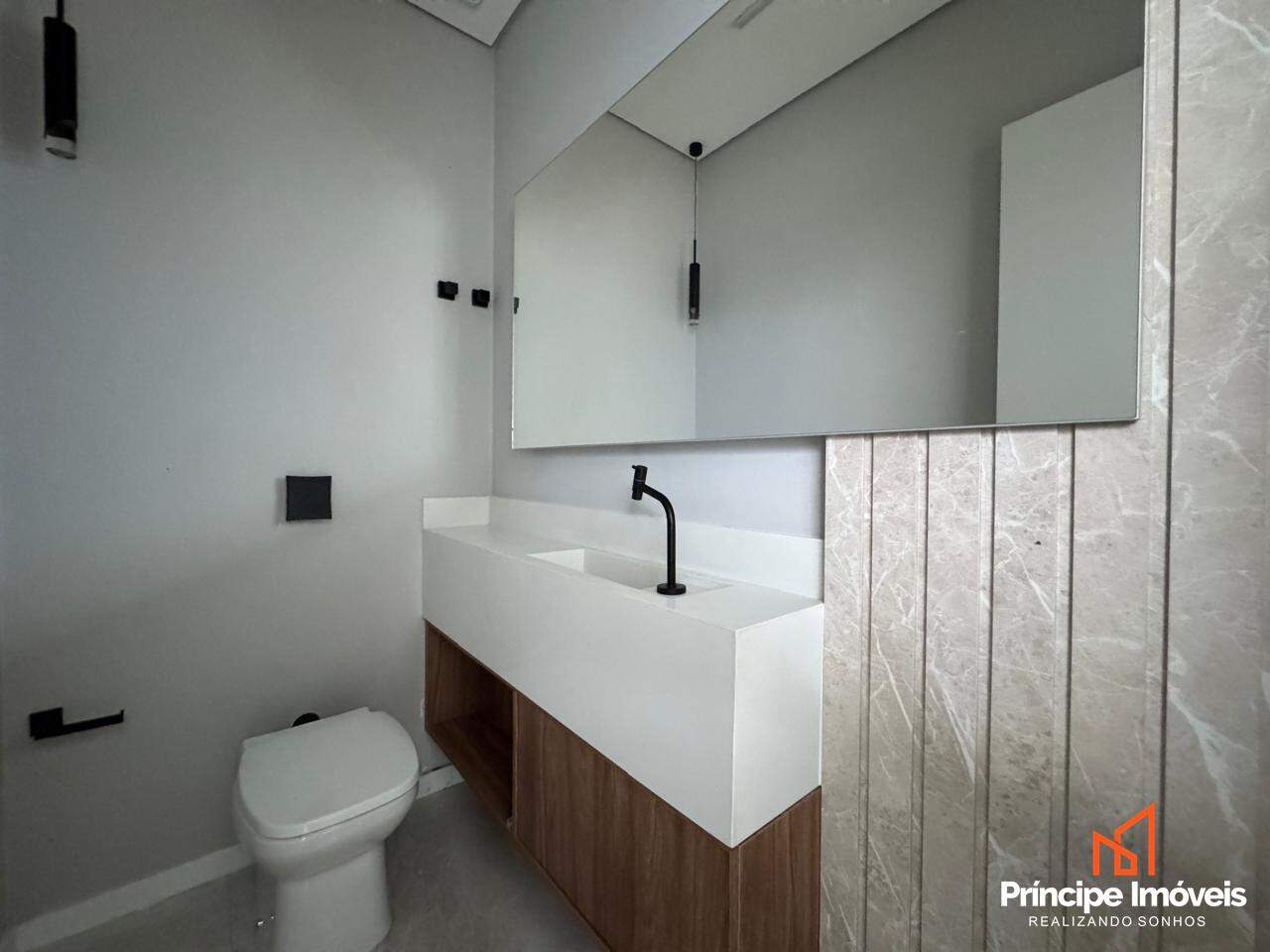 Geminado alto padrão distribuído em 160,00m² de área privativa. Com ambientes amplos e modernos, bem arejados, boa iluminação natural! Rico em detalhes nos seus acabamentos, tudo o que se espera de casa nesse estilo! Conta com Hall de entrada, dando acesso ao living integrado com sala de estar ampla já possuindo painel de tv, cozinha completa com eletros e móveis, e acesso aos fundos por uma porta de vidro retrátil, onde temos nossa área de festas com churrasqueira. No piso superior ficam as 03 suítes, sendo a principal com sacada para a frente do imóvel. O Geminado é rico em acabamentos com piso porcelanato e laminado de madeira. Com sistema de iluminação em led que lhe dão um toque todo especial ao ambiente. Além disso conta 02 vagas coberta de garagem.