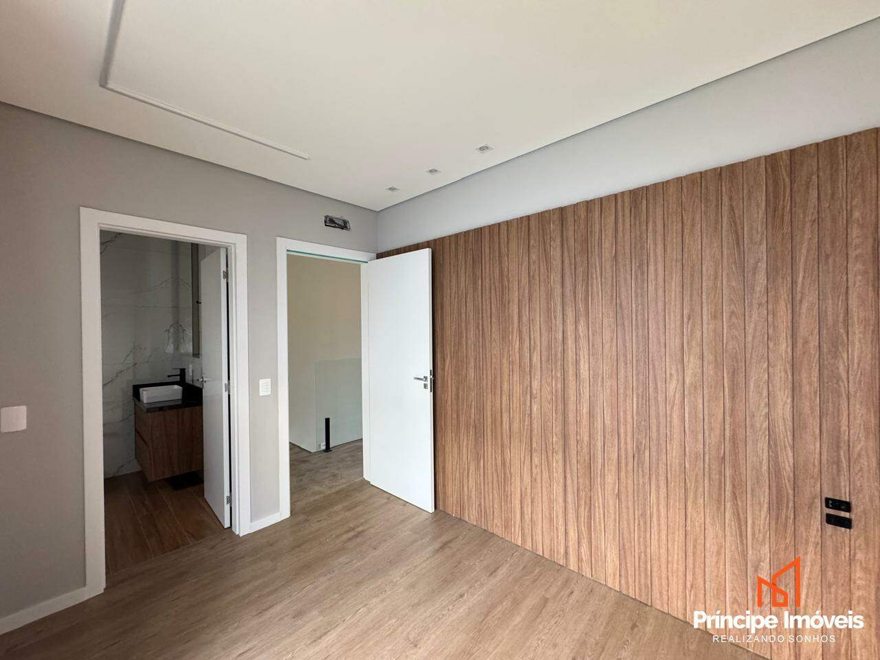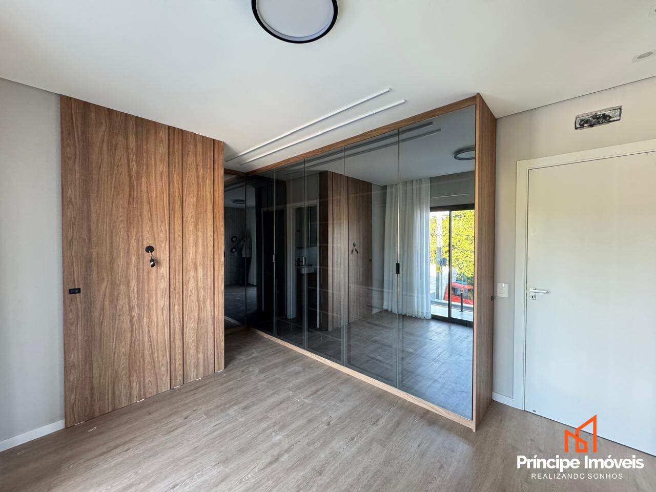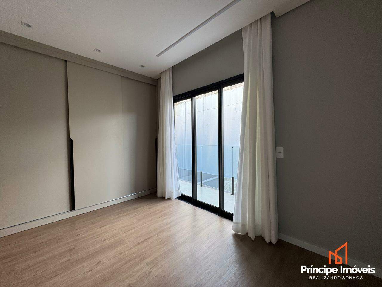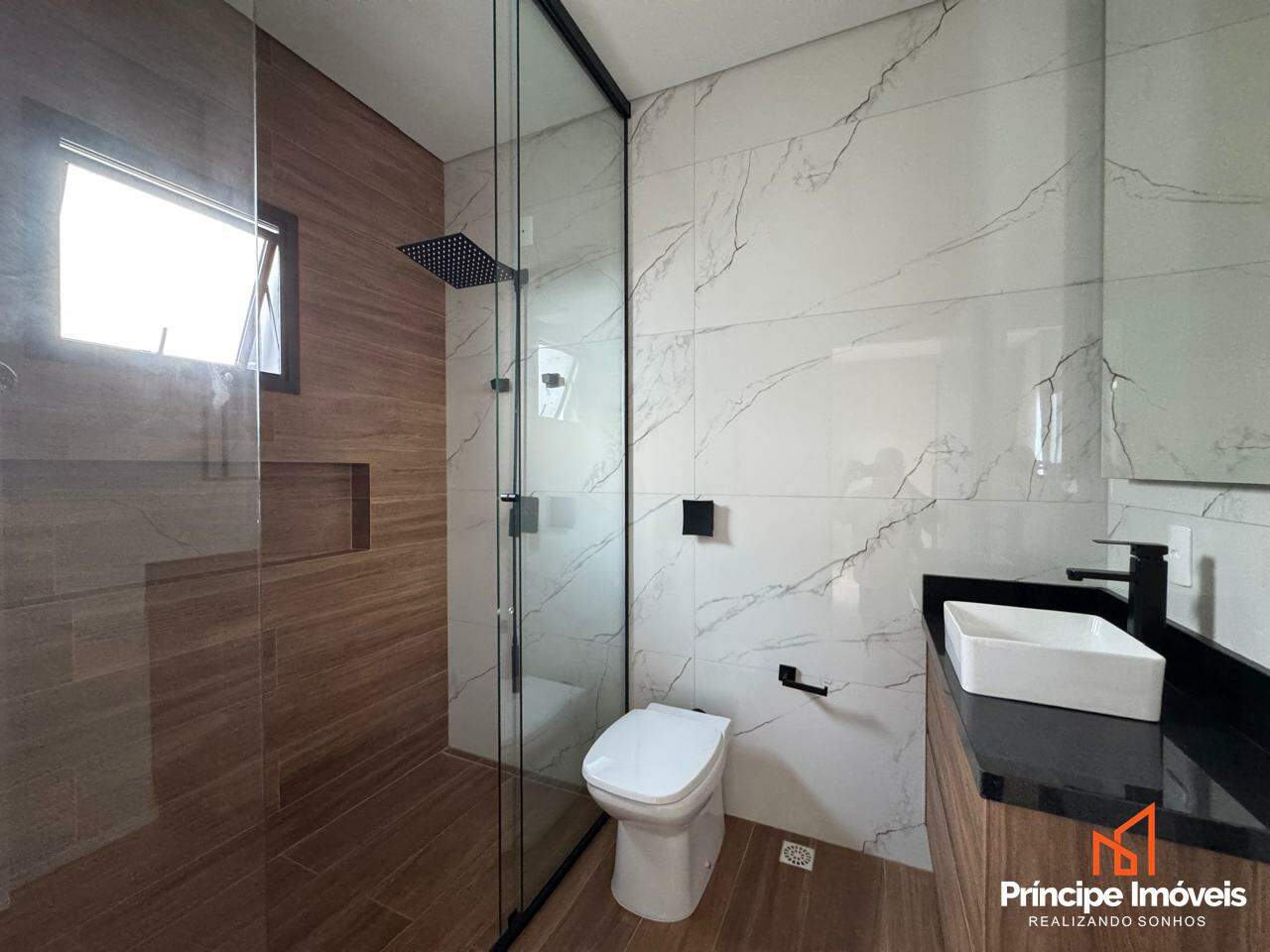 Geminado alto padrão distribuído em 160,00m² de área privativa. Com ambientes amplos e modernos, bem arejados, boa iluminação natural! Rico em detalhes nos seus acabamentos, tudo o que se espera de casa nesse estilo! Conta com Hall de entrada, dando acesso ao living integrado com sala de estar ampla já possuindo painel de tv, cozinha completa com eletros e móveis, e acesso aos fundos por uma porta de vidro retrátil, onde temos nossa área de festas com churrasqueira. No piso superior ficam as 03 suítes, sendo a principal com sacada para a frente do imóvel. O Geminado é rico em acabamentos com piso porcelanato e laminado de madeira. Com sistema de iluminação em led que lhe dão um toque todo especial ao ambiente. Além disso conta 02 vagas coberta de garagem.