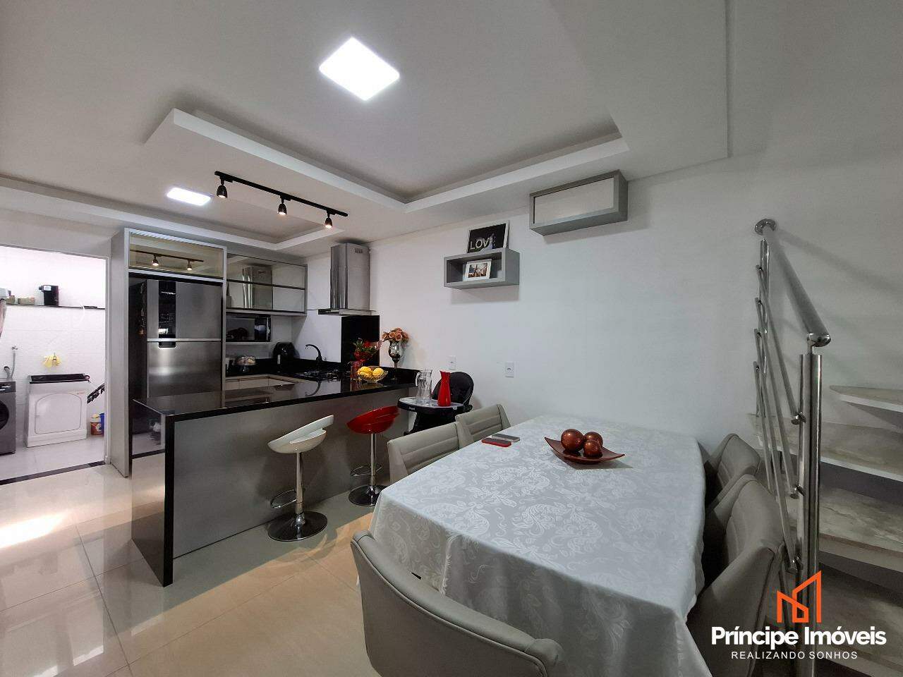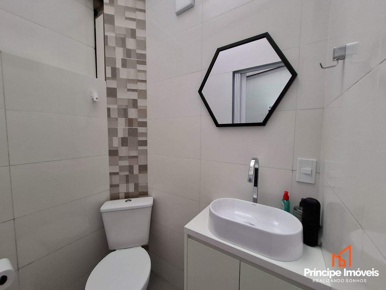 Geminado: Com 3,50 metros de abertura, 5,00 metros de frente, 65,71m² de área construída, este geminado chama atenção por sua conservação. No térreo, conta com ambientes integrados de cozinha, sala de jantar e sala de estar, área de serviço e 01 lavabo. No piso superior, possui 02 quartos, sendo 01 suíte. O imóvel dispõe ainda de 01 vaga de garagem coberta. Com acabamento moderno, rebaixamento em gesso em todos os cômodos, piso em porcelanato no térreo e no banheiro e laminado nos quartos. Este imóvel ficará semi mobiliado com móveis modernos sob medida da sala, cozinha e suíte, trazendo assim, mais conforto e praticidade para você.