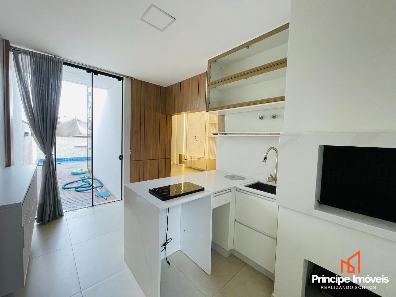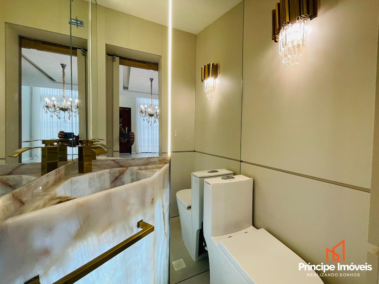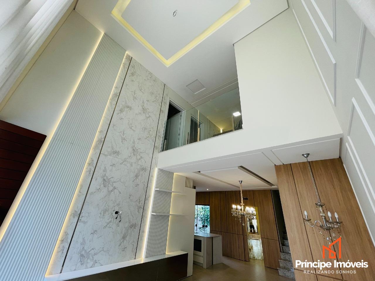 Casa: com terreno de 13,00 x 29,38 metros, totalizando 429m², e 202,99m² de área construída. Casa ampla, bem distribuída e com excelente padrão de acabamento. Conta com 03 suítes espaçosas, sendo uma suíte master com banheira. Imóvel semi-mobiliado, com móveis sob medida, rebaixo em gesso, porcelanato e acabamento de alto padrão. Possui sala de estar e jantar integradas à cozinha totalmente mobiliada e também possui uma sala no piso superior, lustres e pedras nobres. Dispõe ainda de dois lavabos muito elegantes. A área de festas é completa, mobiliada, com churrasqueira gourmet e acesso direto à piscina, ideal para momentos de lazer. O imóvel conta com passagem lateral modernidade e valorização ao projeto. Dispõe de 04 vagas de estacionamento, casa em excelente estado de conservação.