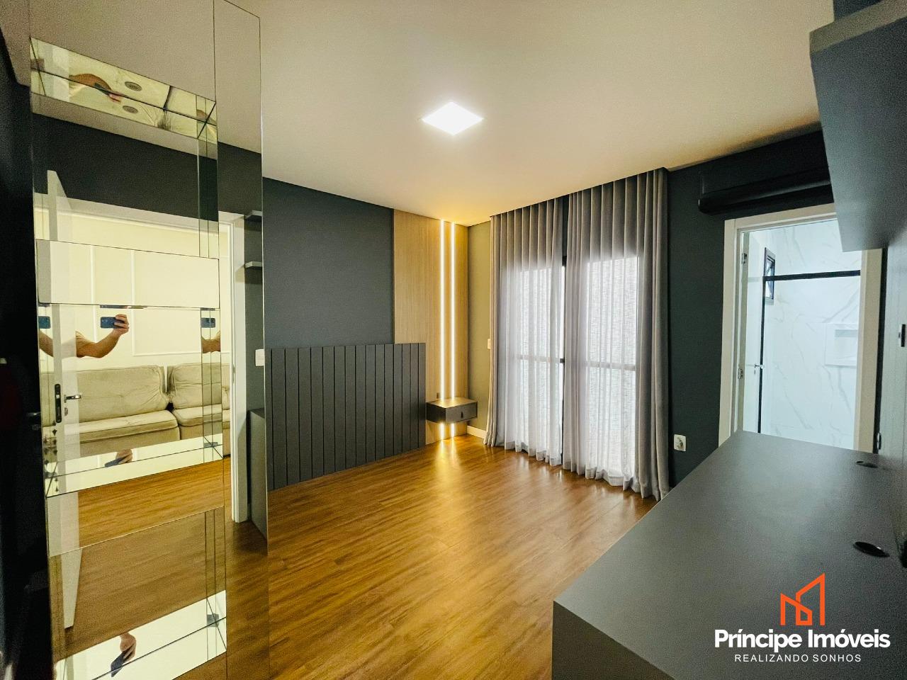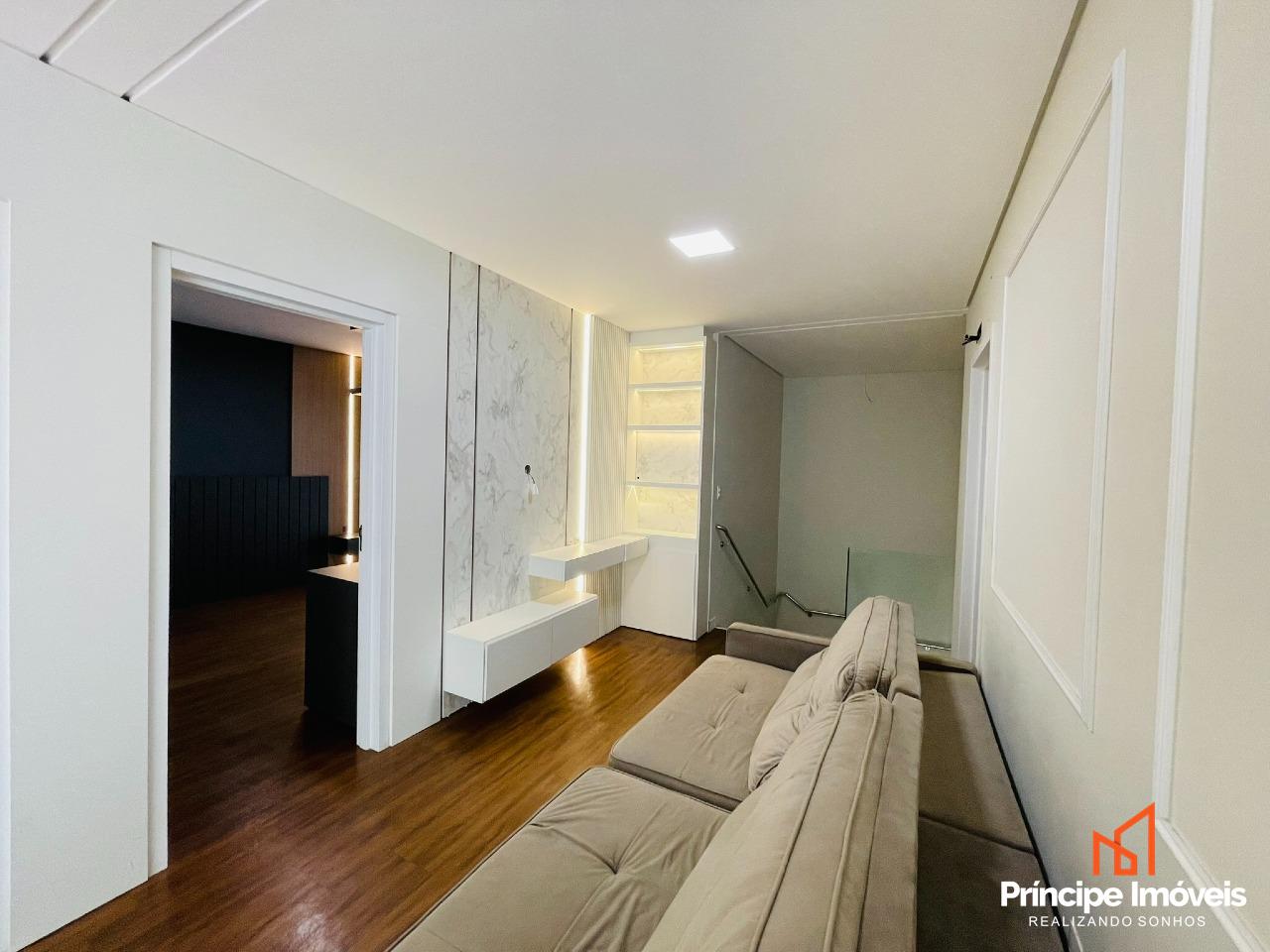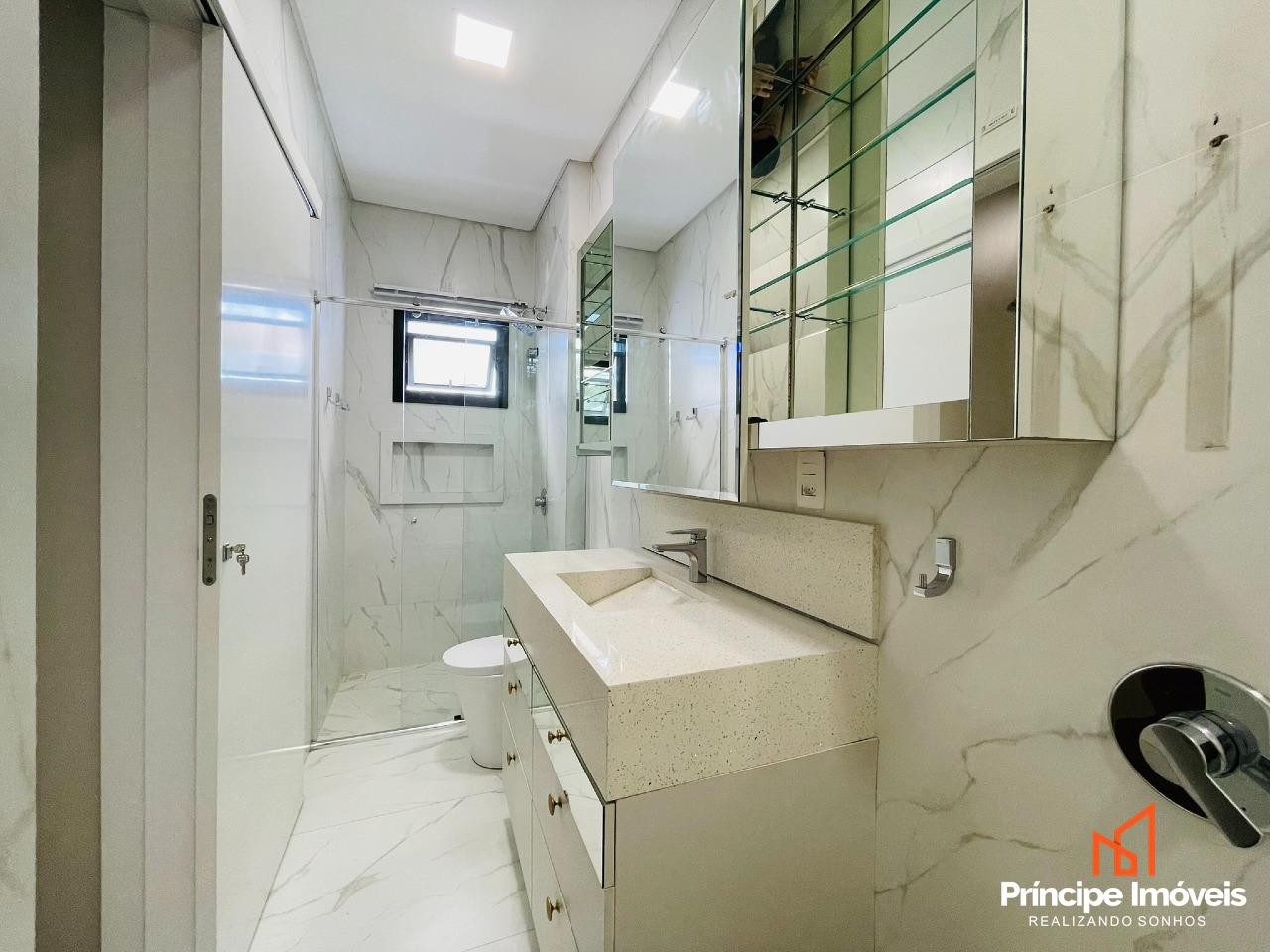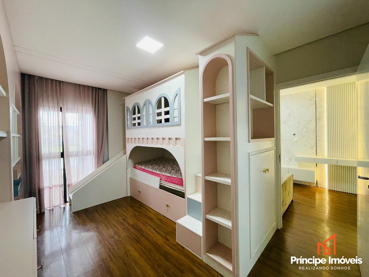 Casa: com terreno de 13,00 x 29,38 metros, totalizando 429m², e 202,99m² de área construída. Casa ampla, bem distribuída e com excelente padrão de acabamento. Conta com 03 suítes espaçosas, sendo uma suíte master com banheira. Imóvel semi-mobiliado, com móveis sob medida, rebaixo em gesso, porcelanato e acabamento de alto padrão. Possui sala de estar e jantar integradas à cozinha totalmente mobiliada e também possui uma sala no piso superior, lustres e pedras nobres. Dispõe ainda de dois lavabos muito elegantes. A área de festas é completa, mobiliada, com churrasqueira gourmet e acesso direto à piscina, ideal para momentos de lazer. O imóvel conta com passagem lateral modernidade e valorização ao projeto. Dispõe de 04 vagas de estacionamento, casa em excelente estado de conservação.