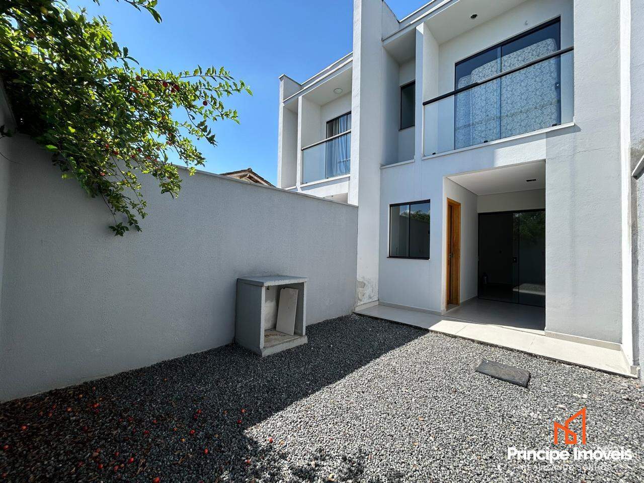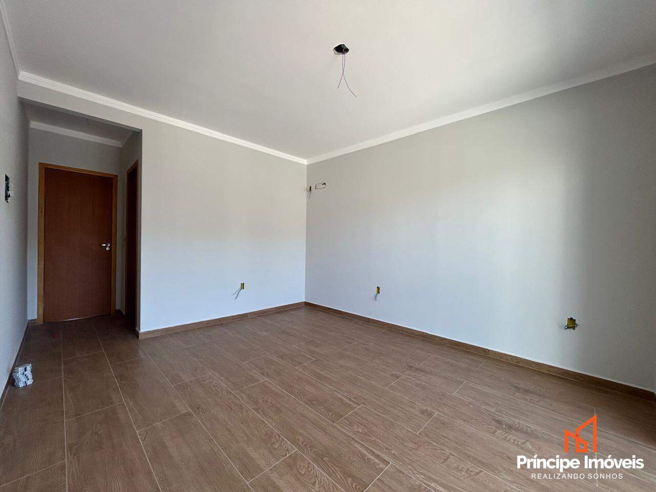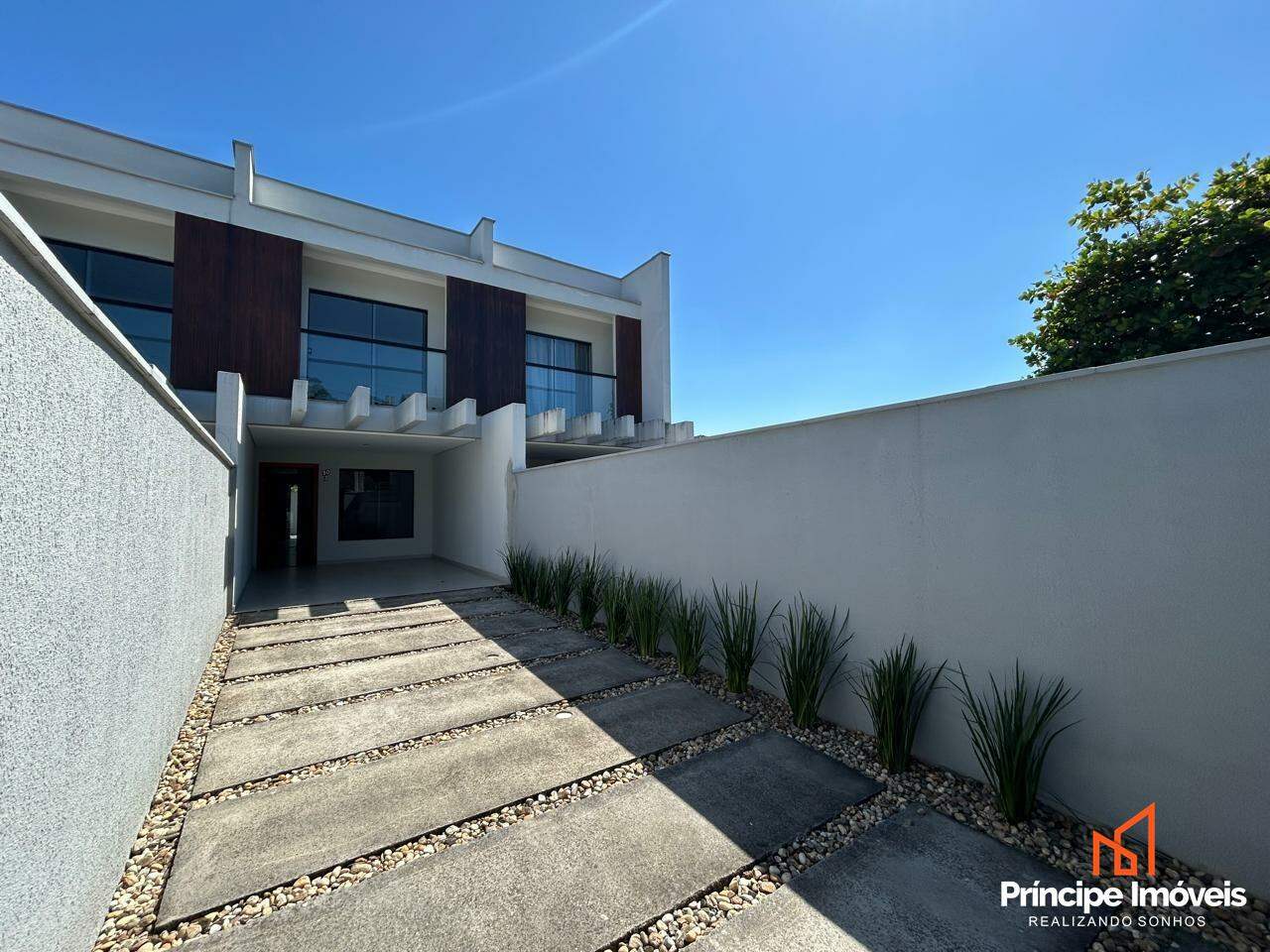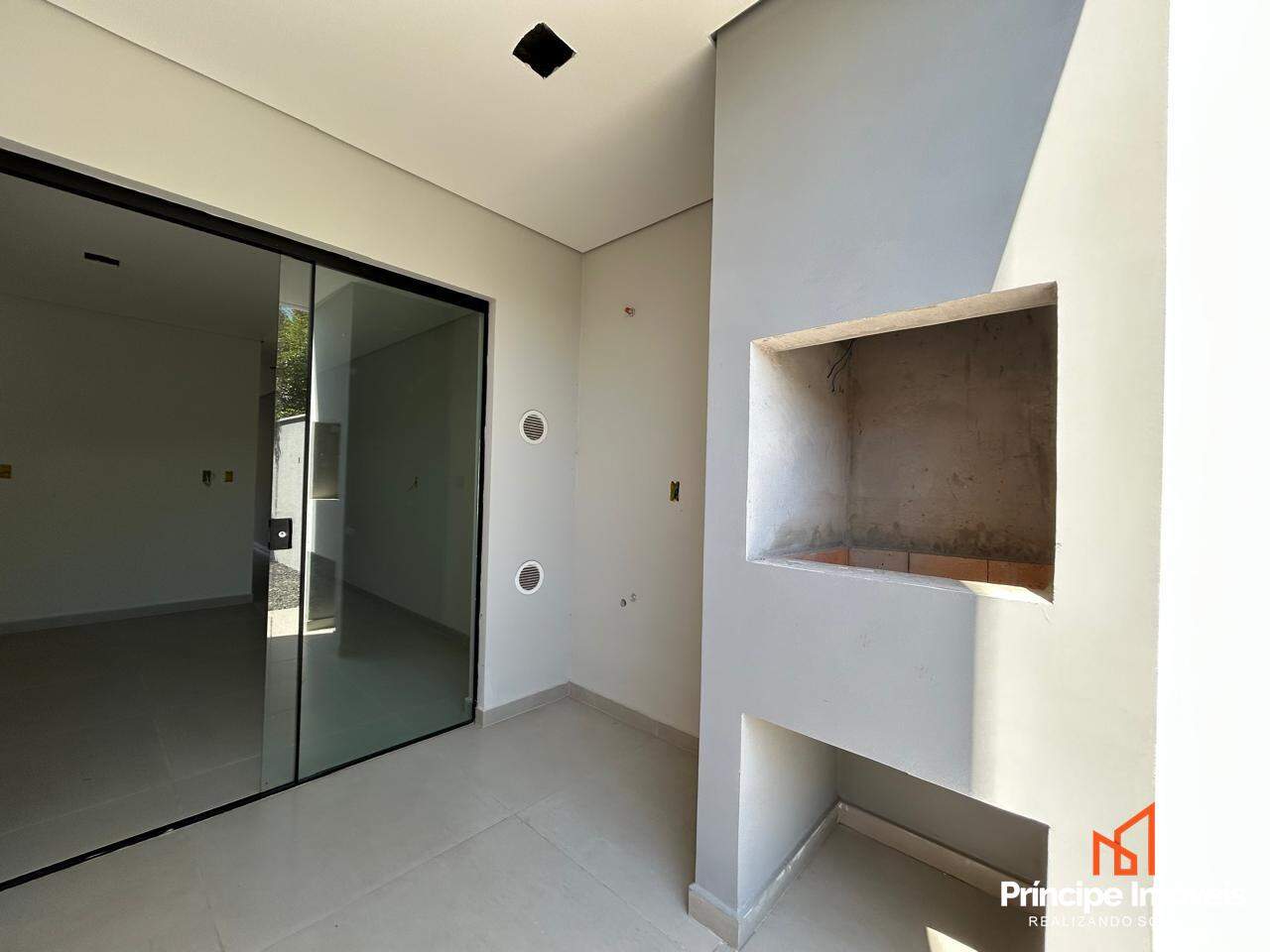 Geminado: Com 3,50 metros de abertura, 13,50 metros de frente e 5,50 metros de fundos livre mais a área da churrasqueira com 03 metros. Este investimento de destaque proporciona 109,69 m² de área privativa e 115,99 de área total. A casa possui uma distribuição bem projetada, incluindo 03 quartos sendo 01 ampla suíte, sala de estar, sala de jantar, lavabo, cozinha e lavanderia. Além disso, há 02 vagas de garagem disponíveis, uma delas coberta, e um terreno espaçoso com 5,50 metros nos fundos. O acabamento foi cuidadosamente planejado para oferecer modernidade e elegância, com detalhes em massa corrida e rebaixo em gesso, piso vinílico. Além disso, o imóvel possui infraestrutura para receber instalação de ar condicionado split em todos os cômodos.