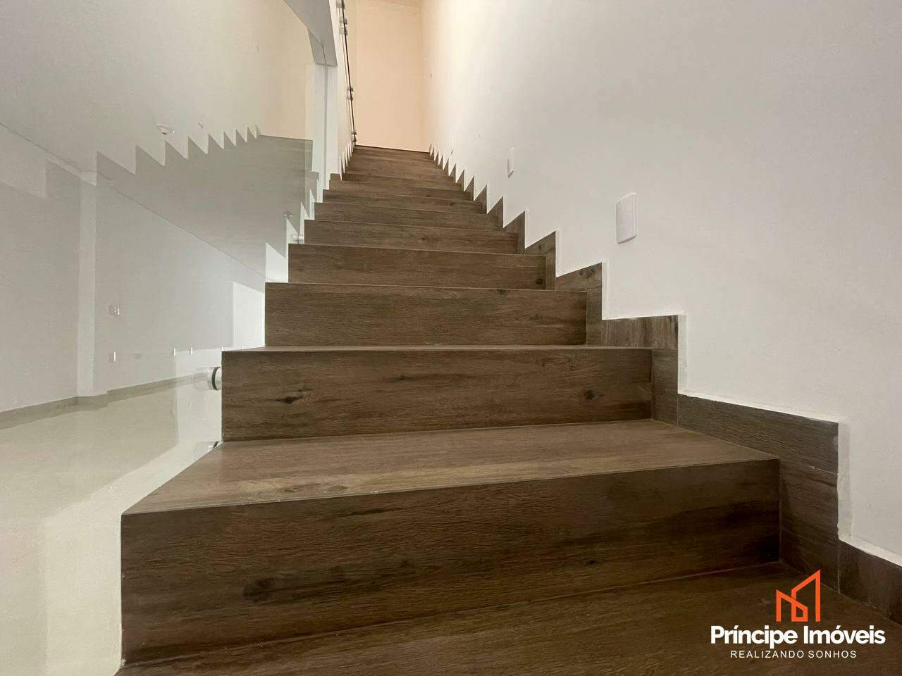 Geminado: Com abertura de 4,50 metros, 13 metros de frente e 22 metros de fundos, este belíssimo geminado possui 188,44m² de área privativa e 202,81m² de área total. Ele se distribui em uma planta espetacular, com 03 quartos, sendo 03 suítes, sala de estar/jantar muito ampla, cozinha, 01 lavabo, lavanderia com um ótimo espaço e um maravilhoso espaço nos fundos para projetar uma área de festas utilizando a churrasqueira gourmet. São 01 vaga de garagem coberta e 02 descoberta, com portão basculante.