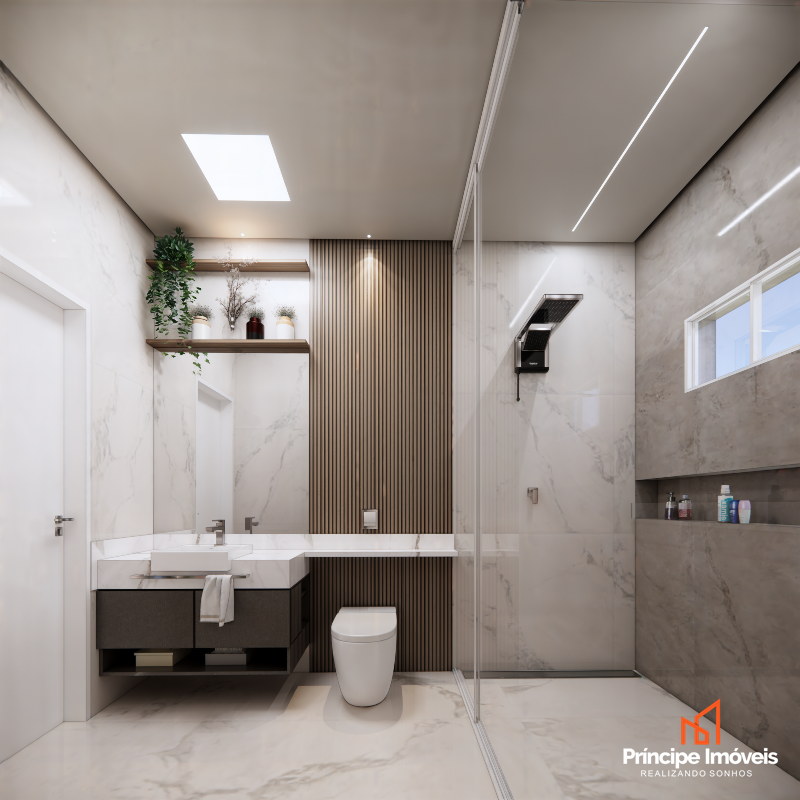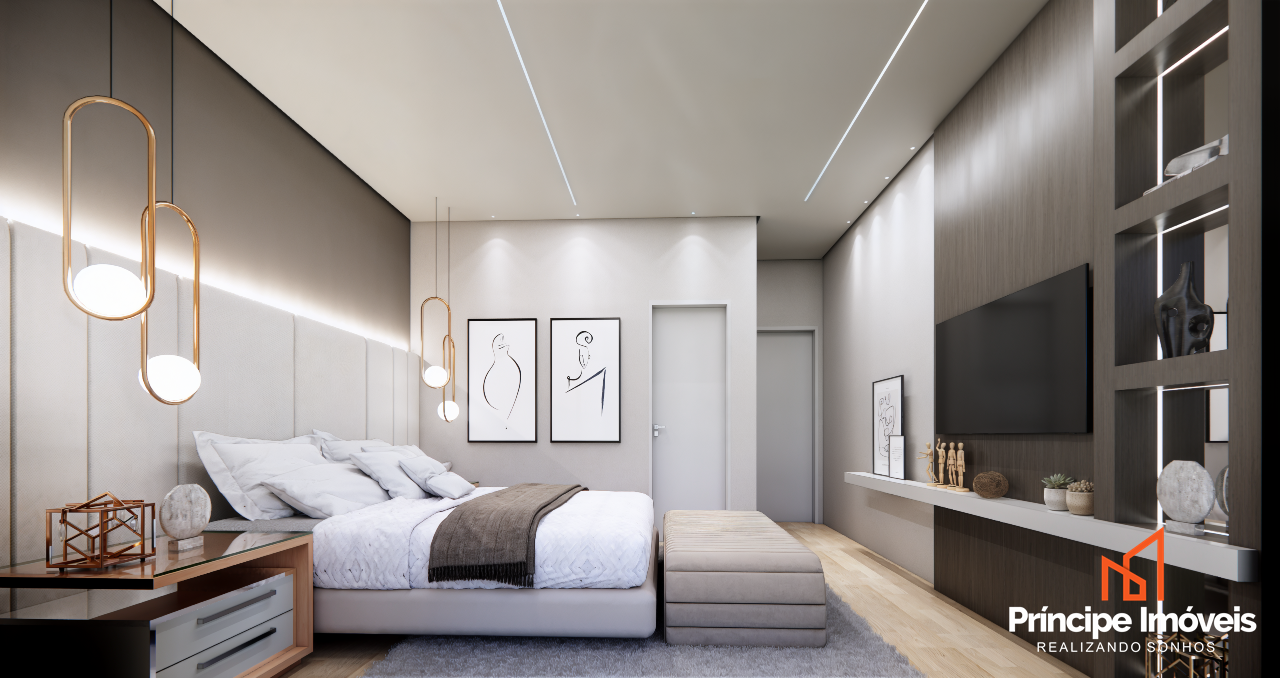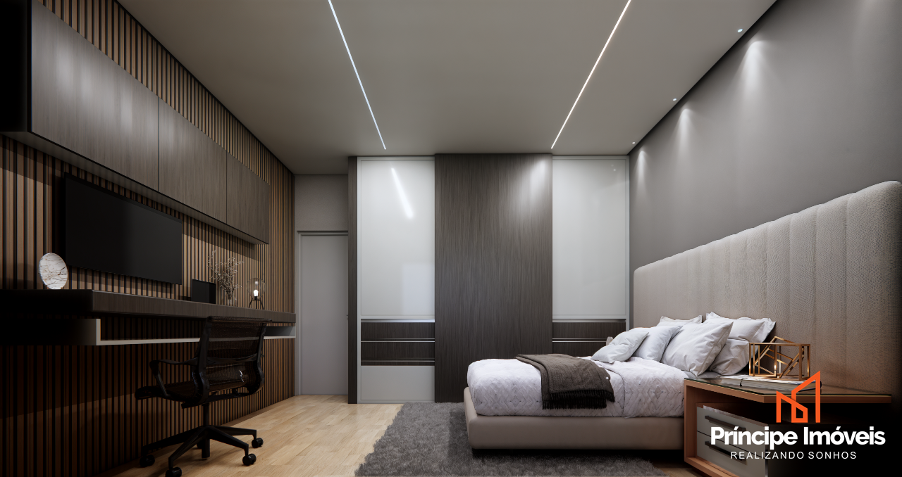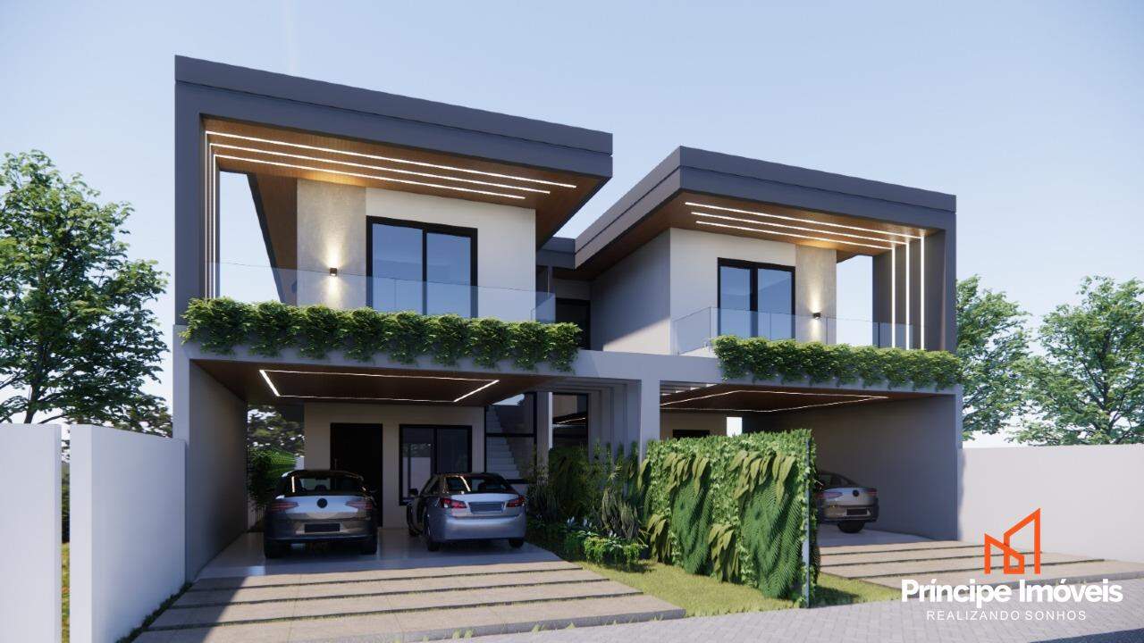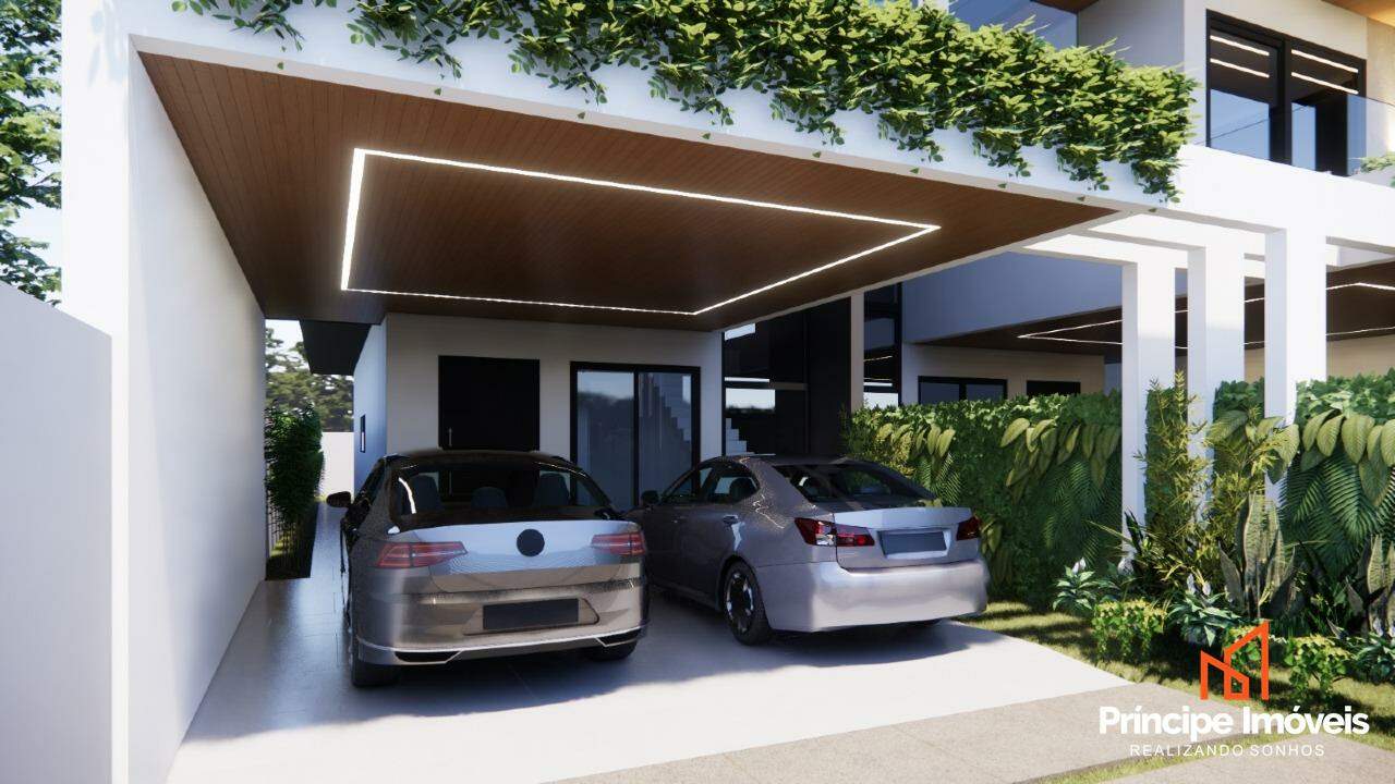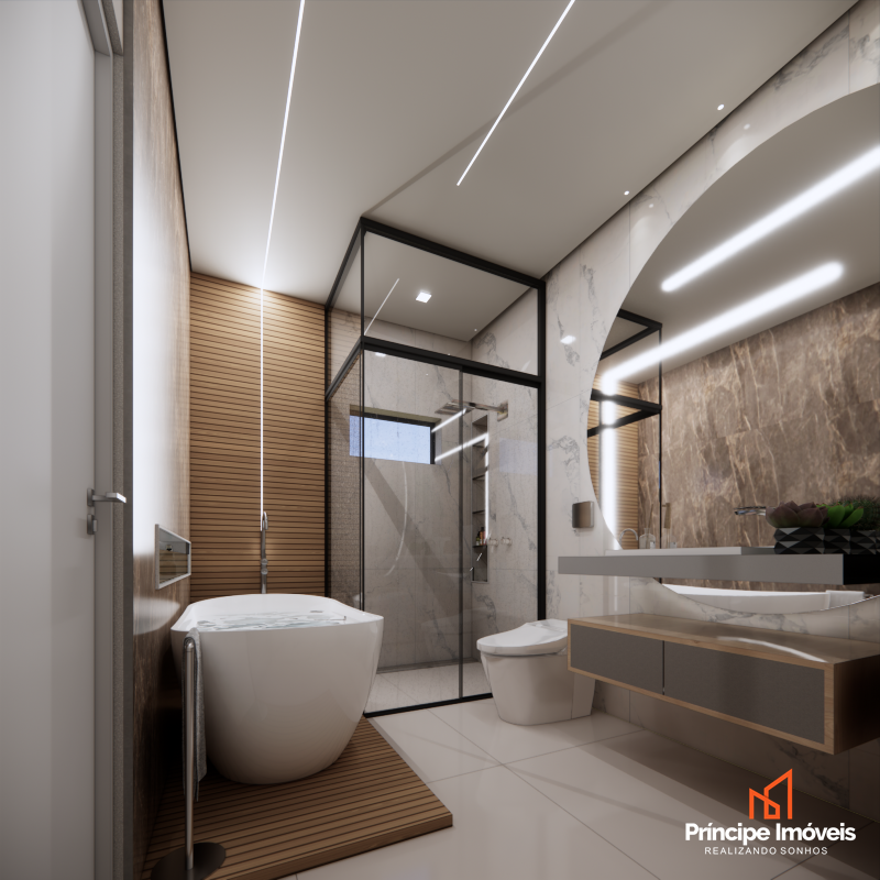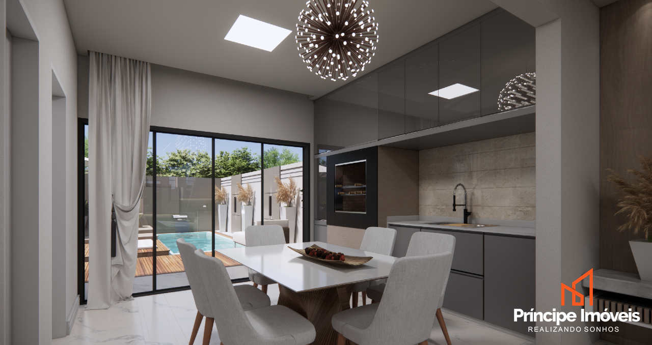 Geminado: Com 5,56 metros de abertura, 6,67 metros de frente e 5,14 metros de fundo, em uma planta de 208m² de área construída e 210m² de área total, este imóvel impressiona pela modernidade, sofisticação e conforto proporcionado pela excelente disposição dos espaços. O térreo conta com uma garagem espaçosa com capacidade para até 04 carros, sendo 02 vagas cobertas. Possui uma ampla área social com sala de estar, jantar, cozinha e área gourmet integradas. A área gourmet tem acesso direto ao jardim externo, perfeita para momentos de lazer e convivência. No térreo, há ainda uma área de serviço e um lavabo. No piso superior, possui 01 banheiro social completo e 03 quartos, sendo 01 suíte com sacada privativa e 01 suíte master com closet e sacada privativa, com destaque para o espaço amplo, ideal para cama King Size. Com design moderno e acabamentos de alto padrão, conta com porcelanato nas áreas sociais e piso laminado nos quartos. O imóvel conta com infraestrutura para aquecimento a gás, ar-condicionado e piscina ou jacuzzi na área externa, além de banheira na suíte principal. Possui ainda viabilidade para futura instalação de sistema de alarme, câmeras de videomonitoramento e kit Smart Home com comando de voz, ficando a critério do comprador realizar essas implementações, conforme preferência e investimento desejado. Previsão de entrega para Dezembro/2025.