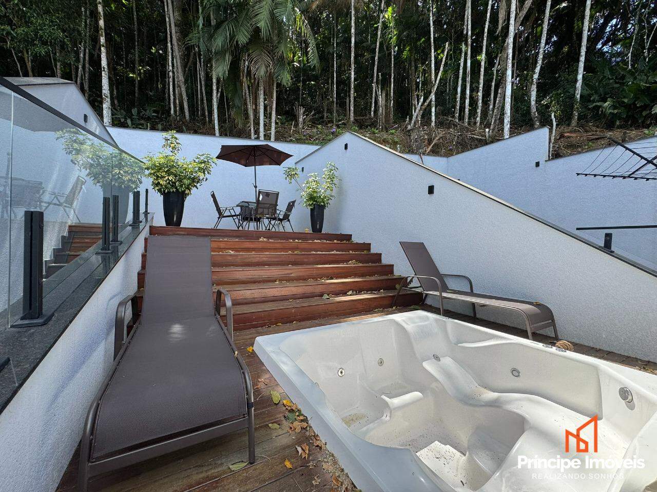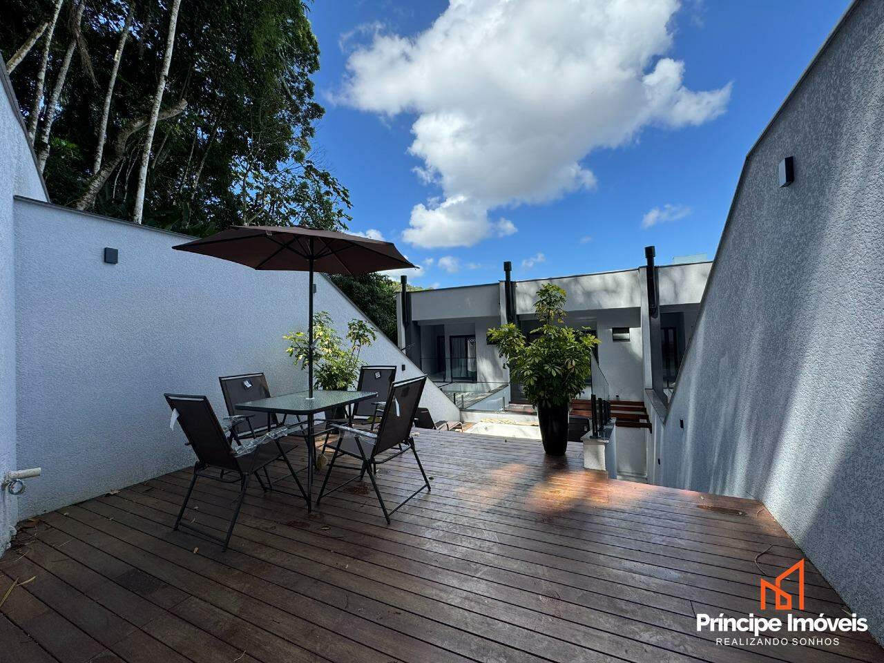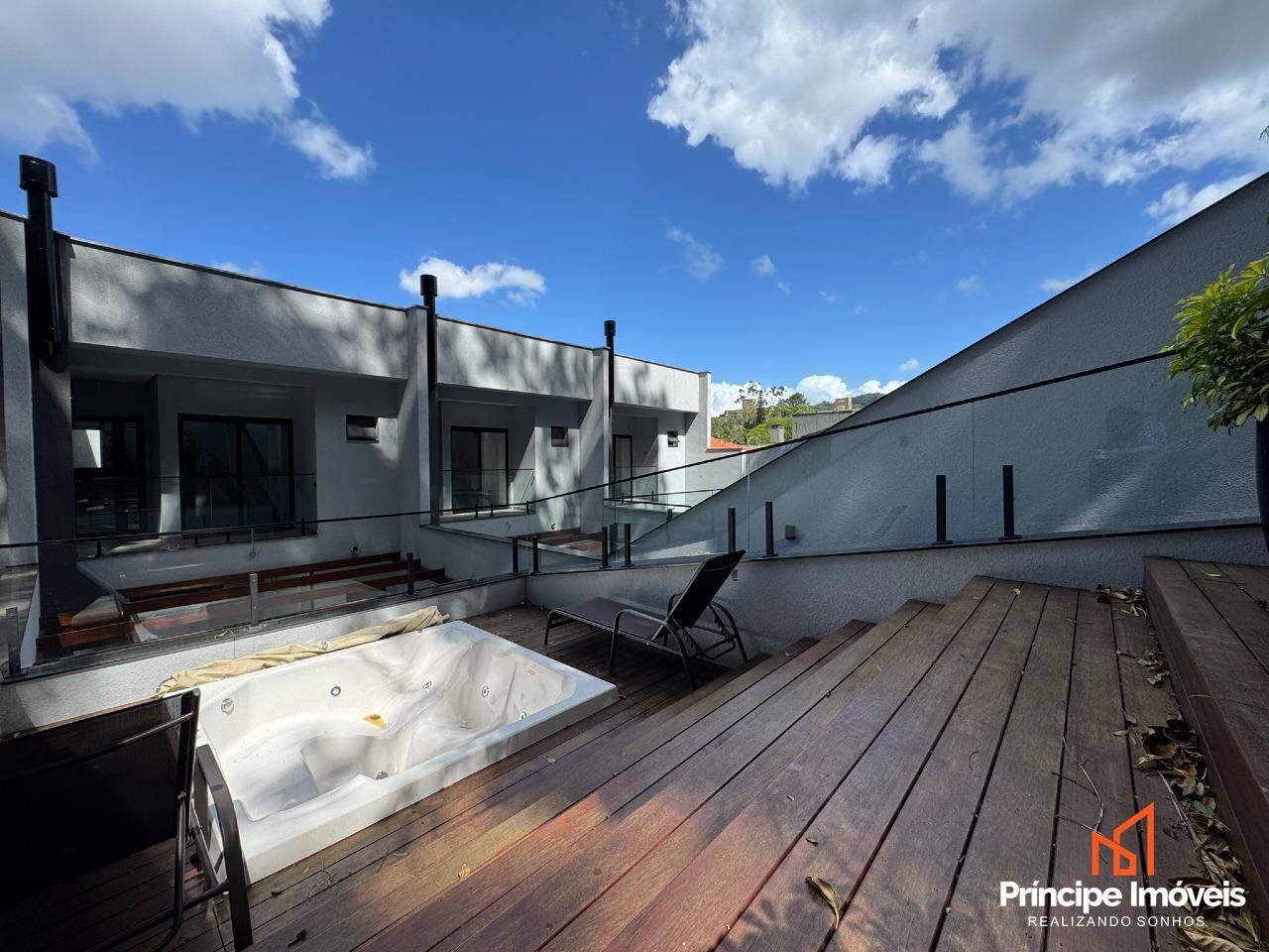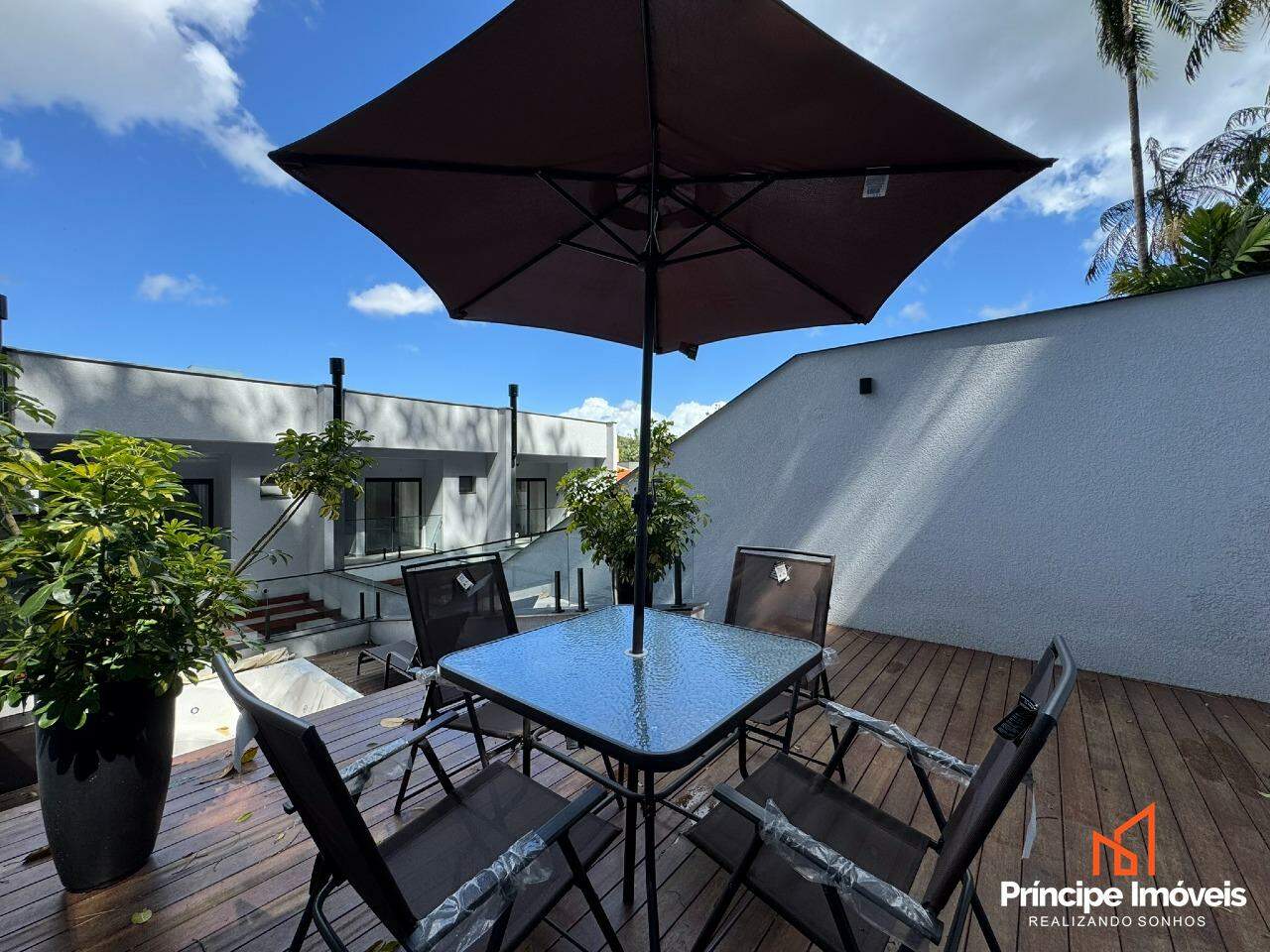 Geminado: Com 5.50 metros de abertura, 10,65 metros de frente, 9,36 metros de fundos e 34,34 metros de área de preservação aos fundos pertencentes a esse imóvel. Esse lindíssimo geminado, é composto por 03 quartos sendo os 03 suítes com bastante espaço e sacada. No piso inferior o imóvel conta com sala de estar, jantar e cozinha integradas, lavanderia separada, e 01 lavabo, além de uma ótima área de festas com churrasqueira a carvão, e um deck de madeira com ofurô, esse delicioso espaço conta com um lindo paisagismo verde. Constam ainda 03 vagas de garagem sendo 02 cobertas lado a lado, um ótimo padrão de acabamento com rebaixo em gesso em todos os ambientes, massa corrida, porcelanato, jardim, infra para ar condicionado em todos os ambientes, aquecimento a gás e muito mais compõe esse belíssimo imóvel.