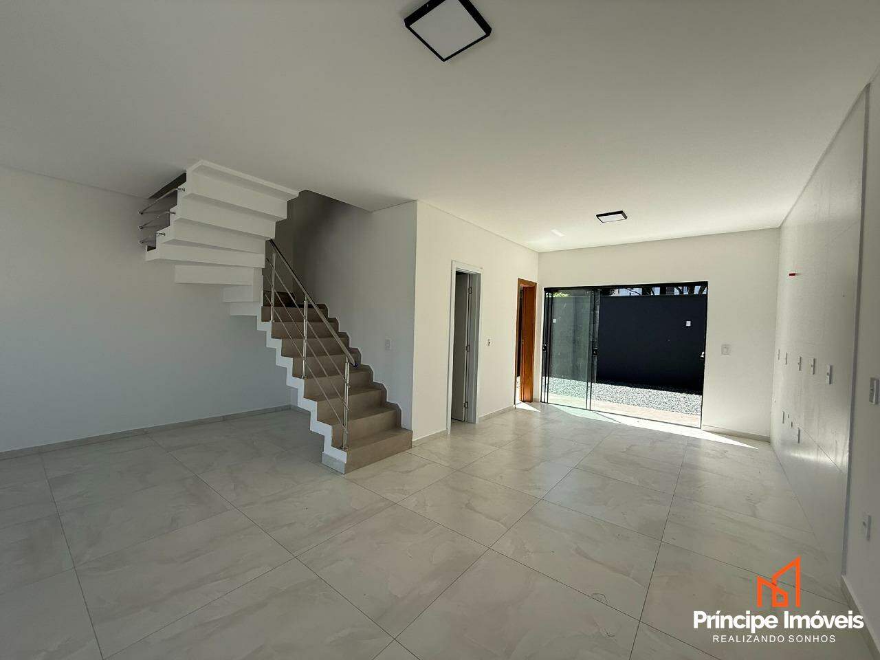 Geminado: Com 06 metros de abertura, 08,80 metros de frente e 06 metros de fundos. Este investimento de destaque proporciona 105,20m² de área privativa e 111,20 de área total. A casa possui uma distribuição bem projetada contando com sala de estar, sala de jantar, lavabo, cozinha e área de serviço, uma linda área gourmet com churassequeira e 03 quartos sendo 03 quartos com varanda. Além disso, há 02 vagas de garagem disponíveis. O acabamento foi cuidadosamente planejado para oferecer modernidade e elegância, com detalhes em massa corrida e rebaixamento em gesso em todos os cômodos. Além disso, o imóvel possui infraestrutura para receber instalação de ar condicionado nos quartos e sala. Entrega prevista para Novembro/2025