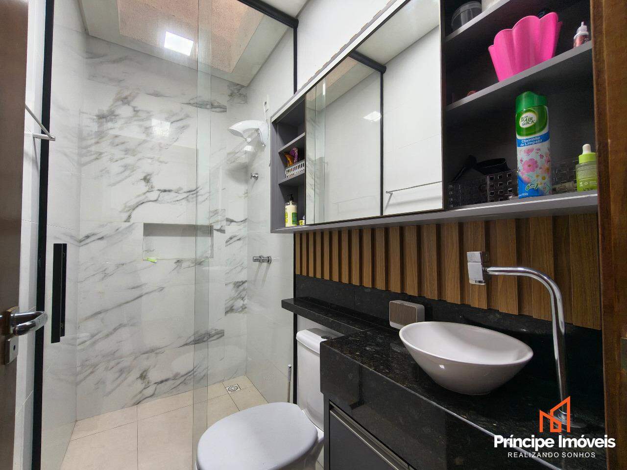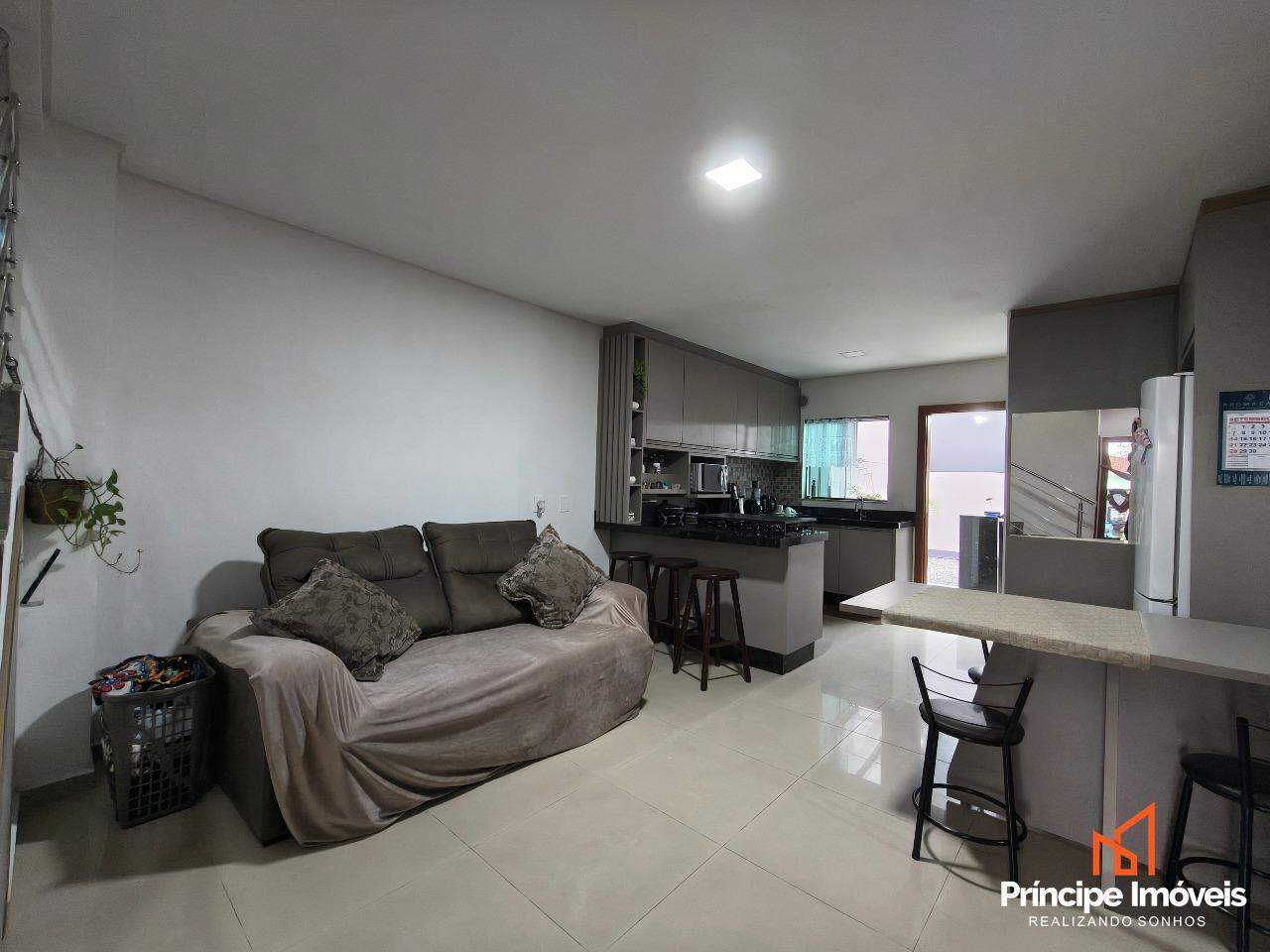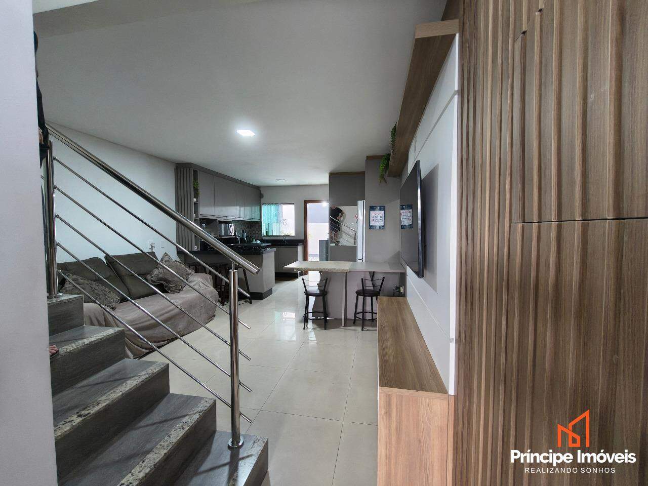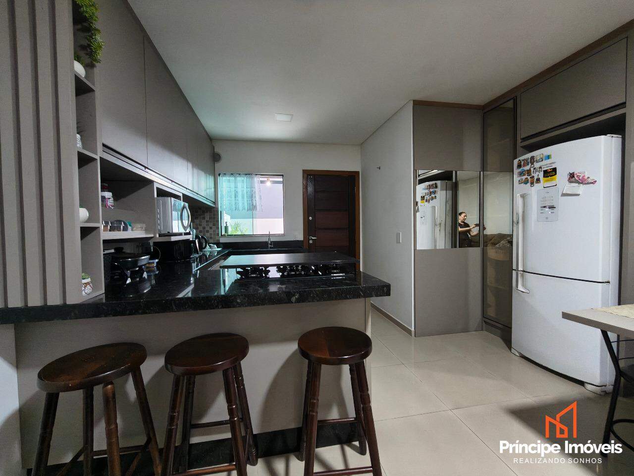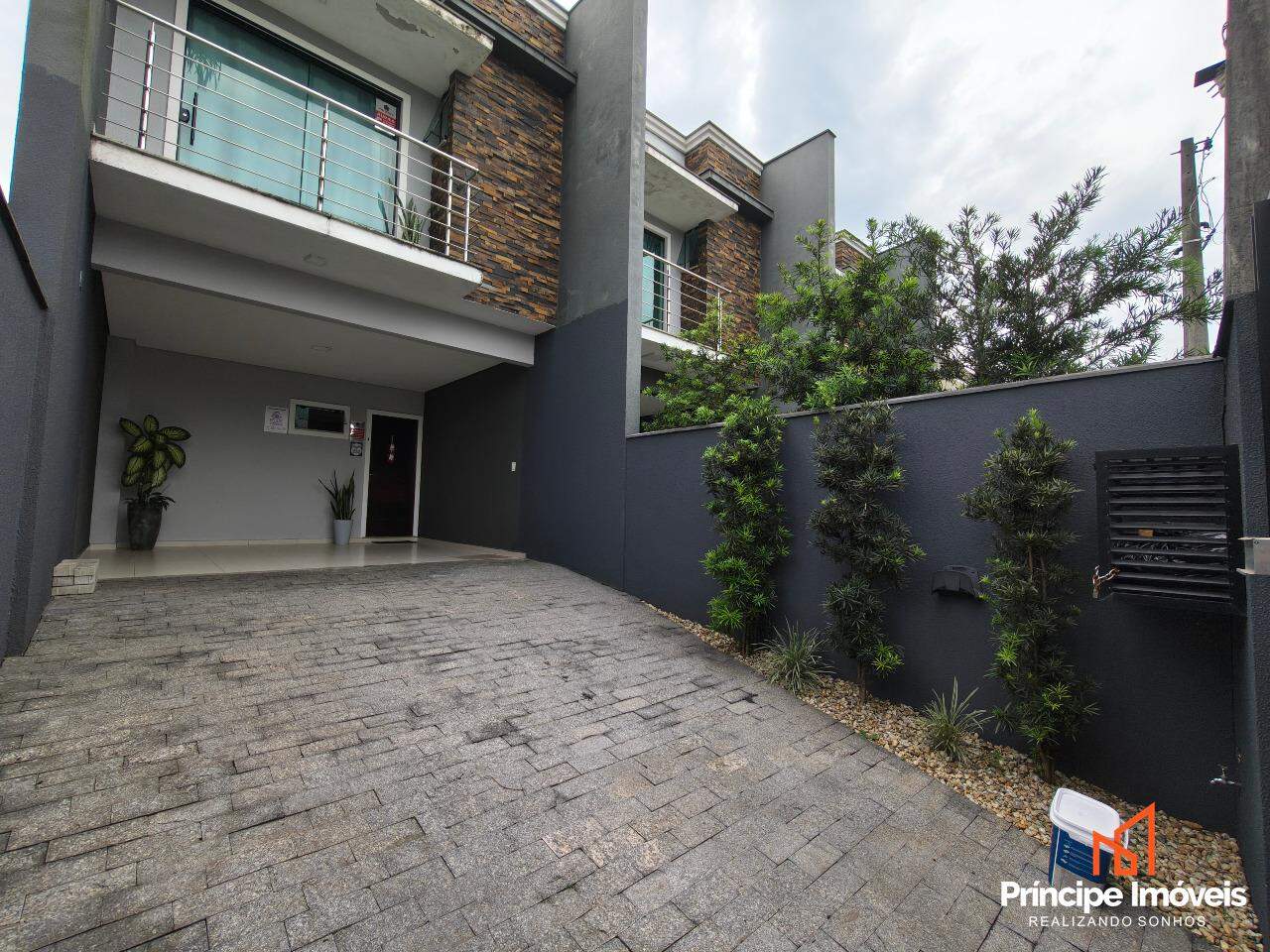 Geminado: Com 4,80 metros de abertura, 10 metros de frente e 6,70 metros de fundos. Com área privativa de 109,05m² e com área toral de 116,63m², imponente geminado com 03 quartos, sendo 01 suíte. Uma linda sala de estar conjugada com a cozinha, lavanderia separada, lavabo, dispensa, 02 vagas de garagem sendo 01 coberta e 01 descoberta, jardim na frente, portão basculante, fachada em pedras detalhadas, tudo isso e muito mais compõe o padrão de construção desse geminado. Se você preza por um imóvel com qualidade, muito arejado e com bastante iluminação natural, essa é a oportunidade ideal. Feito com muito carinho e capricho usando os materiais da melhor qualidade.