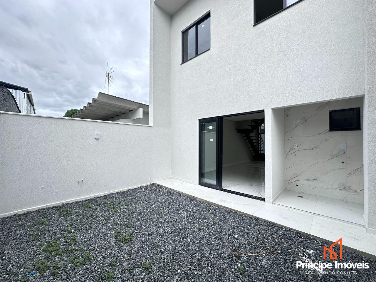 Geminado: Com 5,30 metros de abertura 05 metros de frente e 05 metros nos fundos, sendo 100,98m² de área privativa e 103,65m² de área total. O imóvel oferece 03 suítes, sendo a principal com espaço para closet e varanda, cada uma delas projetada para proporcionar o máximo de conforto e privacidade. A ampla cozinha deste geminado é perfeita para os amantes da culinária. A sala de jantar e estar, também espaçosas, proporcionam um ambiente acolhedor para receber amigos e familiares. Além disso, o Geminado conta com 02 de vagas de garagem em paralelas e nos fundos do imóvel tem espaço suficiente pra um ofurô e uma linda área de festas. Este geminado também possui 01 área de serviço privativa, tornando a rotina doméstica mais conveniente, conta também com infra para aquecimento a gás em todas as instalações hidráulicas.