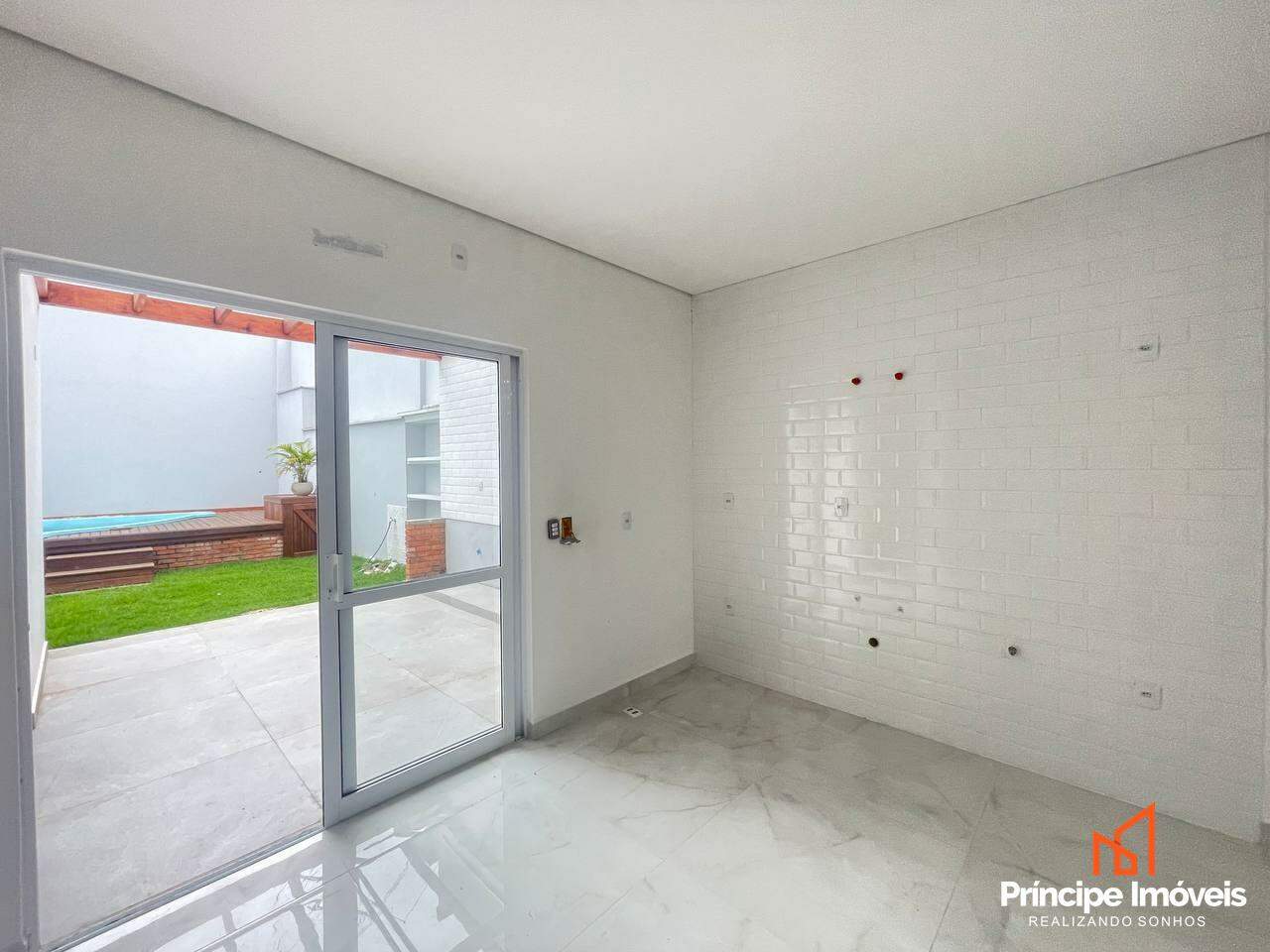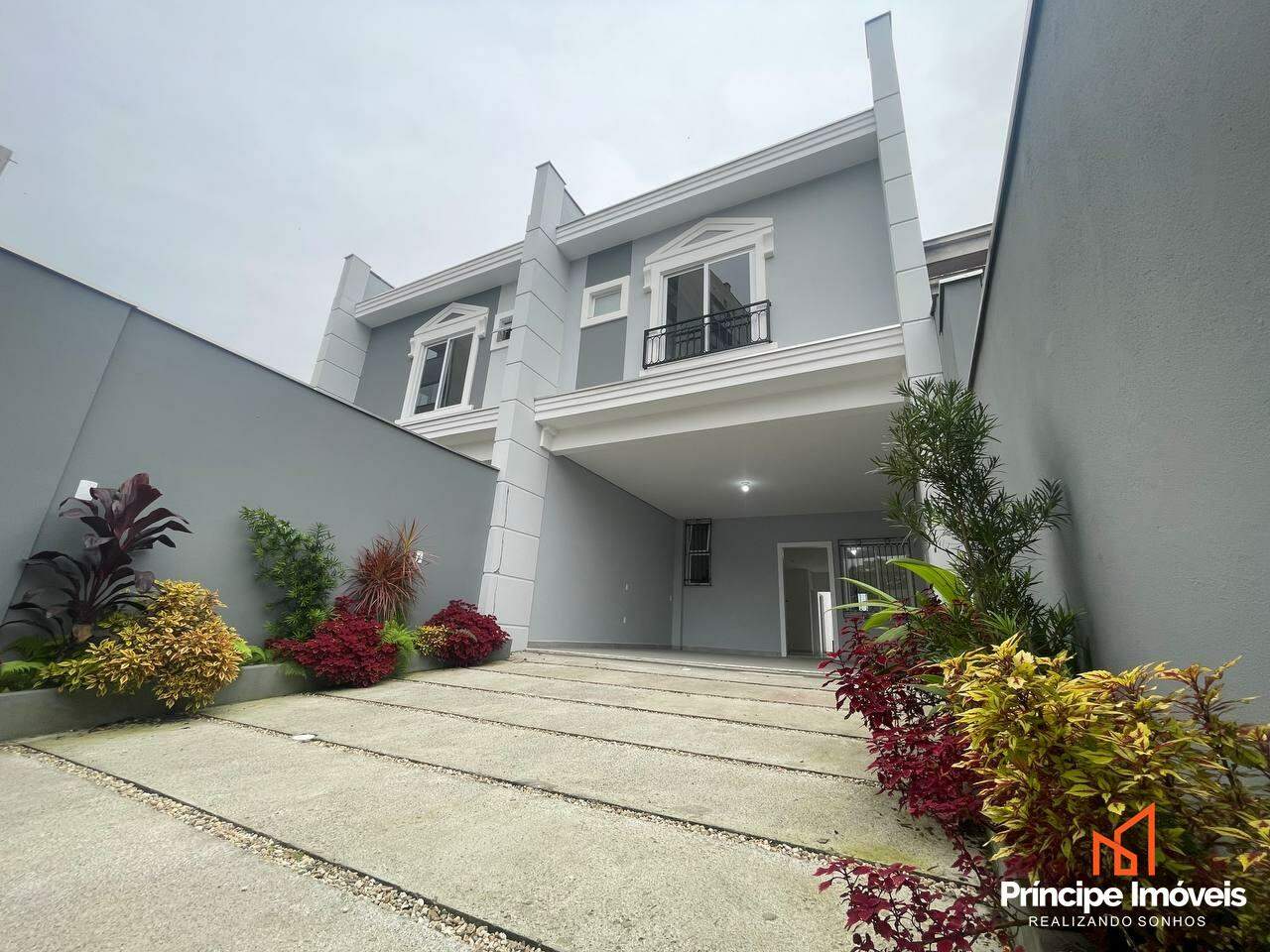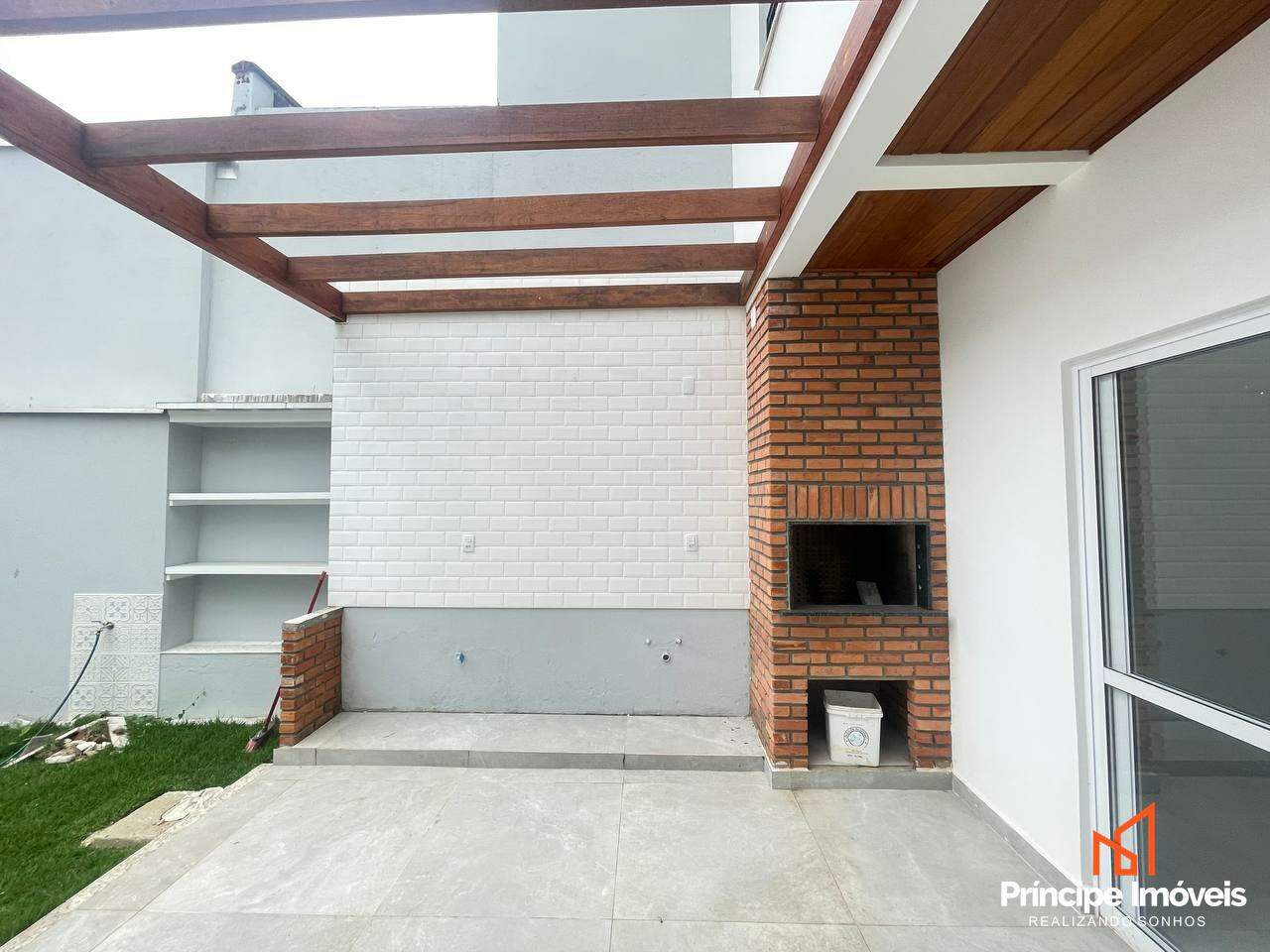 Geminado: Com 5,00 metros de abertura, 11,5 metros de frente e 10 metros de fundos. Esse belíssimo geminado se distribui numa planta espetacular de 151,24m² de área privativa e 160,36m² de área total, com 03 quartos sendo 03 deles suítes com uma sacada, sala de estar/jantar, cozinha, lavabo, área de serviço, área gourmet com churrasqueira a carvão, conta com 02 vagas de garagem, sendo 01 vaga coberta. Excelente padrão de acabamento com piso porcelanato retificado na parte inferior e piso laminado na parte superior, infraestrutura para split em todos os cômodos e rebaixo em gesso. Geminado possuí infra para aquecimento a gás.