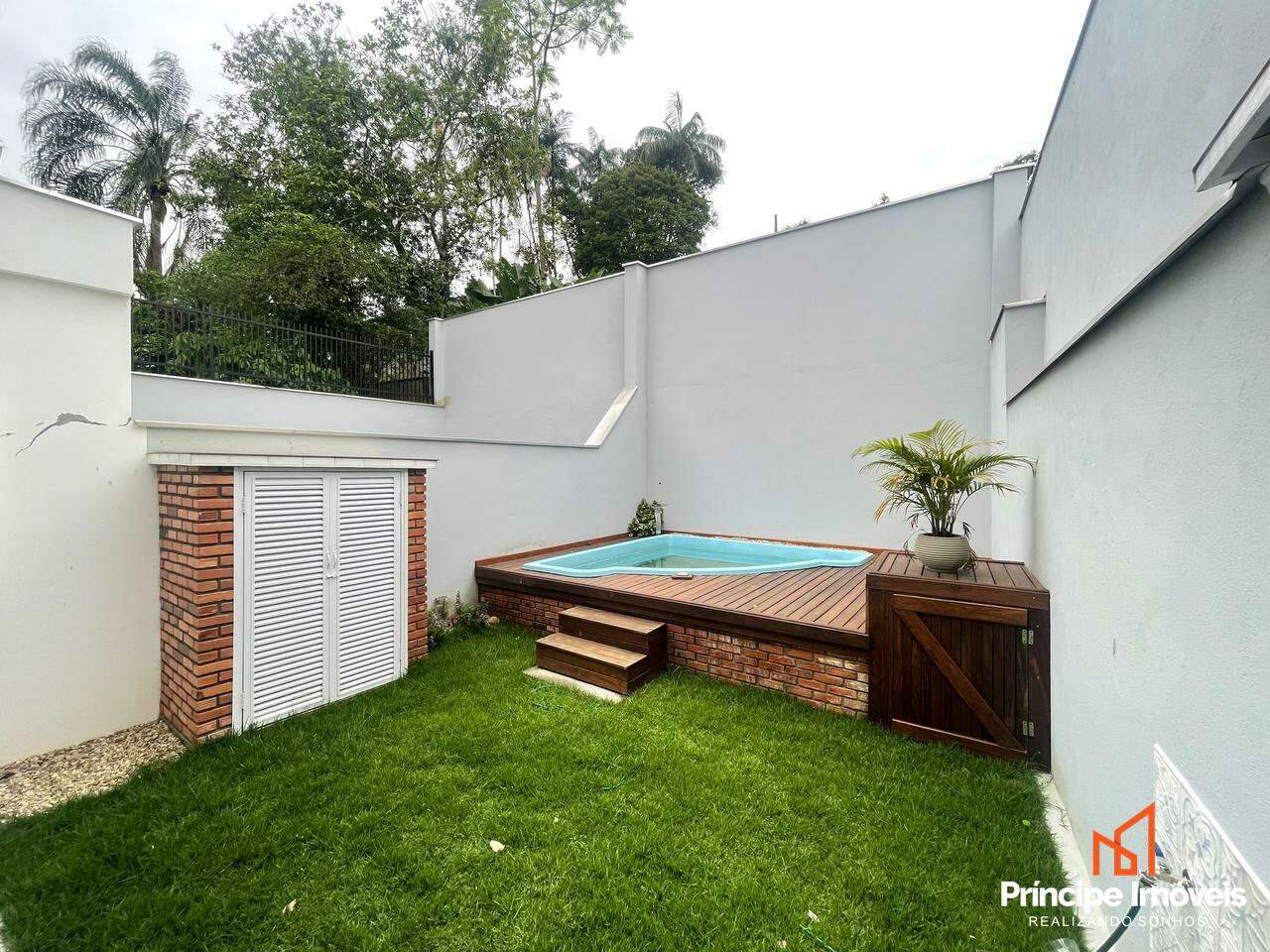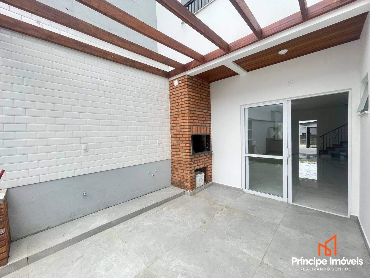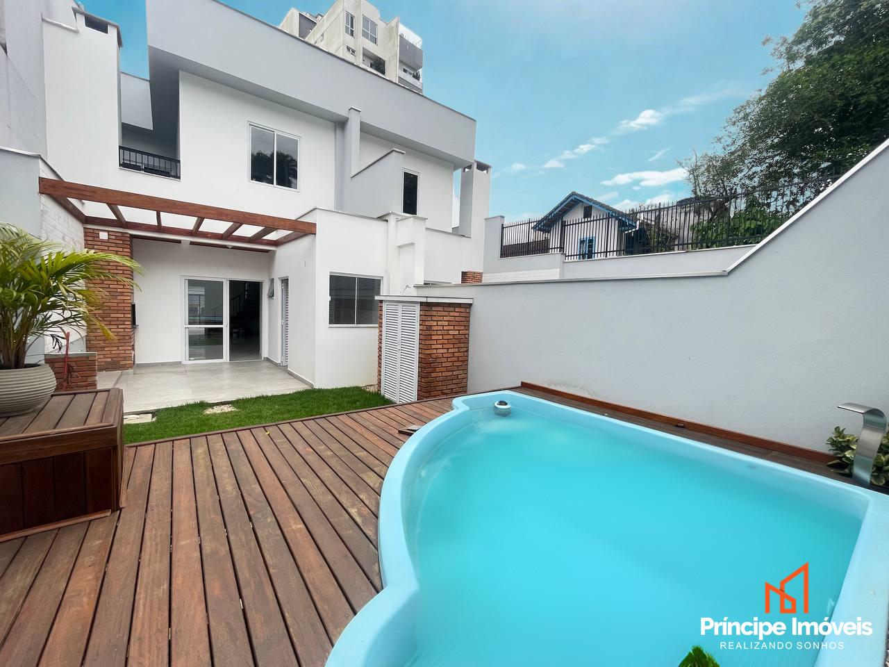 Geminado: Com 5,00 metros de abertura, 11,5 metros de frente e 10 metros de fundos. Esse belíssimo geminado se distribui numa planta espetacular de 151,24m² de área privativa e 160,36m² de área total, com 03 quartos sendo 03 deles suítes com uma sacada, sala de estar/jantar, cozinha, lavabo, área de serviço, área gourmet com churrasqueira a carvão, conta com 02 vagas de garagem, sendo 01 vaga coberta. Excelente padrão de acabamento com piso porcelanato retificado na parte inferior e piso laminado na parte superior, infraestrutura para split em todos os cômodos e rebaixo em gesso. Geminado possuí infra para aquecimento a gás.