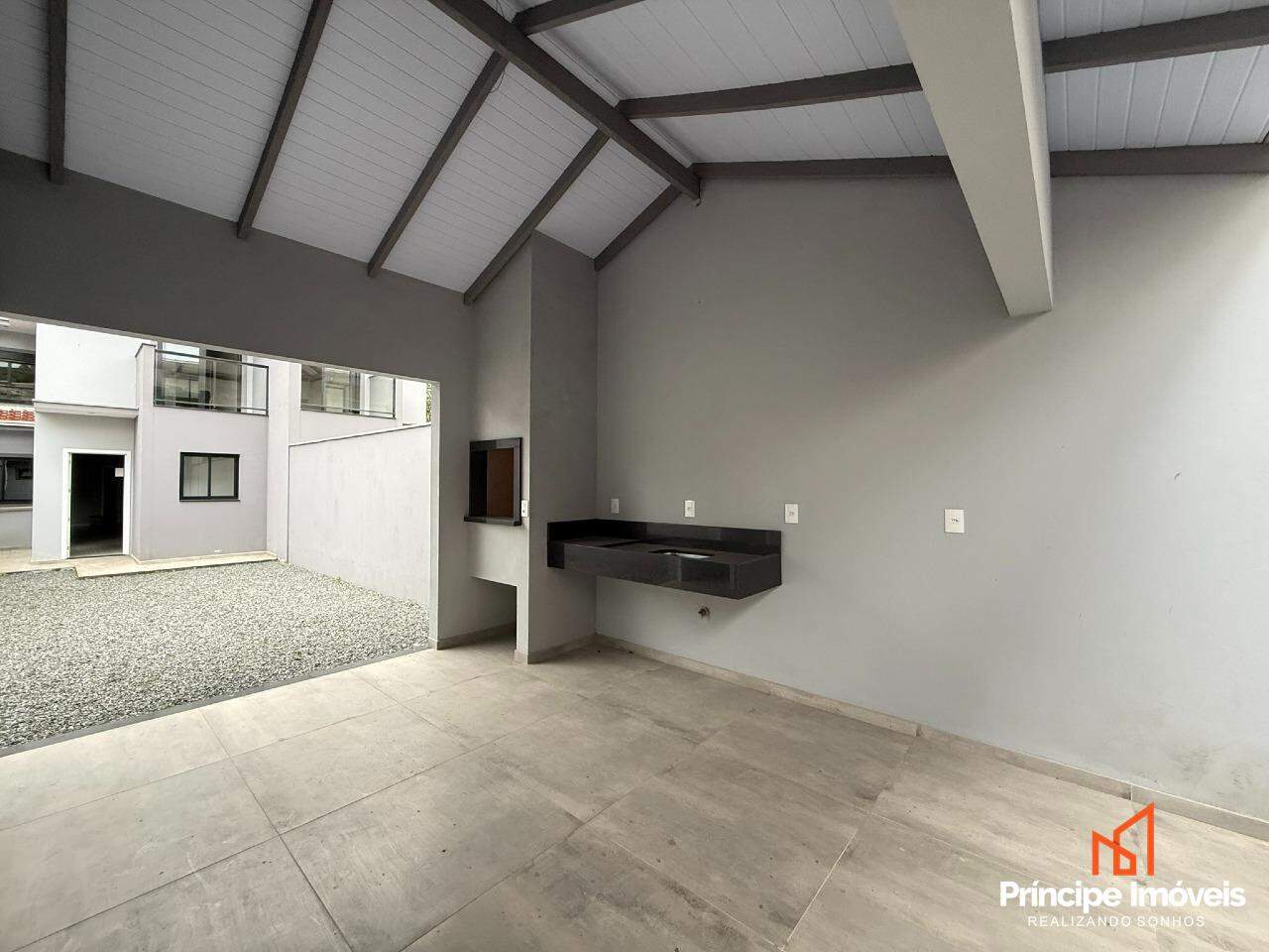 Geminado: Com 05 metros de abertura, 11 metros de frente e 10 metros de fundos livre mais a área da churrasqueira com 06 metros. Este investimento de destaque proporciona 182,49 m² de área privativa e 186,60 de área total. A casa possui uma distribuição bem projetada, incluindo 03 quartos sendo 03 amplas suítes sendo uma das suítes com closet, sala de estar, sala de jantar, lavabo, cozinha e lavanderia privativa. Conta também com uma enorme área de festas nos fundos com churrasqueira à carvão. Além disso, há 03 vagas de garagem disponíveis, sendo 02 delas coberta. O acabamento foi cuidadosamente planejado para oferecer modernidade e elegância, com detalhes em massa corrida e rebaixo em gesso, no térreo todo em piso porcelanato, parte superior em piso vinílico. Além disso, o imóvel possui infraestrutura para receber instalação de ar condicionado split em todos os cômodos.