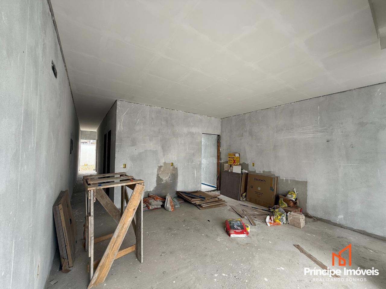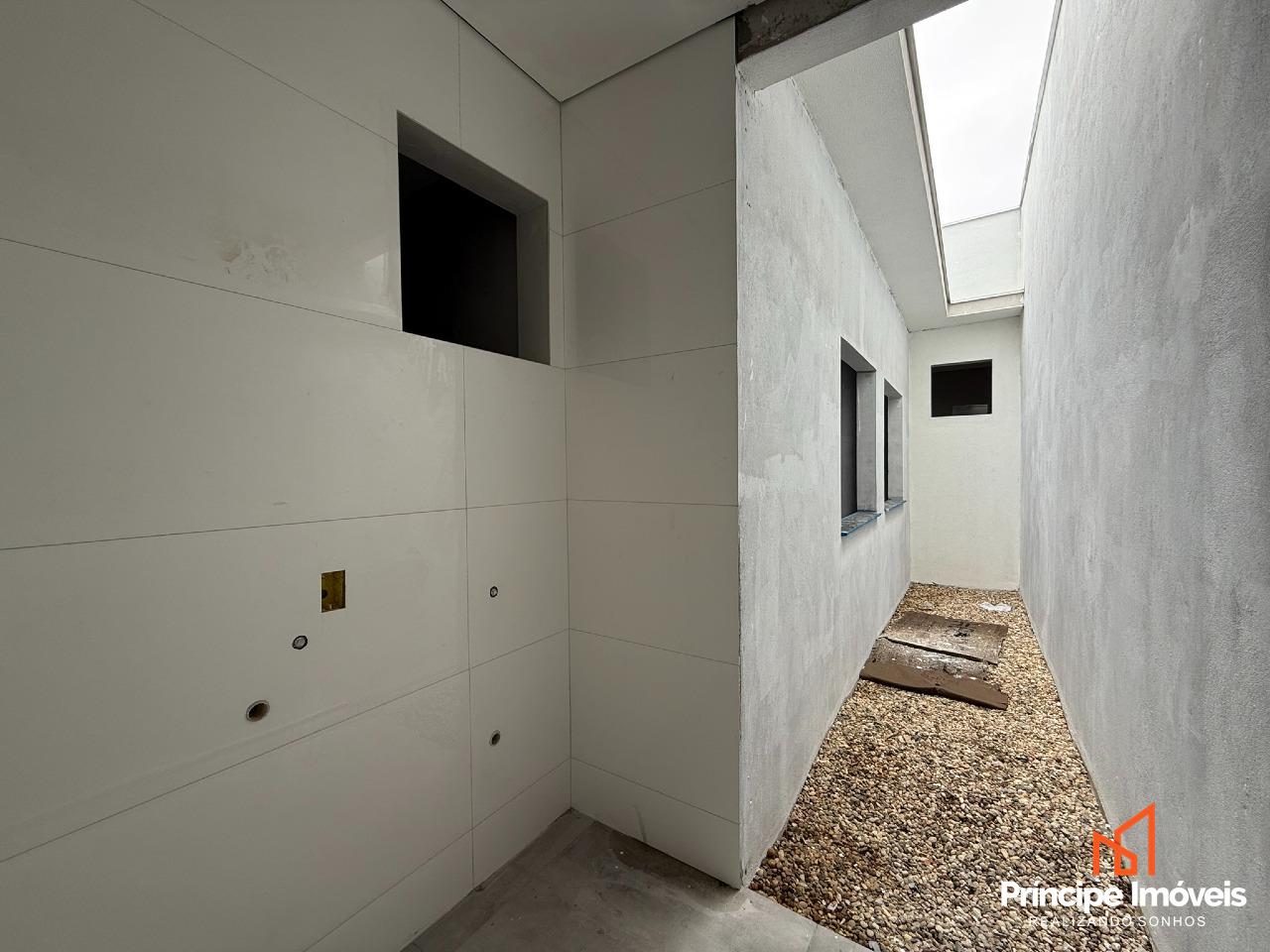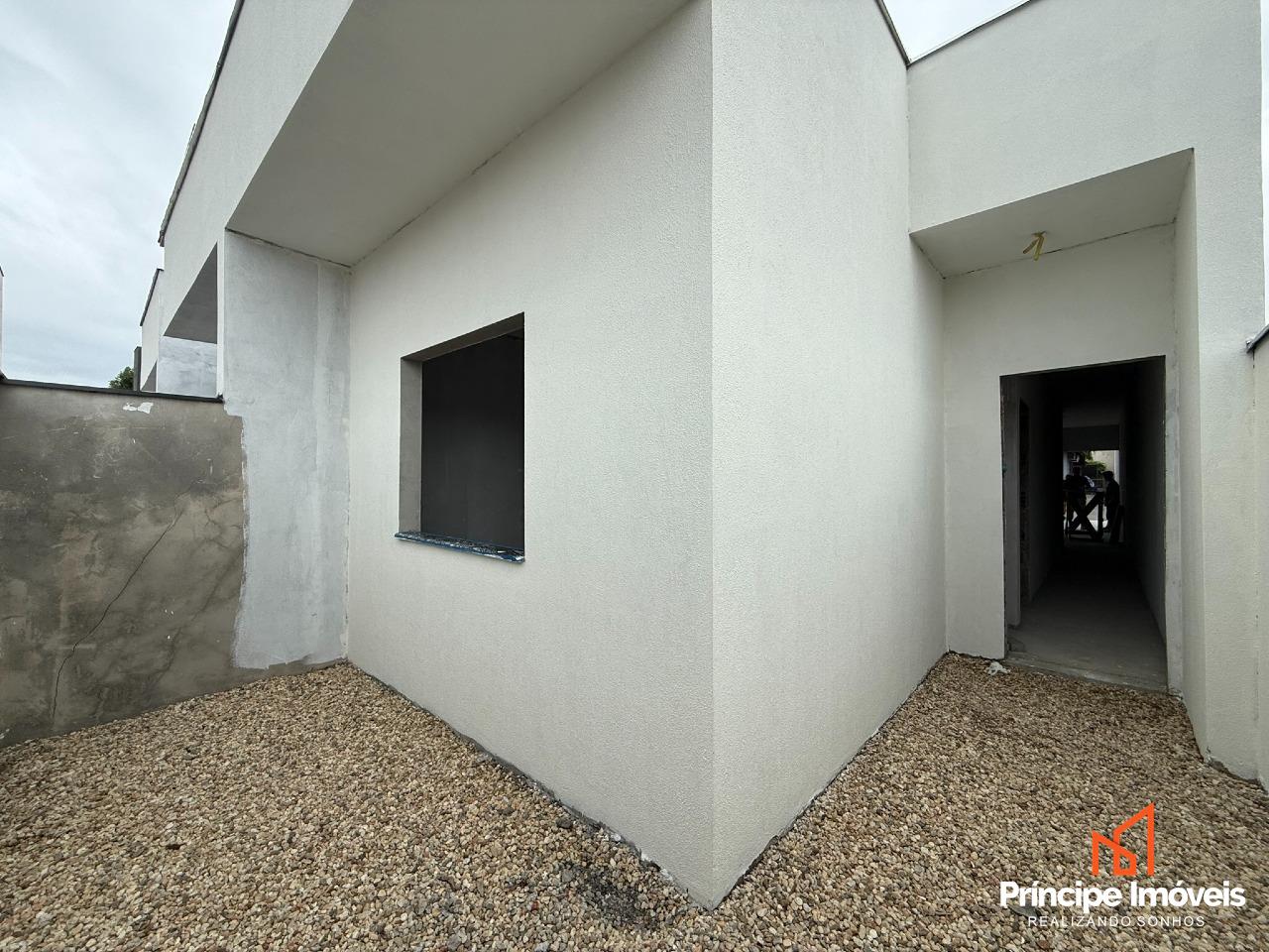 Geminado: Geminado planta baixa com 05 metros de abertura, 10 metros de frente e 02 metros de fundos livre. Este investimento de destaque proporciona 82,97 m² de área privativa e 84,74m² de área total. A casa possui uma distribuição bem projetada, incluindo 03 quartos, sendo 01 suíte, 01 banheiro social, sala de estar, sala de jantar, lavabo, cozinha . Além disso, há 02 vagas de garagem descobertas disponíveis.