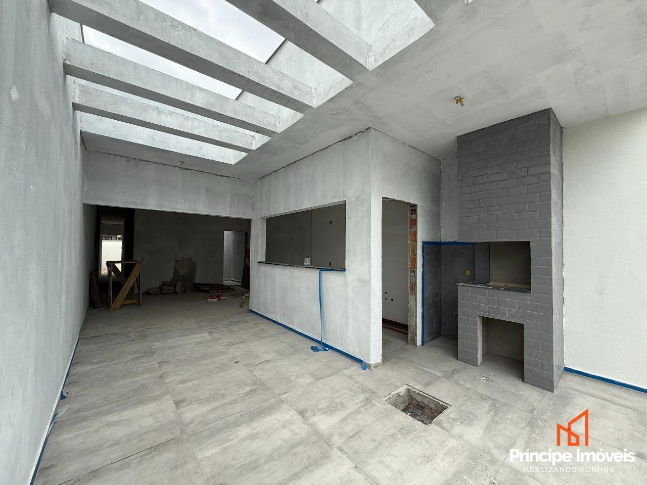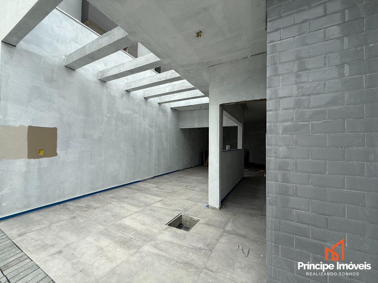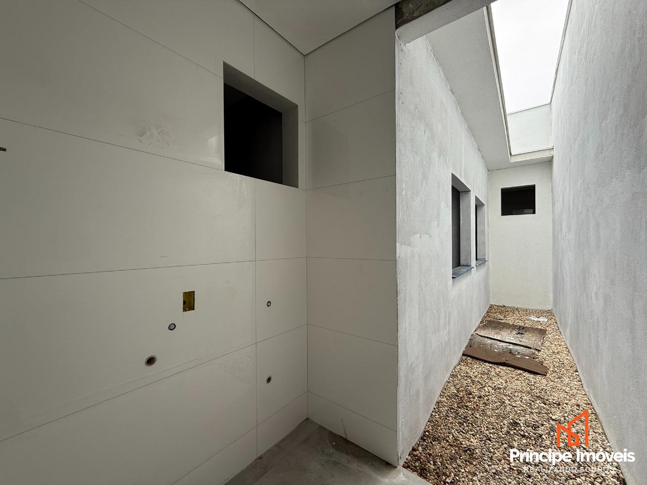 Geminado: Geminado planta baixa com 05 metros de abertura, 10 metros de frente e 02 metros de fundos livre. Este investimento de destaque proporciona 82,97 m² de área privativa e 84,74m² de área total. A casa possui uma distribuição bem projetada, incluindo 03 quartos, sendo 01 suíte, 01 banheiro social, sala de estar, sala de jantar, lavabo, cozinha . Além disso, há 02 vagas de garagem descobertas disponíveis.