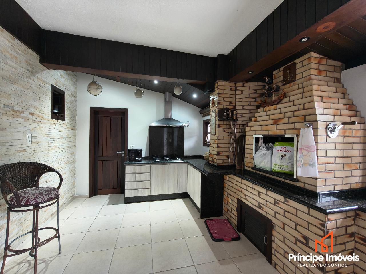 Casa: Com um terreno de 15x48, com 720m² de terreno no total e 193,19 de área construída. Esta belíssima casa possui 03 (três) quartos, sendo 01 (uma) suíte, um grande banheiro social com banheira e mais 01 (um) lavabo. Cozinha muito bem distribuída, com sala de jantar e mezanino, além de uma grande sala de estar com lareira. Consta também, uma área de churrasqueira com móveis planejados e uma vista maravilhosa para a piscina. Vagas para 02 (dois) carros cobertos e 02 (dois) carros descobertos. Casa averbada.