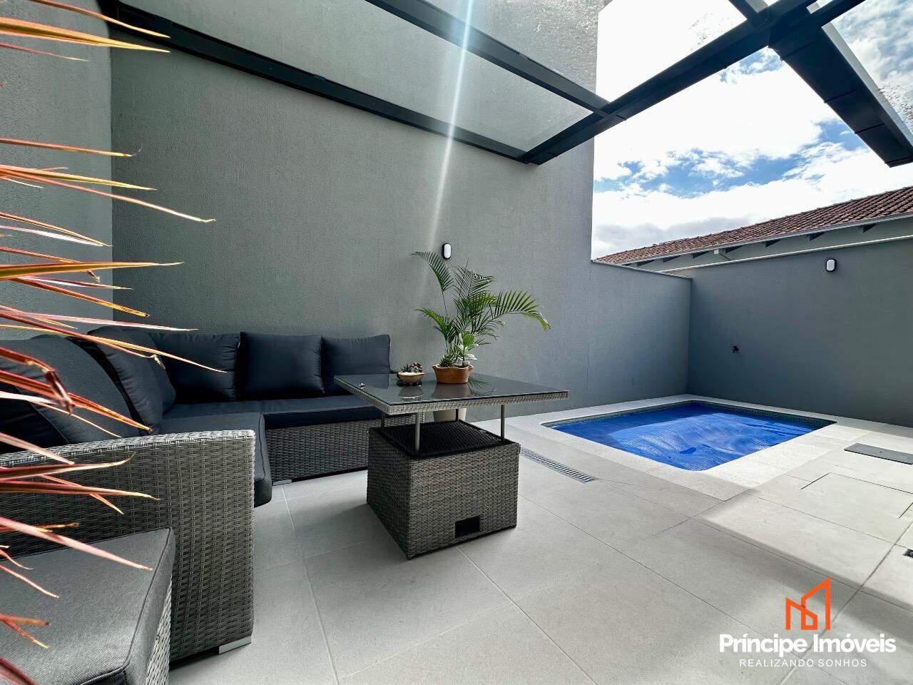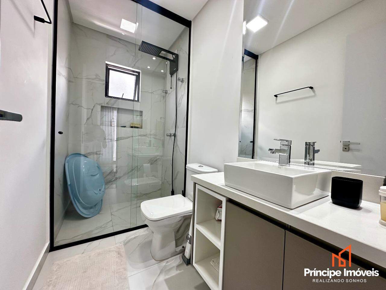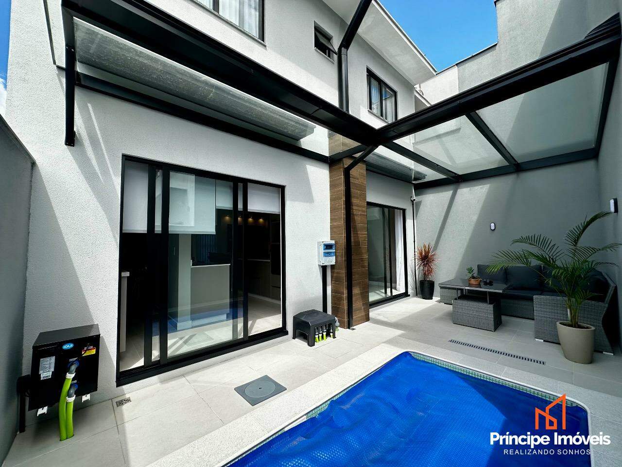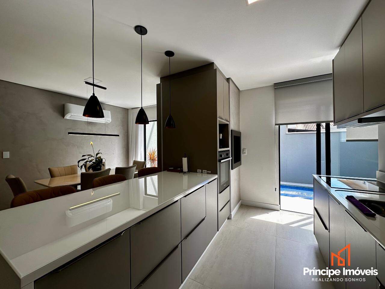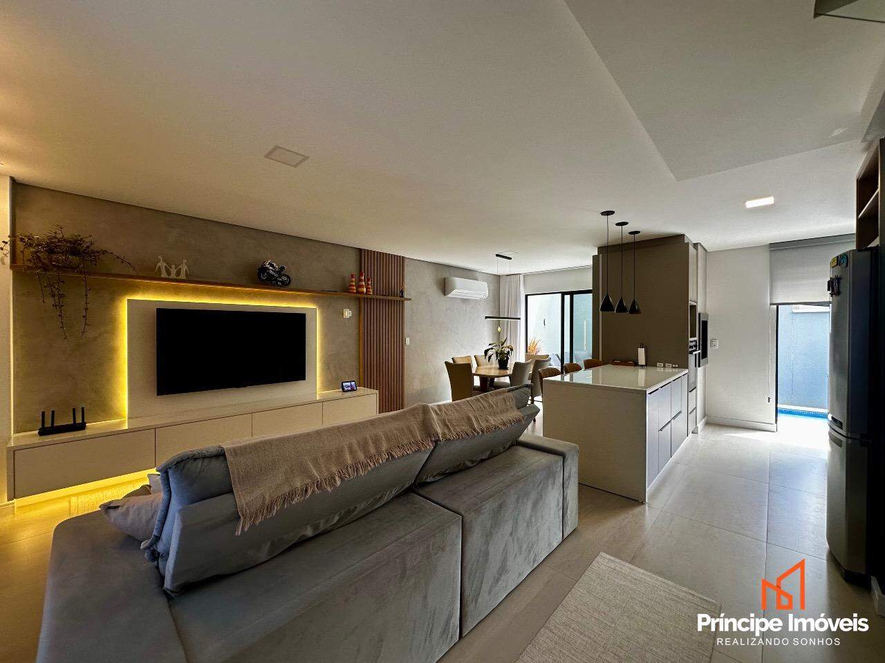 Geminado: Com 07 metros de abertura, 05 metros de frente e 04 metros de fundos, lindo, imponente, muito bem localizado, uma fachada moderna e sofisticada, são apenas algumas das características desse geminado. Composto por 112,02m2 de área total e 105,18m2 de área privativa, de uma belíssima construção, composta por 03 quartos sendo 01 suíte, sala de estar, sala de jantar, 01 banheiro social, lavanderia super espaçosa e privativa, cozinha, 01 lavabo com iluminação e ventilação natural, e duas vagas de garagem paralelas. Com um alto investimento em acabamentos, vem trazendo para você toda qualidade, conforto, modernidade e sofisticação que você procura e merece, piso porcelanato no térreo, vinílico no piso superior, rebaixo em gesso, infra para água quente, e uma moderna fachada com detalhes em ripados de madeira, além de lindos detalhes em jardim na frente e fundos desse imóvel trazendo um toque muito especial. O imóvel conta com automação de Alexa em todos os cômodos da casa, se tornando uma casa inteligente, o imóvel permanece todo mobiliado saindo apenas itens pessoais, tudo de altíssima qualidade. Agende agora mesmo uma visita.