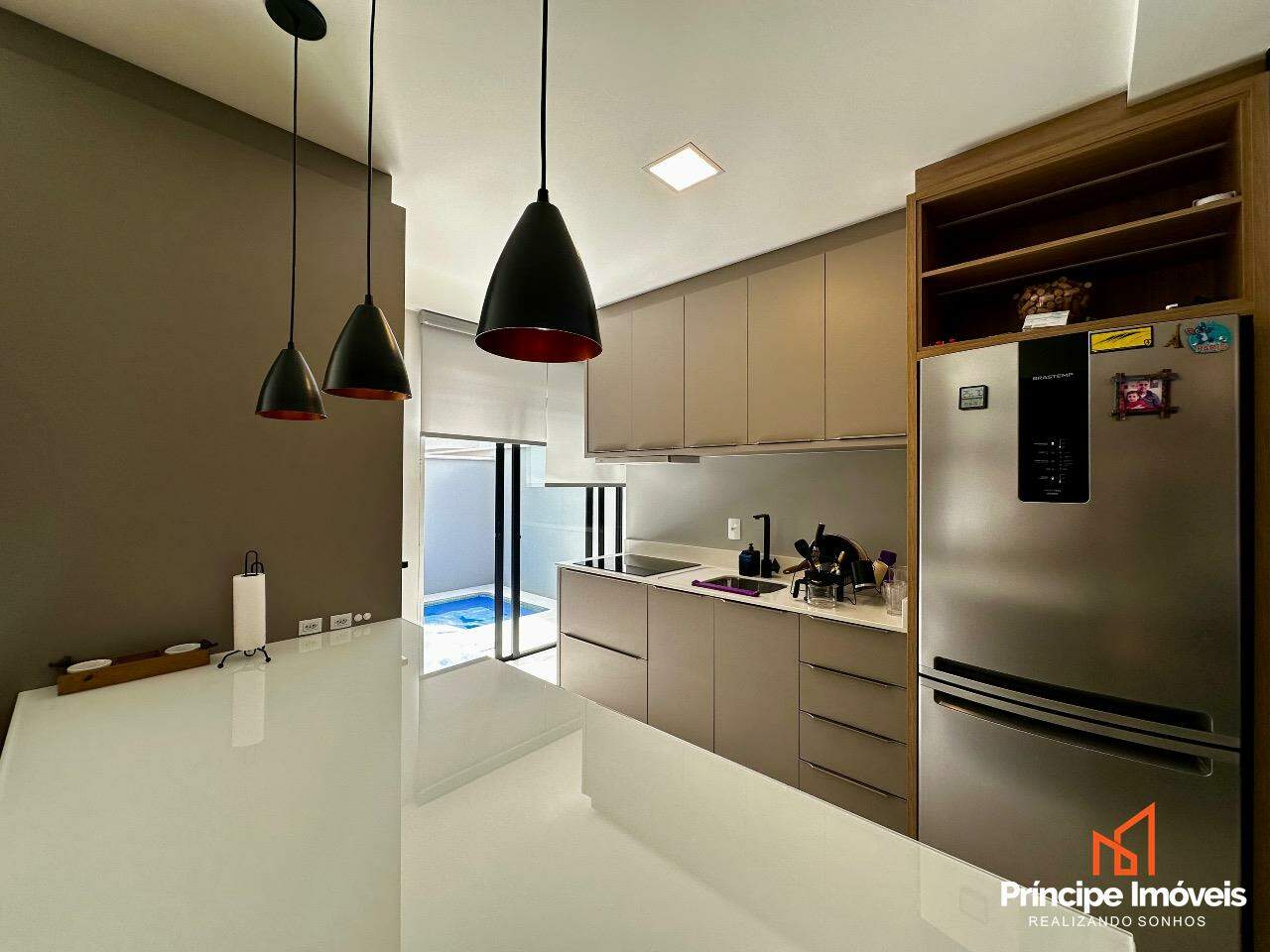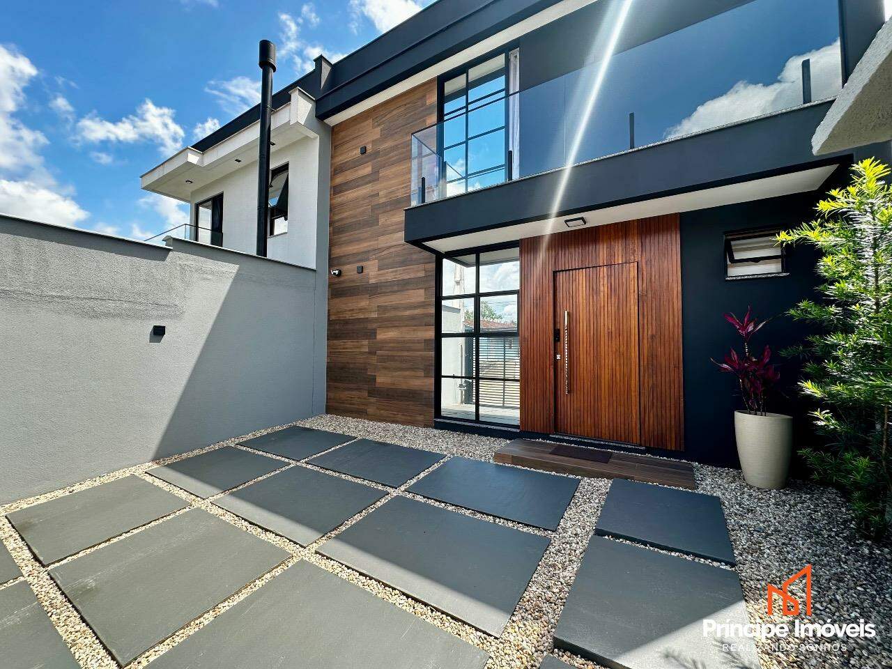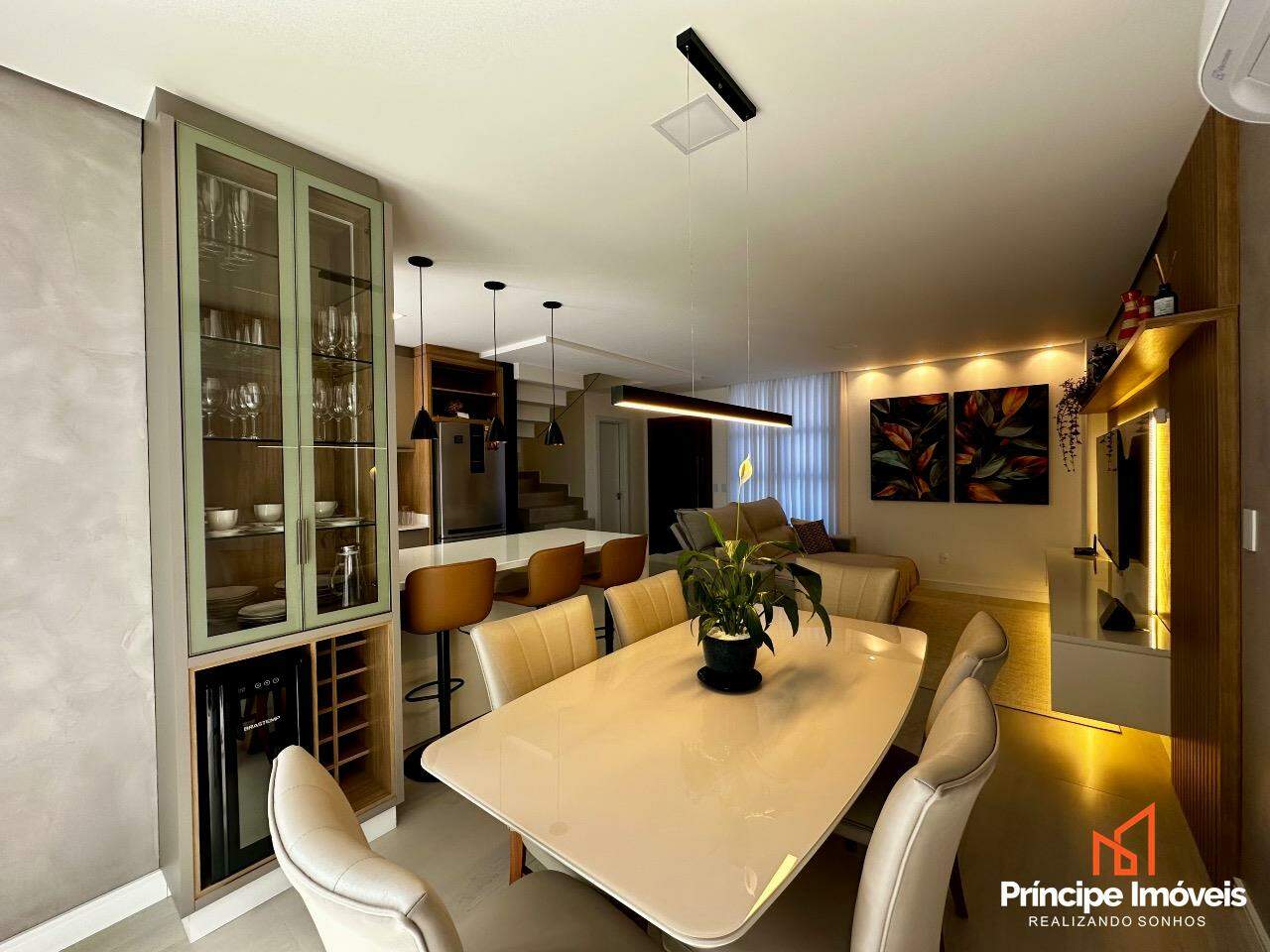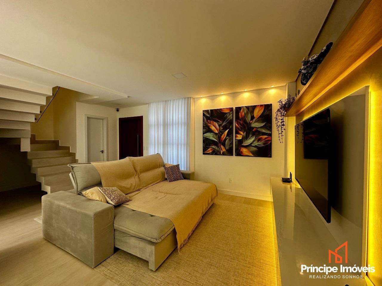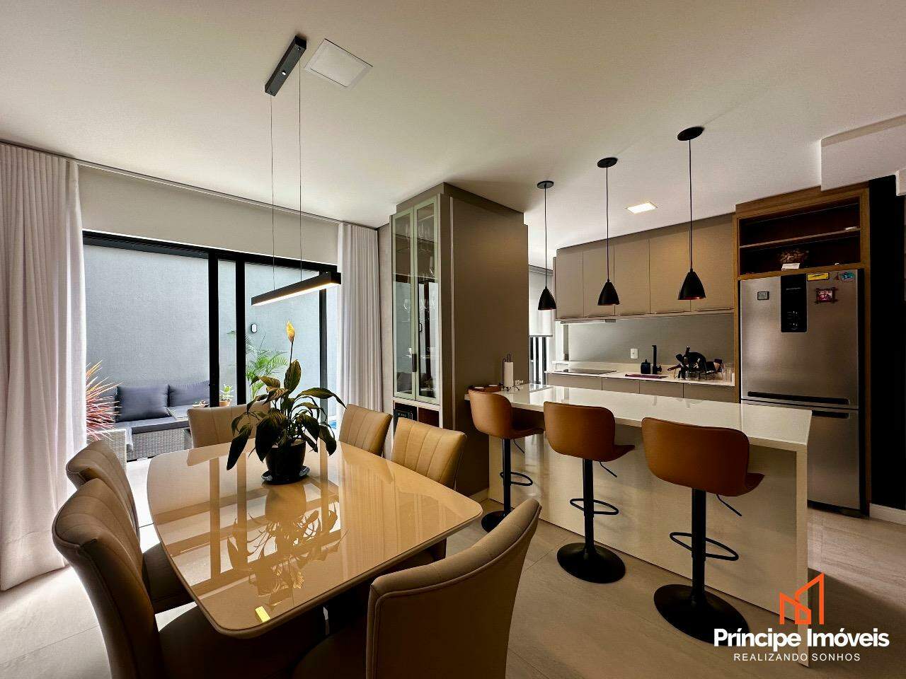Geminado: Com 07 metros de abertura, 05 metros de frente e 04 metros de fundos, lindo, imponente, muito bem localizado, uma fachada moderna e sofisticada, são apenas algumas das características desse geminado. Composto por 112,02m2 de área total e 105,18m2 de área privativa, de uma belíssima construção, composta por 03 quartos sendo 01 suíte, sala de estar, sala de jantar, 01 banheiro social, lavanderia super espaçosa e privativa, cozinha, 01 lavabo com iluminação e ventilação natural, e duas vagas de garagem paralelas. Com um alto investimento em acabamentos, vem trazendo para você toda qualidade, conforto, modernidade e sofisticação que você procura e merece, piso porcelanato no térreo, vinílico no piso superior, rebaixo em gesso, infra para água quente, e uma moderna fachada com detalhes em ripados de madeira, além de lindos detalhes em jardim na frente e fundos desse imóvel trazendo um toque muito especial. O imóvel conta com automação de Alexa em todos os cômodos da casa, se tornando uma casa inteligente, o imóvel permanece todo mobiliado saindo apenas itens pessoais, tudo de altíssima qualidade. Agende agora mesmo uma visita.