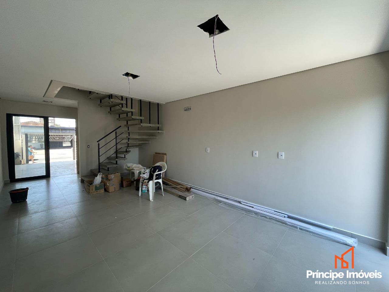 Geminado: Com 4,00 metros de abertura, 13 metros de frente e 11,50 metros de fundos, este geminado foi projetado para oferecer conforto e funcionalidade. O imóvel dispõe de espaço para dois carros, sala e cozinha conjugadas, lavabo e um terreno nos fundos, ideal para criar uma área gourmet, jardim ou espaço de lazer. A área íntima conta com 03 quartos, sendo 01 suíte, garantindo privacidade e bem-estar para os moradores. Um imóvel versátil, com ótimo aproveitamento dos espaços, perfeito para quem busca praticidade sem abrir mão de conforto.