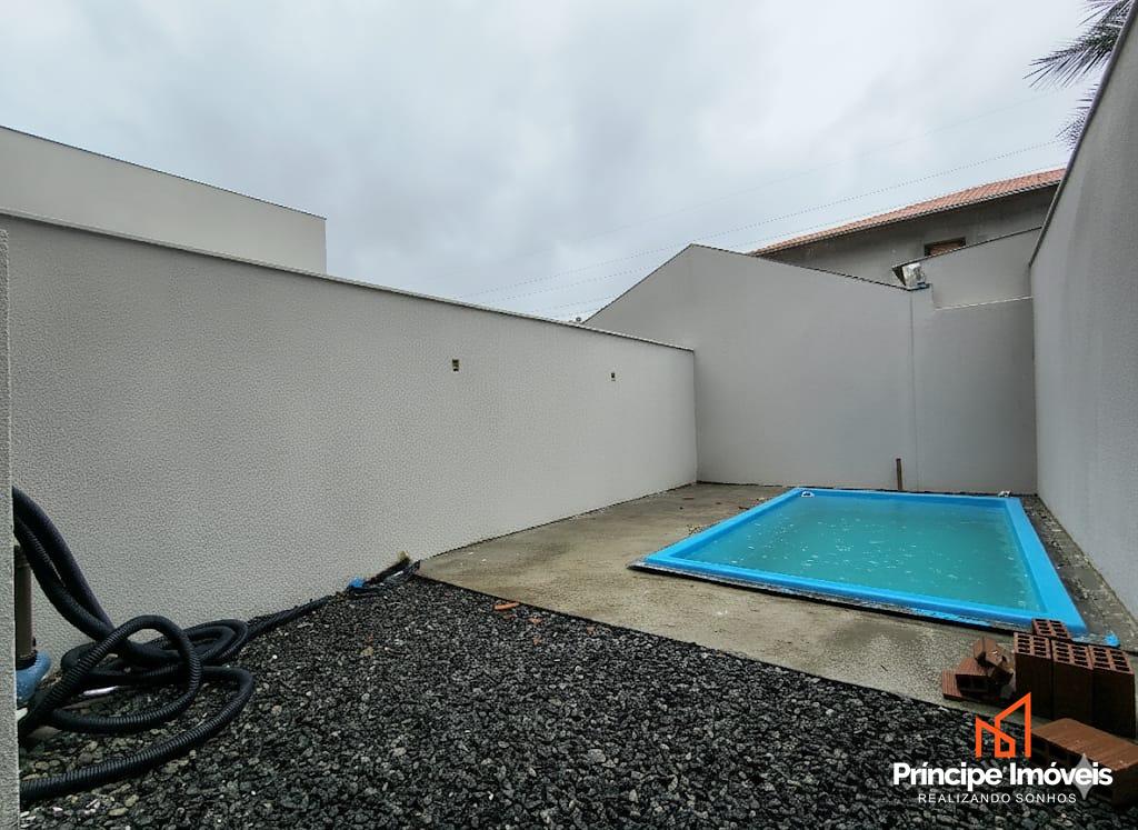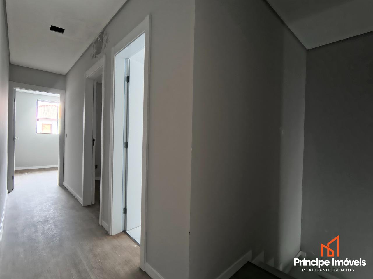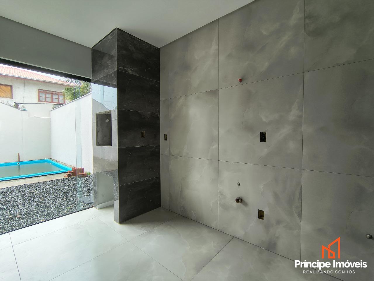 Geminado: Com 3,45 metros de abertura, 9,53 metros de frente e 7,38 metros de fundos. Este investimento de destaque proporciona 111,93 m² de área privativa e 114,83 m² de área total. A casa possui uma distribuição bem projetada contando com sala de estar e cozinha integrados, lavabo e área de serviço fechada, 03 quartos sendo 01 suíte. Conta com 02 vagas de garagem sendo uma integrada. O acabamento foi cuidadosamente planejado para oferecer modernidade e elegância, piso porcelanato e laminado na parte superior, com rebaixamento em gesso em todos os cômodos. Conta também com Churrasqueira e piscina para reunir quem você ama, ambientes integrados que ampliam a sensação de espaço e liberdade. Além disso, o imóvel possui infraestrutura para receber instalação de ar condicionado nos quartos e sala.