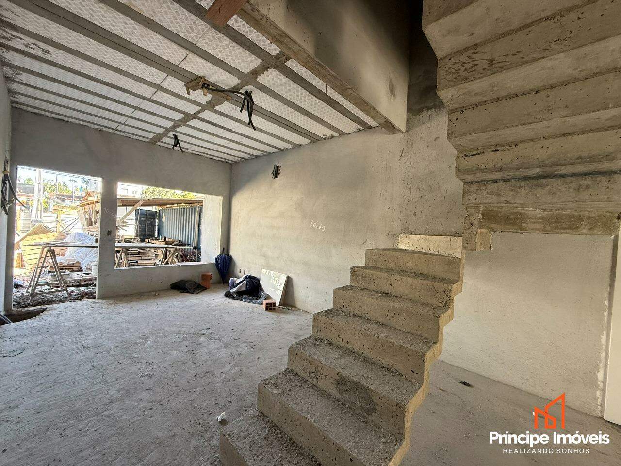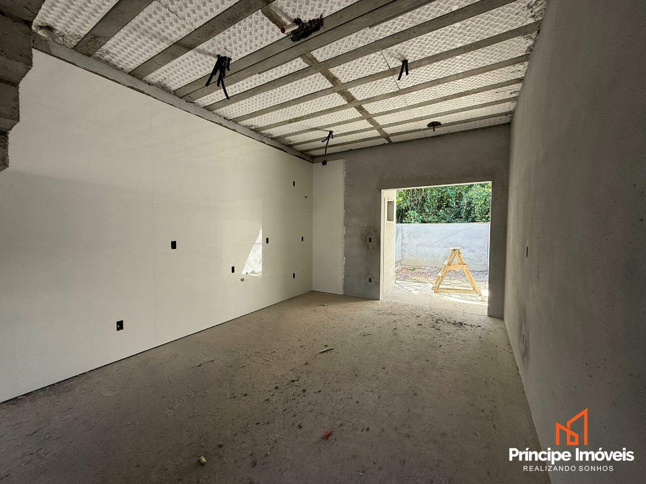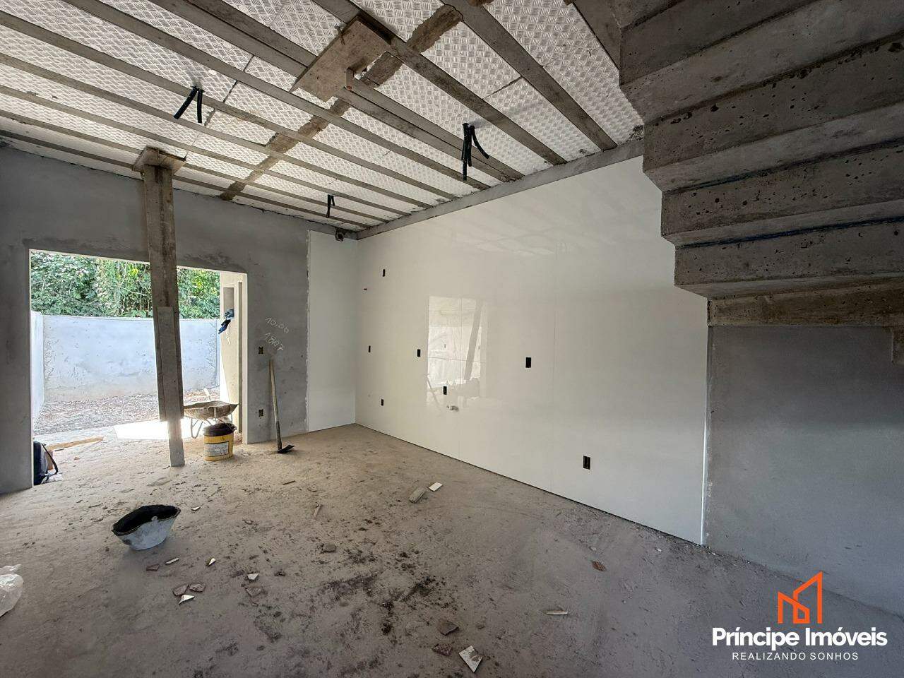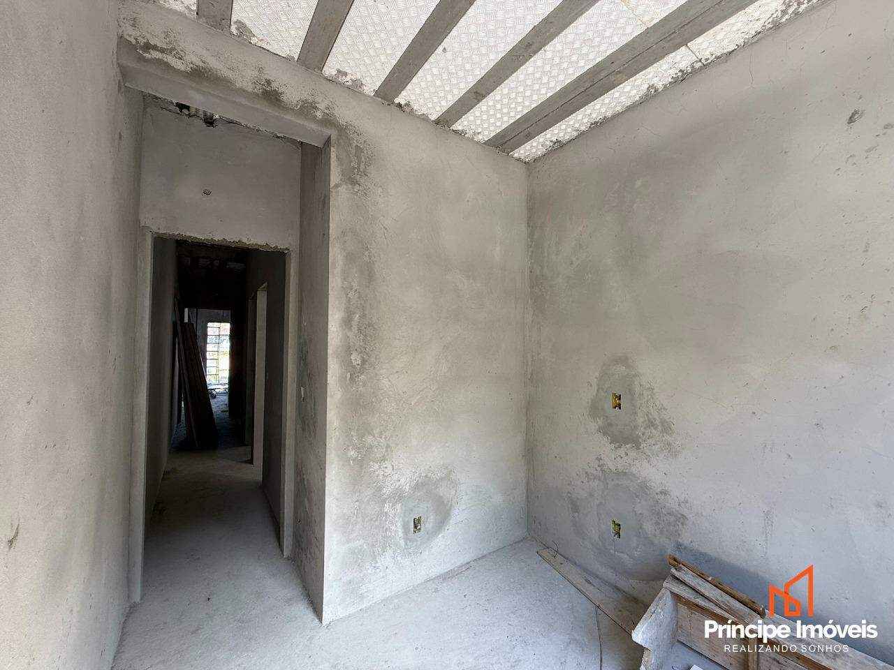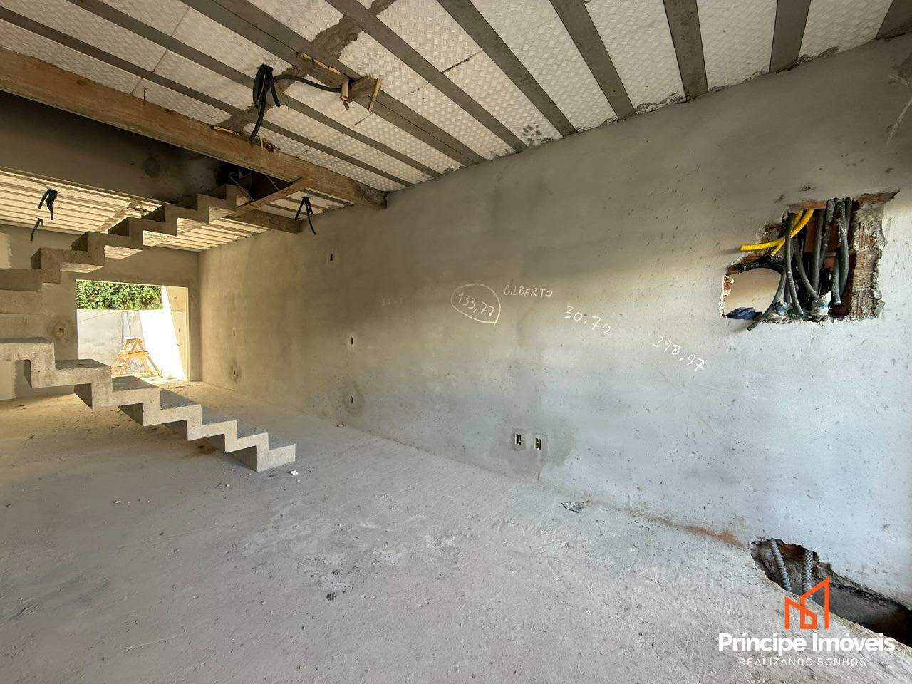 Geminado: Com 03,50 metros de abertura, 10 metros de frente e 05,60 metros de fundos. Este investimento de destaque proporciona 104,08m² de área privativa e 125,53m² de área total. O geminado possui uma distribuição bem projetada contando no piso inferior com 01 sala de estar, 01 cozinha e 01 área de serviço, 01 lavabo e 01 churrasqueira a carvão, 01 vaga coberta com pergolado e vidro e 01 vaga descoberta, no piso superior, são 03 quartos sendo 01 suíte, 01 banheiro social e 01 varanda. Os acabamentos são de alto padrão para oferecer modernidade e elegância, com detalhes em massa corrida e pintura, o piso inferior com porcelanato retificado, piso superior com vinilico, cozinha e banheiros com azulejo retificado, janelas com vidro temperado com aluminio em preto, as portas com porta kit branco, portões de bascular de alumínio preto sem motor, e as vagas de estacionamento com brita e concreto. Entrega prevista de entrega de conclusão de obra Março/2026.