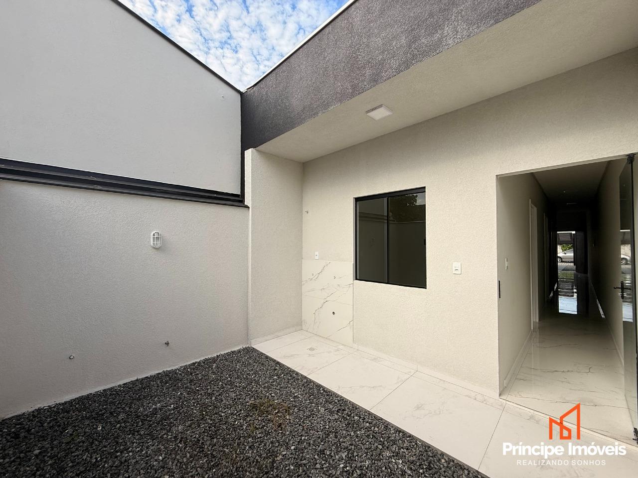 Geminado: Com 3,80 metros de abertura, 10 metros de frente e 4,50 metros de fundos, planta baixa com 60,05 m² de área privativa e 63,35 m² de área total. O imóvel possui uma excelente distribuição, contando com 3 quartos sendo 01 com acesso para jardim de inverno, 1 banheiro social, sala de estar integrada à cozinha, lavanderia externa e um excelente espaço de fundos. Apresenta ótimo padrão de acabamento, com rebaixo em gesso, piso porcelanato nas areas comuns e laminado nas áreas intimas proporcionando um ambiente moderno e aconchegante. Conta ainda com 02 vaga de garagem descoberta, portão de elevação basculante e uma fachada moderna, sendo uma excelente opção para quem busca um imóvel funcional, bem localizado e pronto para morar.