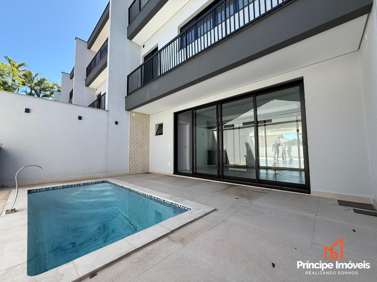 Geminado Tríplex: Com 7,15m² de abertura, 13,05 m² metros de frente e 08 metros de fundo, em uma planta de 306,43m² de área construída e 318,51m² de área total, este imóvel impressiona pela modernidade, sofisticação e conforto proporcionado pela excelente disposição dos espaços. O térreo conta com uma garagem espaçosa com capacidade para até 04 carros oferecendo toda comodidade que sua família merece. Possui uma ampla área Gourmet com churrasqueira à carvão e uma maravilhosa piscina. No 1º pavimento conta com uma área social integrada unindo sala de estar de jantar, cozinha com preparação para ilha, área de serviço privativa e 01 lavabo. No 3º pavimento possui 03 quartos, sendo 03 suítes espaçosas, pensadas para garantir o máximo de privacidade e bem-estar à sua família. Com tecnologia embarcada, o triplex dispõe de tomadas com automação e persianas automatizadas , que elevam a experiência de morar com mais praticidade e sofisticação. O imóvel conta com elevador, infraestrutura para aquecimento a gás e ar-condicionado. Este é o imóvel ideal para quem busca sofisticação, conforto e qualidade de vida em um dos endereços mais desejados da cidade.