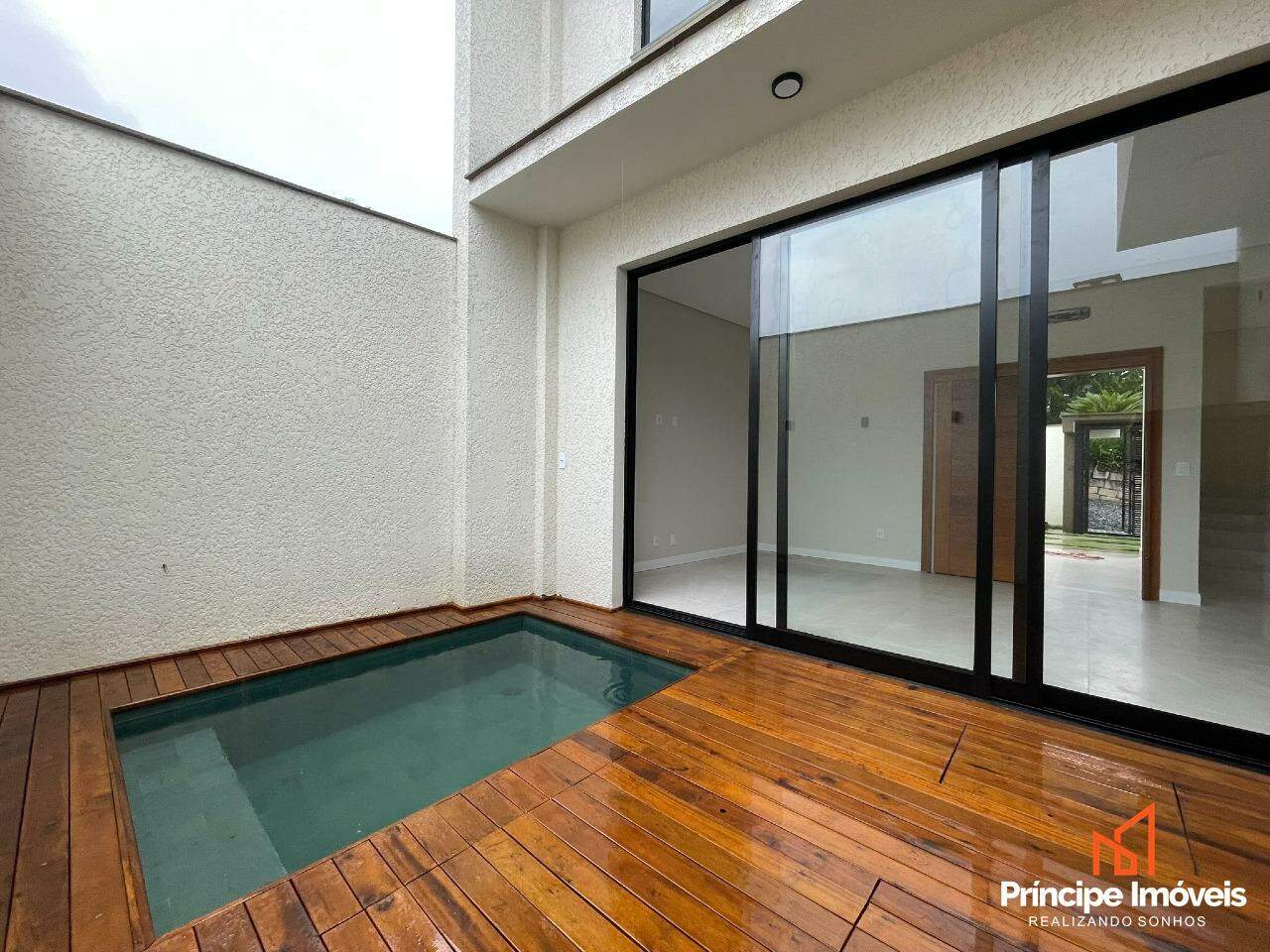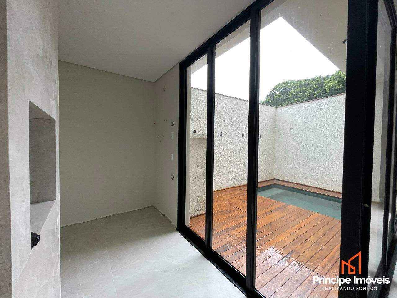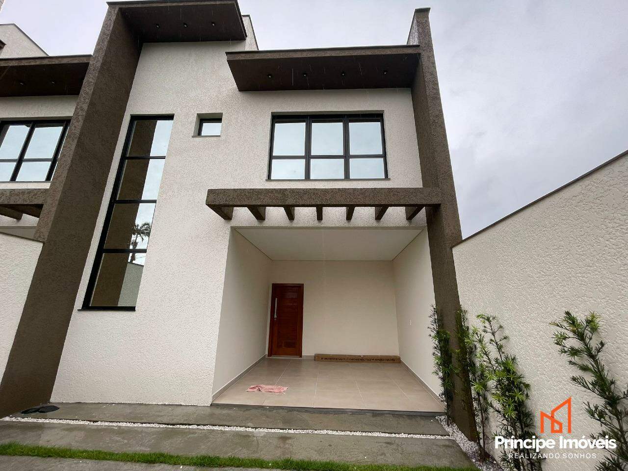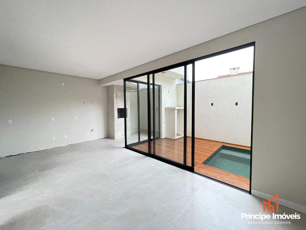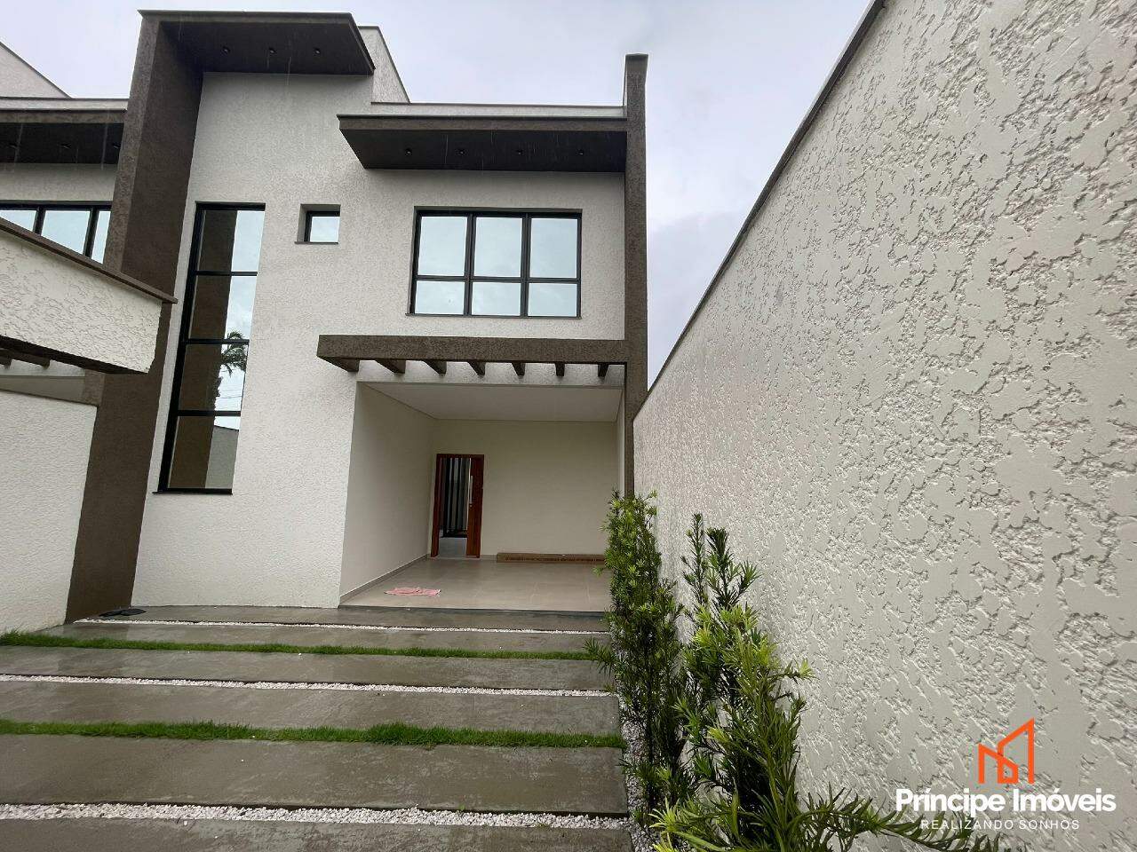 Geminado: Com 7,5 metros de abertura, 09 metros de frente e possui 05 metros de fundos. Com uma planta de 111,22m² de área construída e 116,00 m² de área total, este imóvel impressiona pela modernidade, sofisticação e conforto proporcionado pela excelente disposição dos espaços. O térreo conta com uma garagem espaçosa com capacidade para até 03 carros, sendo 01 vaga coberta. Possui uma ampla área social com sala de estar, jantar, cozinha conjugadas e lavanderia privativa e lavabo. No piso superior possui 03 quartos, sendo 01 suíte ampla . O imóvel conta com infraestrutura para ar-condicionado, massa corrida, rebaixo em gesso, porcelanato na parte inferior e vinílico na parte superior. O imóvel será entregue com churrasqueira e piscina.