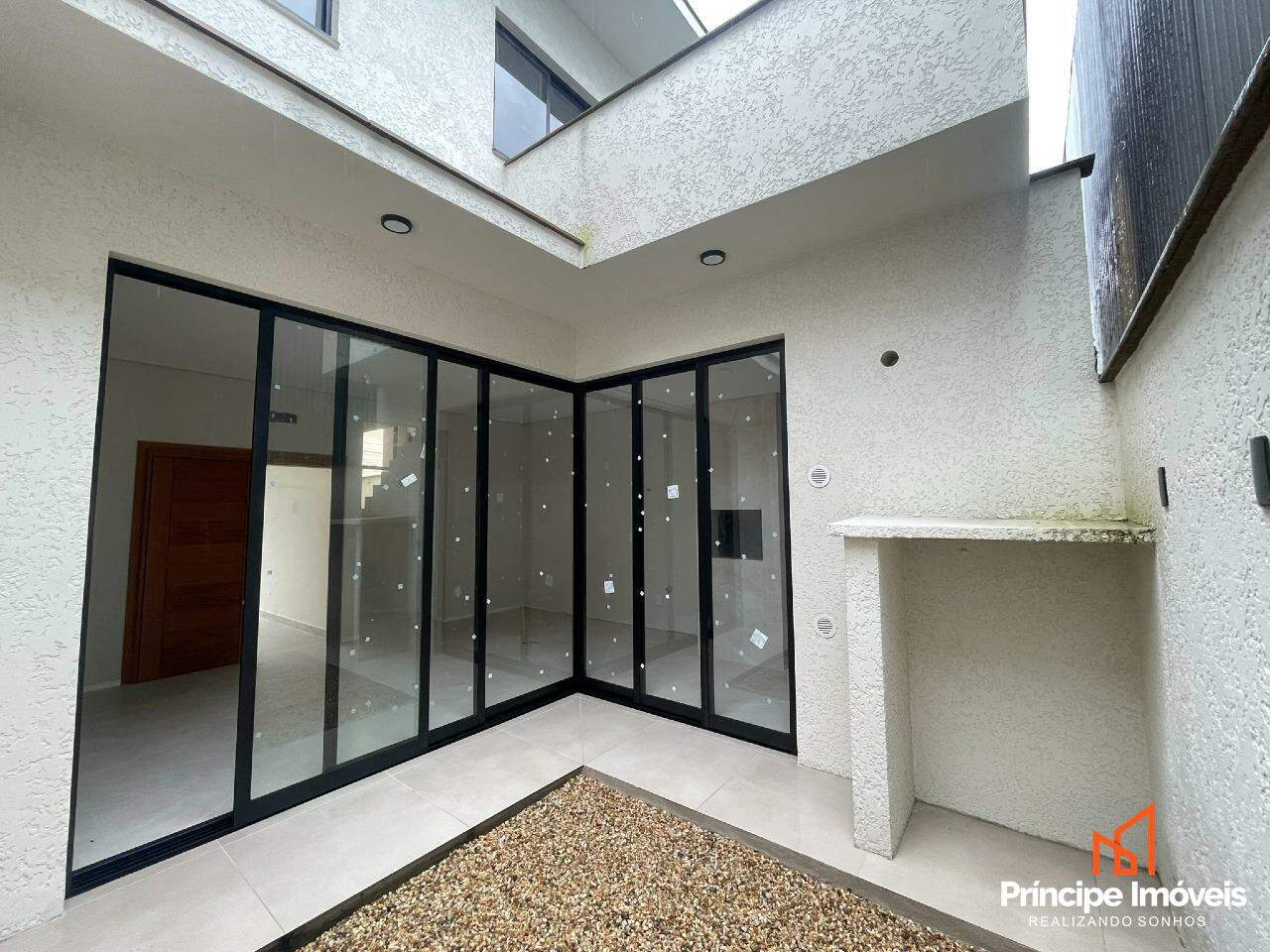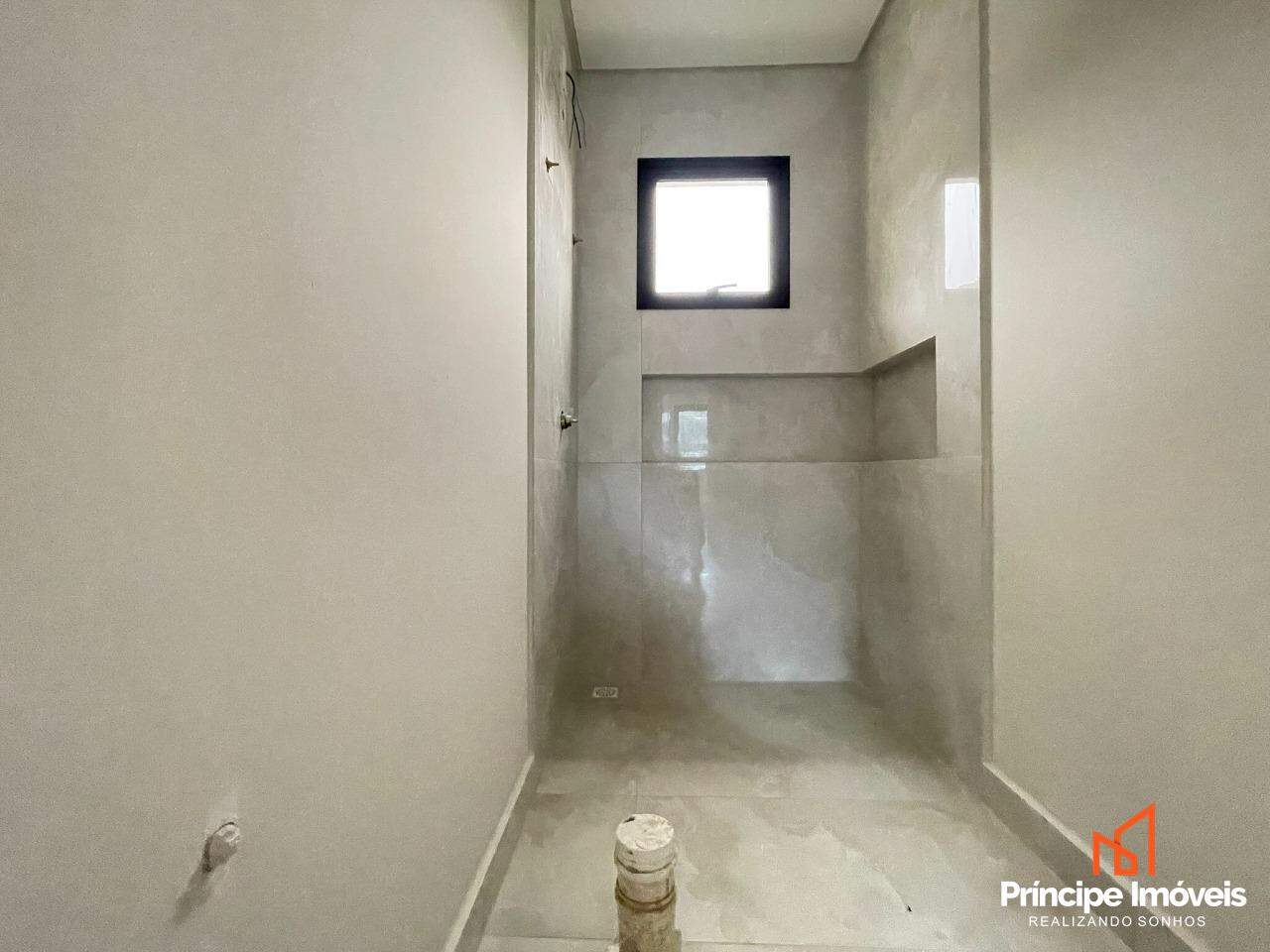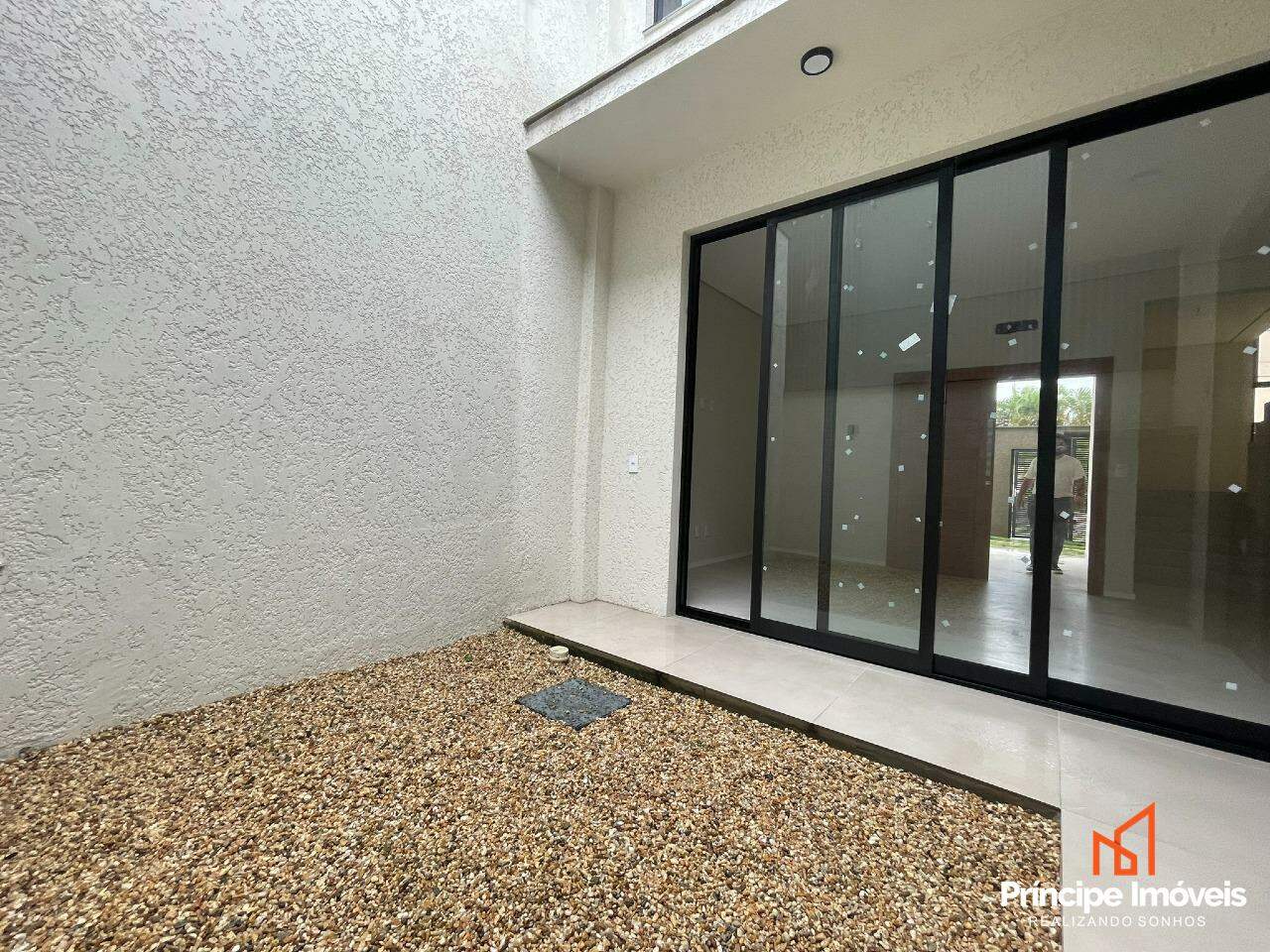 Geminado: Com 06 metros de abertura, 08 metros de frente e 05 metros de fundos. Com uma planta de 98,28m² de área construída e 101,90 m² de área total, este imóvel impressiona pela modernidade, sofisticação e conforto proporcionado pela excelente disposição dos espaços. O térreo conta com uma garagem espaçosa com capacidade para até 02 carros, sendo 01 vaga coberta. Possui uma ampla área social com sala de estar, jantar, cozinha conjugadas e lavanderia privativa e lavabo. No piso superior possui 03 quartos, sendo 01 suíte ampla . O imóvel conta com infraestrutura para ar-condicionado, massa corrida, rebaixo em gesso, porcelanato na parte inferior e vinílico na parte superior. O imóvel será entregue com churrasqueira .