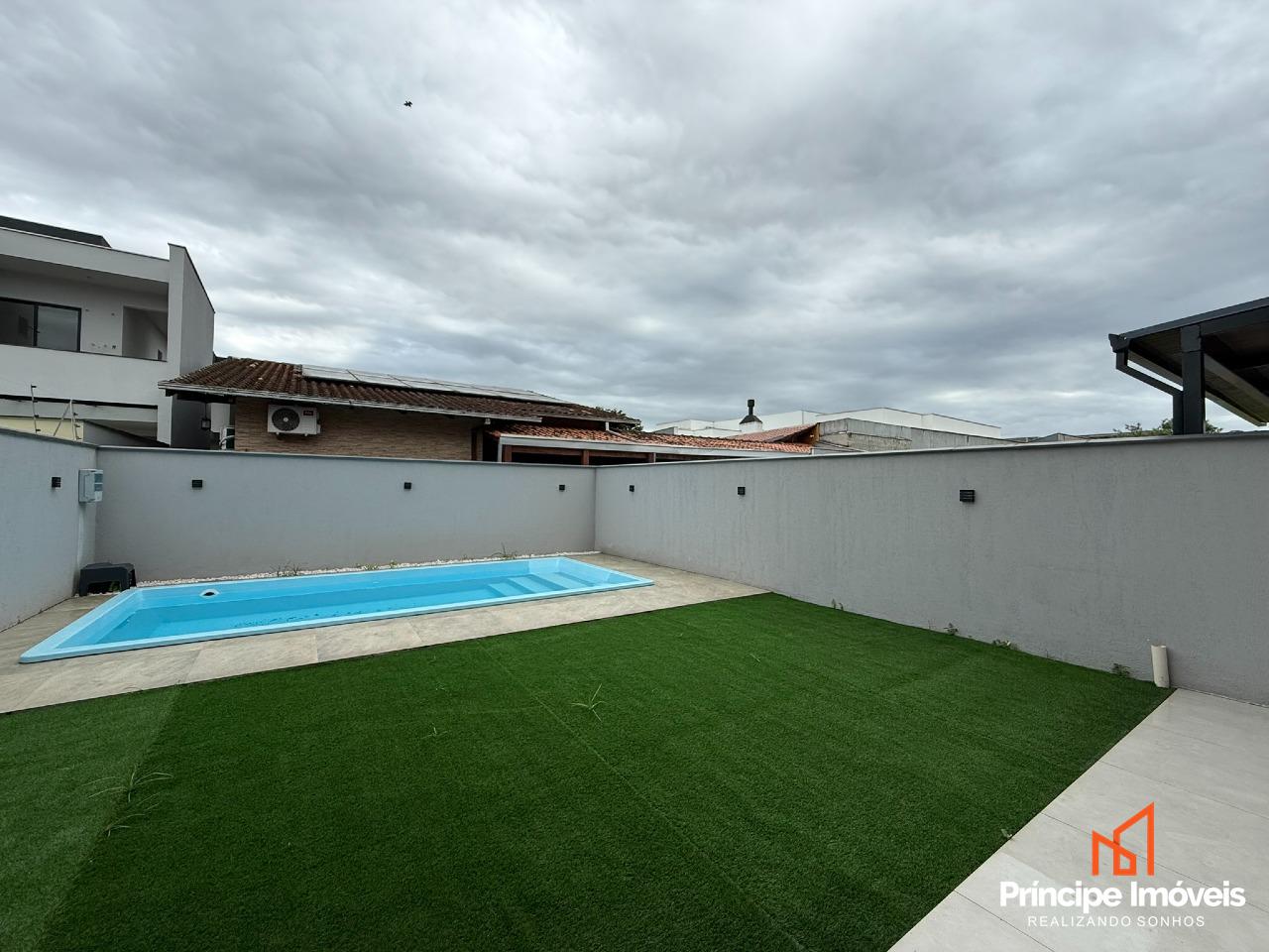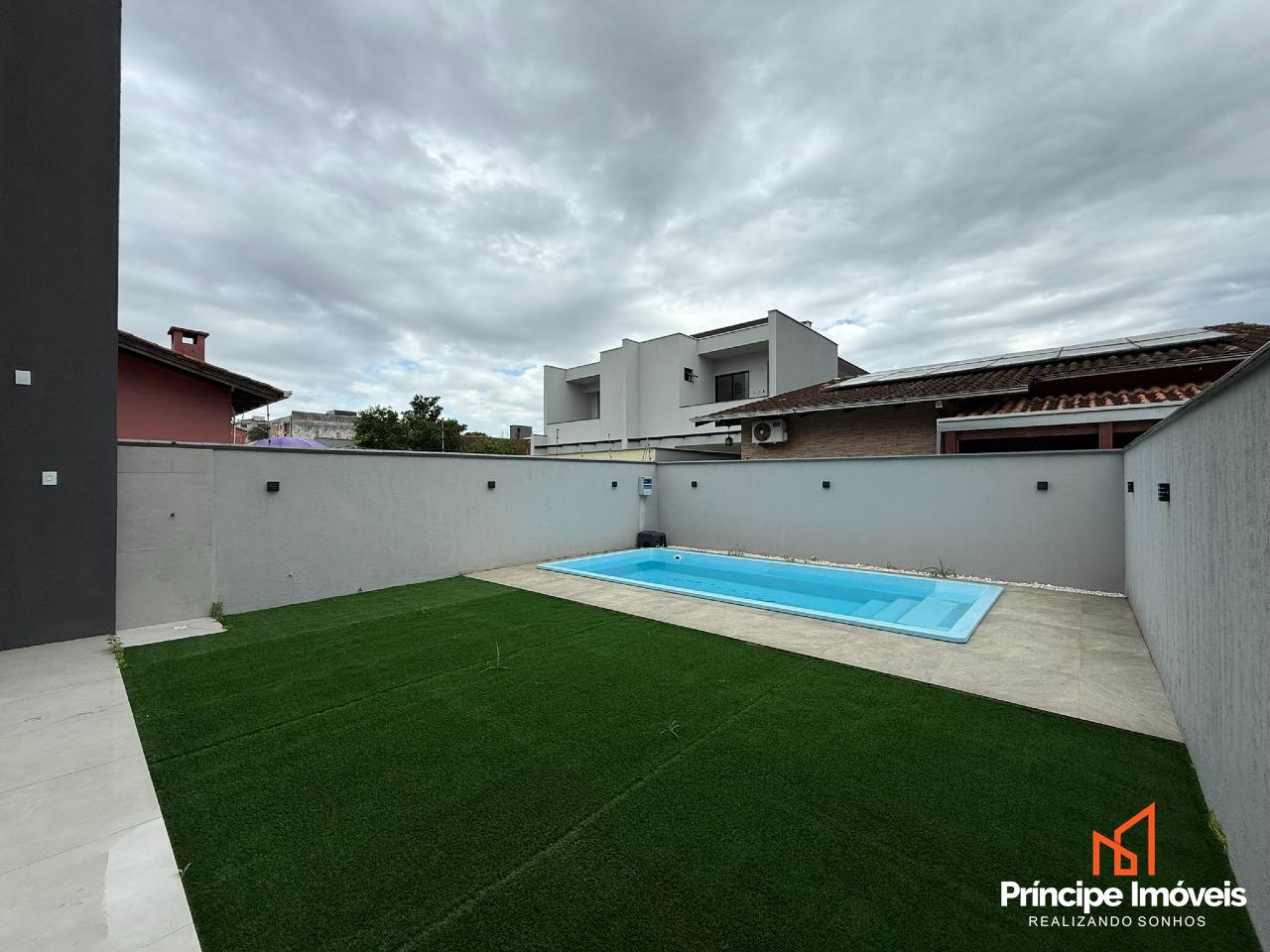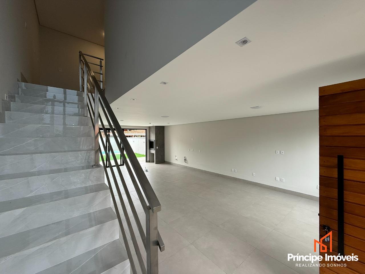 Geminado: Abertura 6,50 metros,, com 06 metros frente e incríveis 7,50 metros de fundos, com 140,02 de área privativa e 143,87 de área total, esse belíssimo geminado de alto padrão se distribui numa planta espetacular, com 03 quartos sendo 01 deles suíte com sacada, todos os quartos com sacada, sala de estar/jantar e cozinha integrados, 01 banheiros social, lavabo na área externa e área de serviço na área externa também, e uma área de fundos com piscina, churrasqueira à carvão.. São 02 vagas de garagem, sambas descobertas. Possui portão eletrônico já instalado, infra para ar condicionado em todos os cômodos, com vinílico em toda a parte superior, em todas as portas janelas já com persiana automatizada.