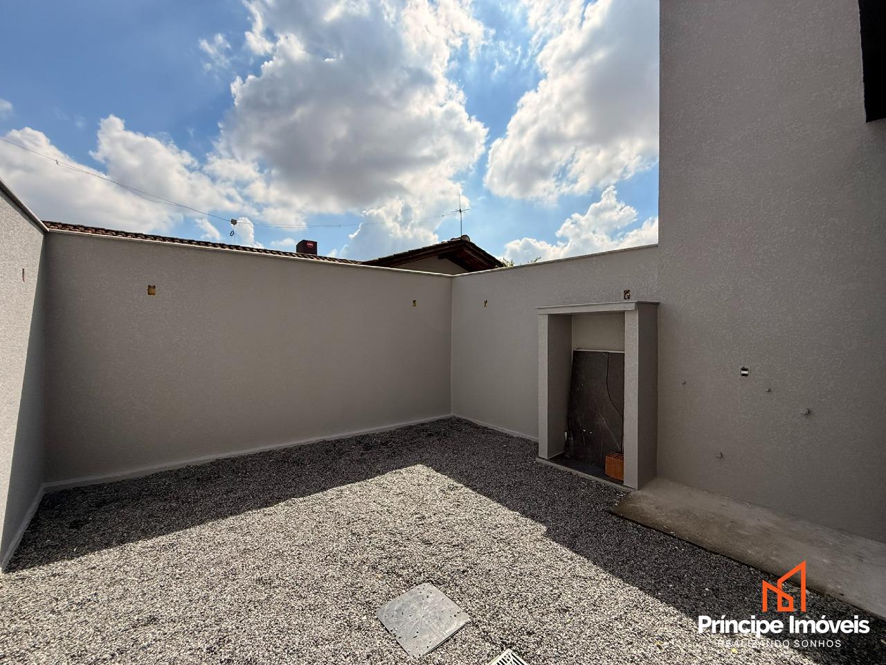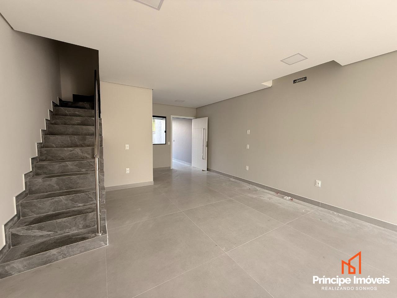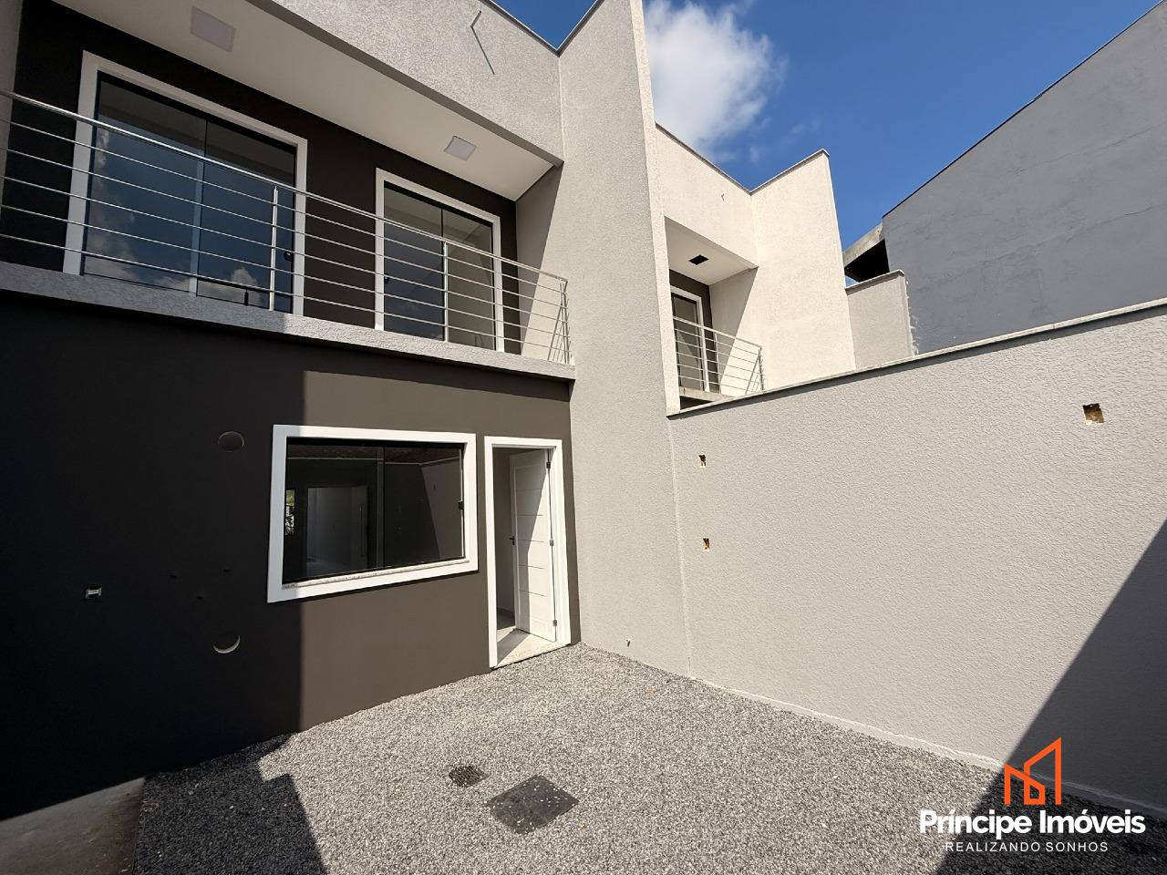 Geminado: Com 4,50 metros de abertura, 08 metros de frente e incríveis 05 metros de fundos. Geminado sobrado de alto padrão, com excelente padrão construtivo e acabamento moderno oferecendo ótimo espaço externo. São 123,74m² de área privativa e 185,48m² de área total, muito bem distribuídos em uma planta funcional e sofisticada. Conta com 03 quartos, sendo 01 suíte com sacada, além de todos os quartos com acesso à sacada, proporcionando mais iluminação e ventilação natural. Ambientes integrados de sala de estar, jantar e cozinha, trazendo amplitude e modernidade ao imóvel. Dispõe ainda de 01 banheiro social, lavabo interno, área de serviço externa e um excelente espaço de fundos, ideal para área de lazer ou futura ampliação.