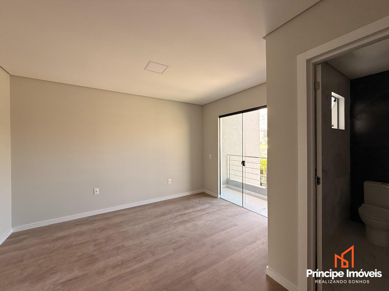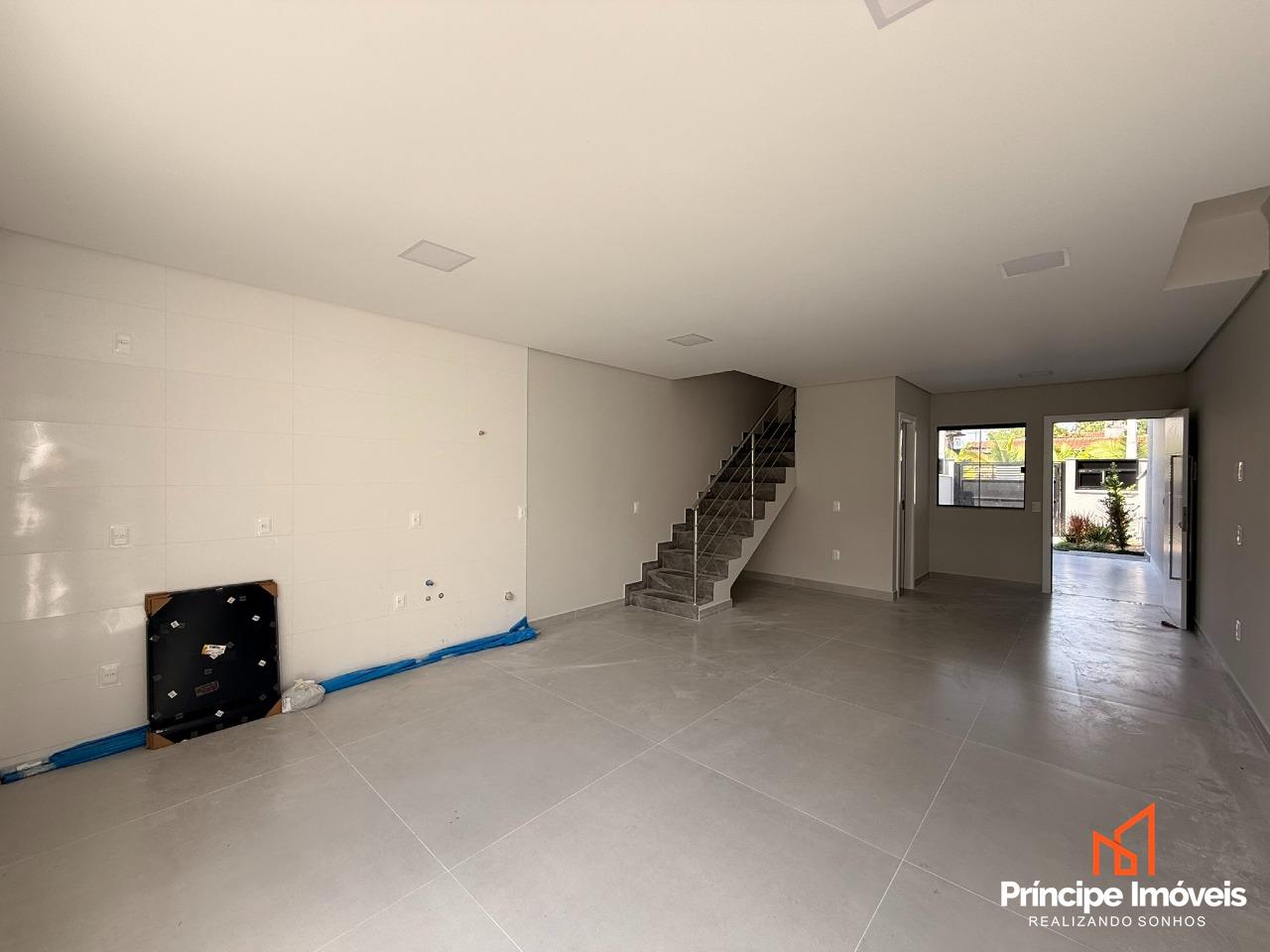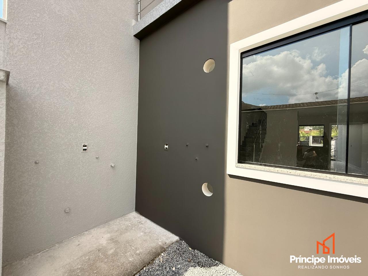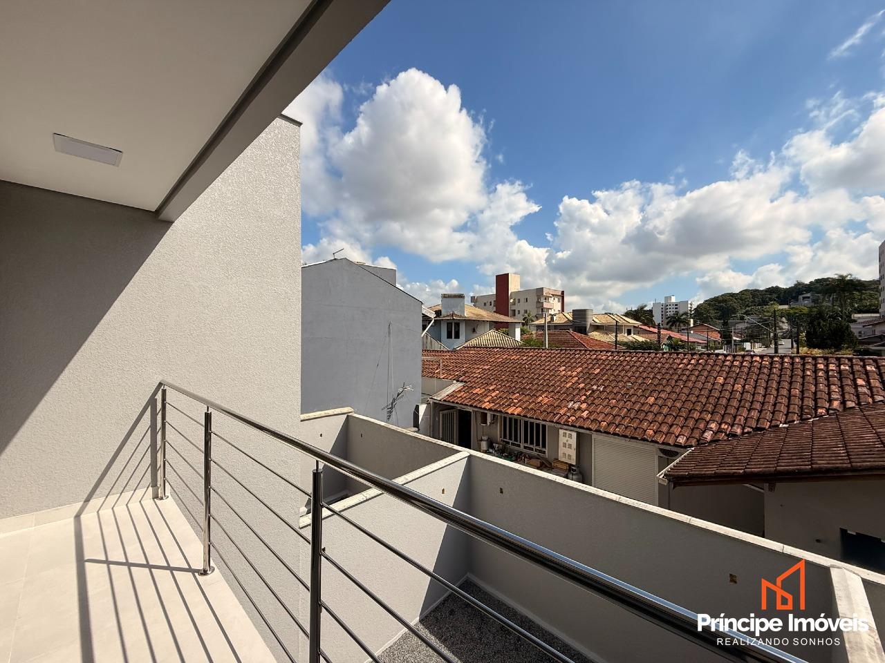 Geminado: Com 4,50 metros de abertura, 08 metros de frente e incríveis 05 metros de fundos. Geminado sobrado de alto padrão, com excelente padrão construtivo e acabamento moderno oferecendo ótimo espaço externo. São 123,74m² de área privativa e 185,48m² de área total, muito bem distribuídos em uma planta funcional e sofisticada. Conta com 03 quartos, sendo 01 suíte com sacada, além de todos os quartos com acesso à sacada, proporcionando mais iluminação e ventilação natural. Ambientes integrados de sala de estar, jantar e cozinha, trazendo amplitude e modernidade ao imóvel. Dispõe ainda de 01 banheiro social, lavabo interno, área de serviço externa e um excelente espaço de fundos, ideal para área de lazer ou futura ampliação.