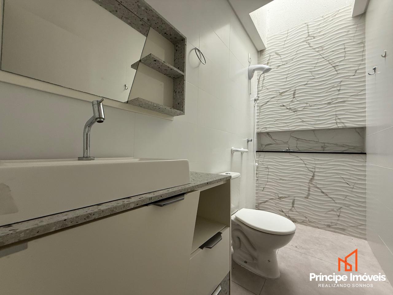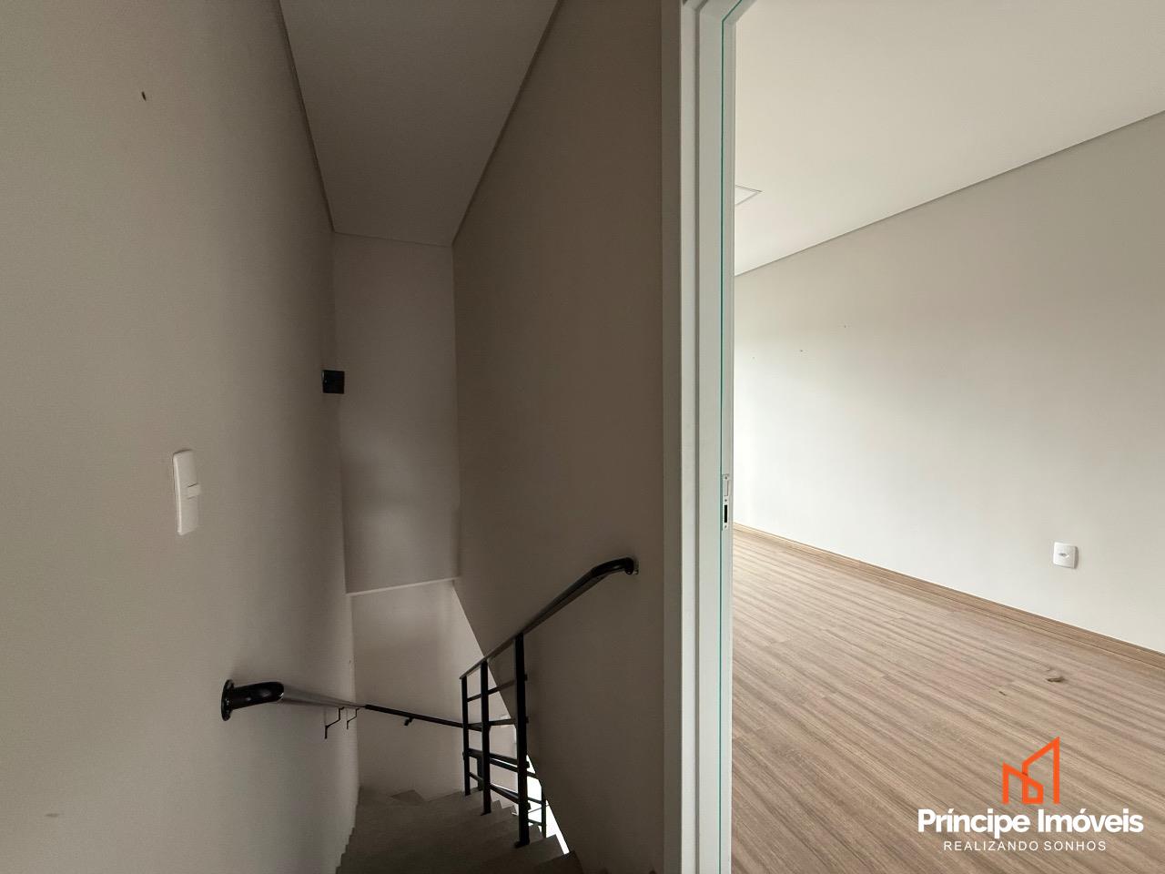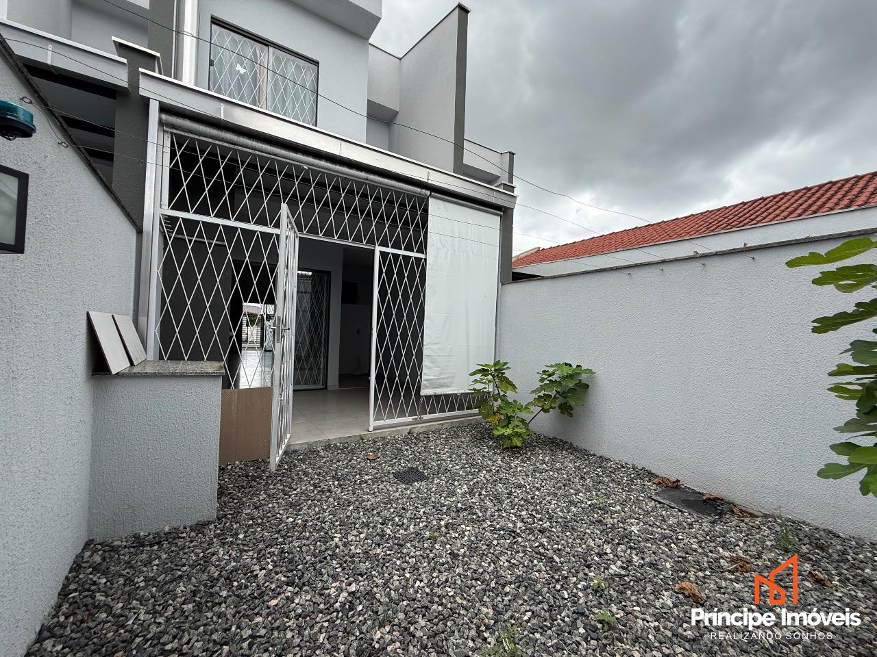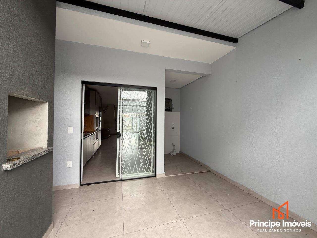 Geminado: Com 04 metros de abertura, 14 metros de frente e 05 metros de fundos, esse geminado é composto por 107,13m² de área total construída, e 102,43m² de área privativa. Este imóvel conta com um ótimo espaço de frente, com uma vaga de garagem coberta, um living integrado de sala de estar/jantar e uma cozinha excelente, 01 lavabo entre o living integrado para dar comodidade ao seu dia-a-dia, na área externa conta com uma área de churrasqueira á carvão e lavandeira separada, com um espaço excelente de fundo. Na parte superior dessa excelente opção temos uma escada lateral com corrimão e guarda corpo de linha suprema, essa opção conta com 03 quartos sendo 01 suíte com banheiro e varanda, 02 quartos bem amplos, com bastante ventilação e 01 banheiro social entre eles. O acabamento trás a qualidade que você merece, porcelanato no piso inferior, e laminado no piso superior, rebaixo em gesso, infra para ar condicionado, portas laqueadas, e muito mais compõe essa opção que se coloca no mercado como oportunidade.