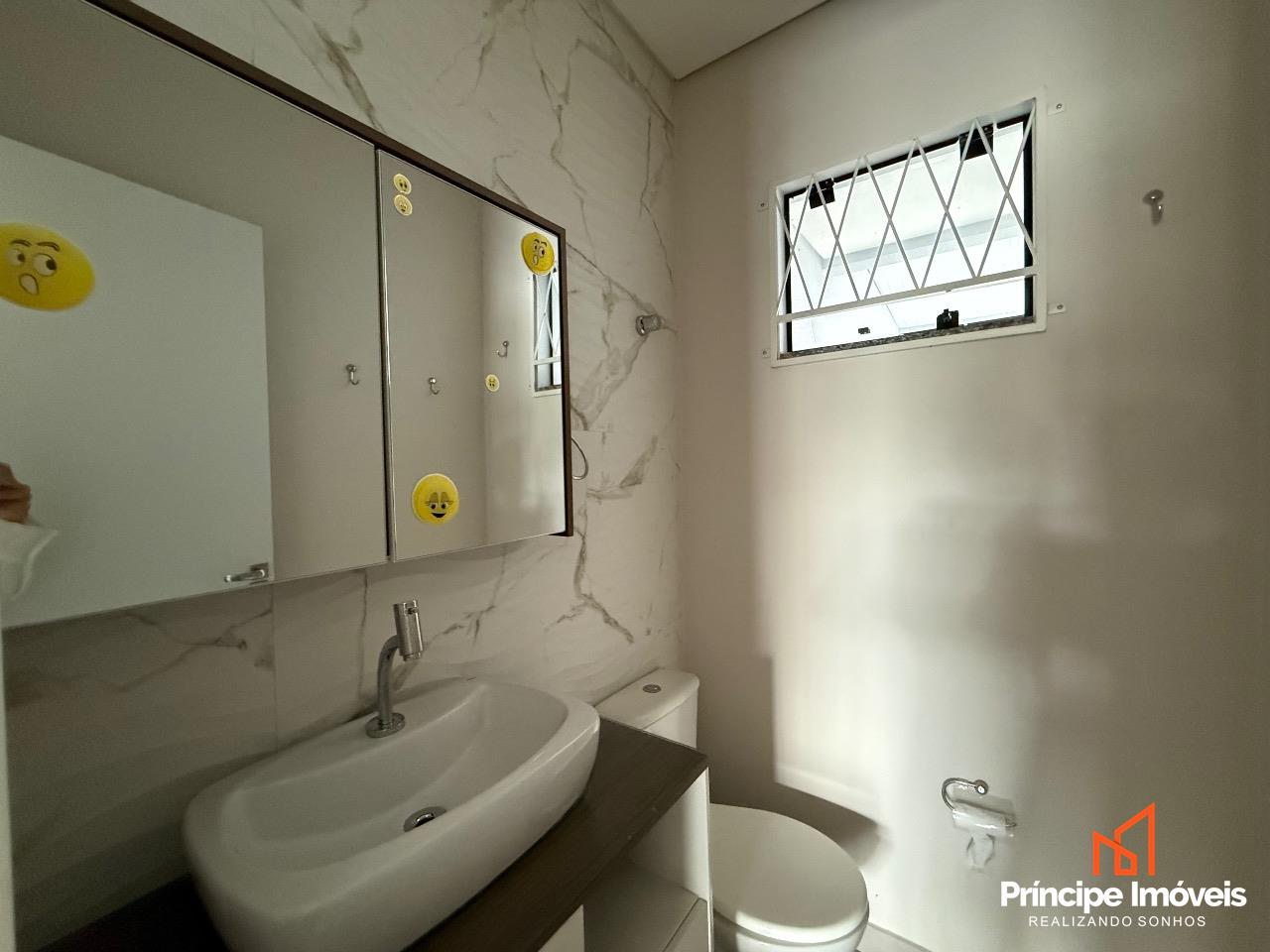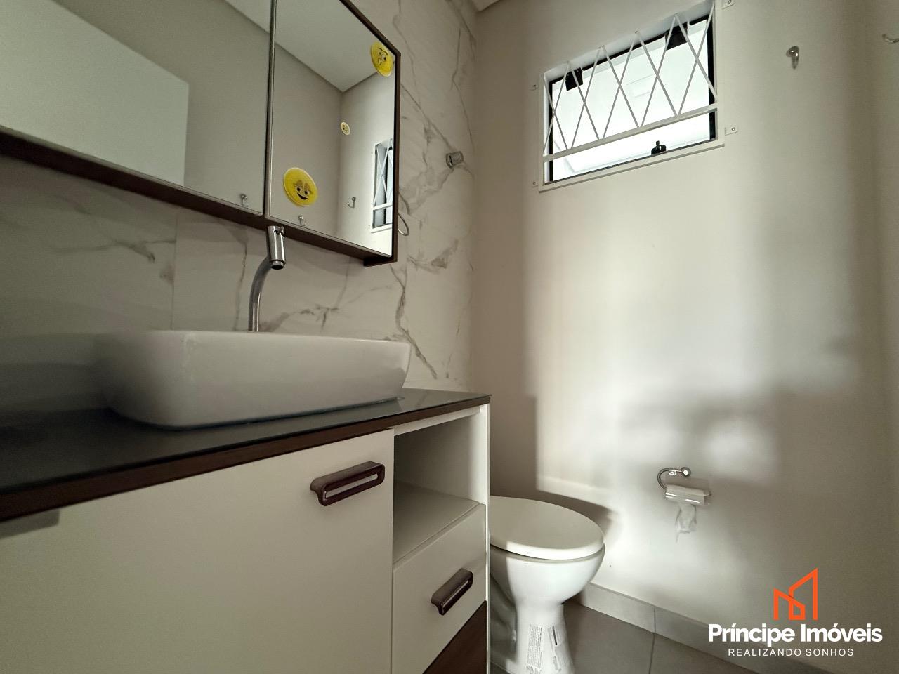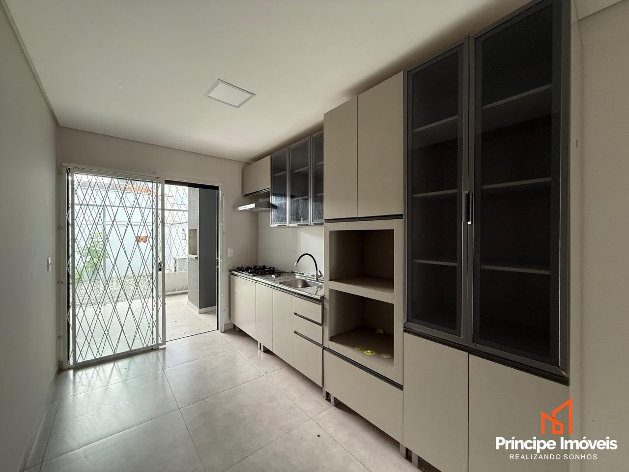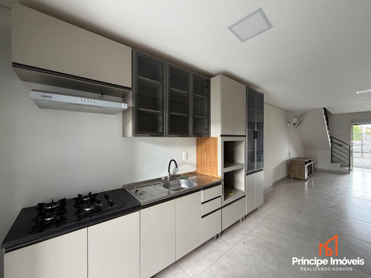 Geminado: Com 04 metros de abertura, 14 metros de frente e 05 metros de fundos, esse geminado é composto por 107,13m² de área total construída, e 102,43m² de área privativa. Este imóvel conta com um ótimo espaço de frente, com uma vaga de garagem coberta, um living integrado de sala de estar/jantar e uma cozinha excelente, 01 lavabo entre o living integrado para dar comodidade ao seu dia-a-dia, na área externa conta com uma área de churrasqueira á carvão e lavandeira separada, com um espaço excelente de fundo. Na parte superior dessa excelente opção temos uma escada lateral com corrimão e guarda corpo de linha suprema, essa opção conta com 03 quartos sendo 01 suíte com banheiro e varanda, 02 quartos bem amplos, com bastante ventilação e 01 banheiro social entre eles. O acabamento trás a qualidade que você merece, porcelanato no piso inferior, e laminado no piso superior, rebaixo em gesso, infra para ar condicionado, portas laqueadas, e muito mais compõe essa opção que se coloca no mercado como oportunidade.