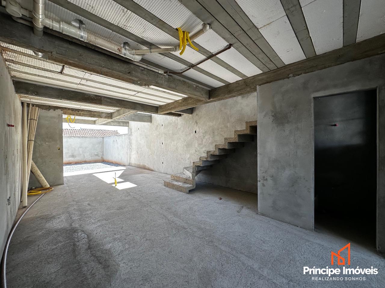 Geminado: Com 4,66 metros de abertura, 07 metros de frente e 07 metros de fundos. Este geminado se destaca com seus 123,88m² de área privativa e 126,08m² de área total. Ele possui uma distribuição bem projetada contando com sala de estar, sala de jantar, lavabo, cozinha e área de serviço, uma linda área gourmet com churassequeira e 03 quartos sendo 01 suíte. Além disso, há 02 vagas de garagem disponíveis, uma coberta e uma descoberta. O acabamento foi cuidadosamente planejado para oferecer modernidade e elegância, com detalhes em massa corrida e rebaixamento em gesso em todos os cômodos, persianas elétricas, espera de tubulação para agua quente, infraestrutura para receber instalação de ar condicionado, e luz subterrânea. Entrega prevista para Dezembro/2025
