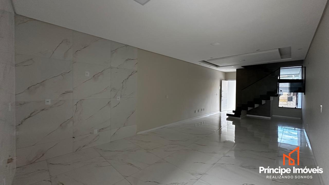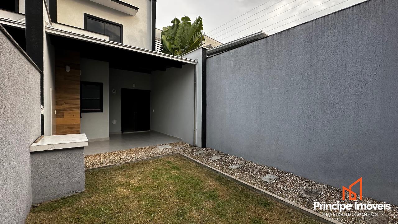 Geminado: Com 04 metros de abertura, 10 metros de frente e 06 metros de fundo, em uma planta muito bem distribuída em 123,95m² de área construída e 131,10m² de área total, este imóvel se destaca pela modernidade, sofisticação e conforto proporcionado pela excelente disposição dos espaços. Conta com uma garagem espaçosa com capacidade para até 02 carros, sendo 01 vaga coberta e uma vaga 01 descoberta. Possui uma ampla área social com sala de estar, jantar, cozinha conjugadas e lavanderia privativa e lavabo, conta também com um aconchegante jardim com churrasqueira a carvão. No piso superior possui 03 quartos, sendo 01 suíte. O imóvel conta com infraestrutura para ar-condicionado, tubulação para agua quente, massa corrida, rebaixo em gesso, porcelanato na parte inferior e vinílico na parte superior.