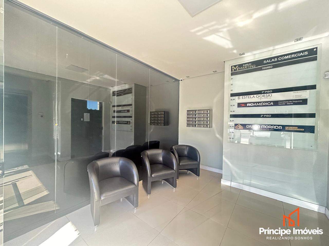 Ampla sala comercial 2° possuindo 45m² de área interna e privativa, com excelente acabamento em porcelanato, luzes indiretas e um banheiro social. Ainda, contém, estacionamento frontal rotativo com mais de 07 vagas. Infra para cabeamento elétrico, internet e ar-condicionado.