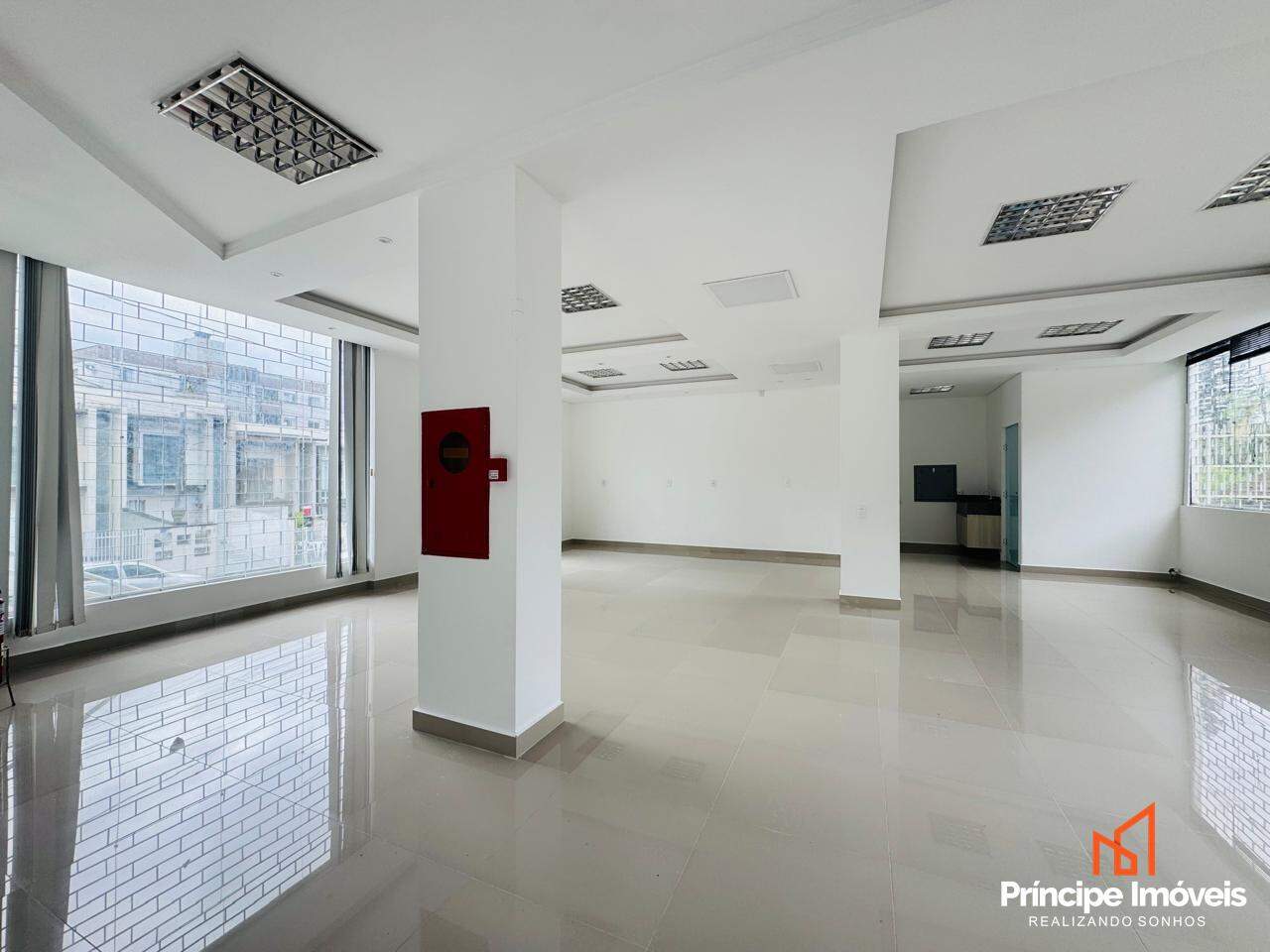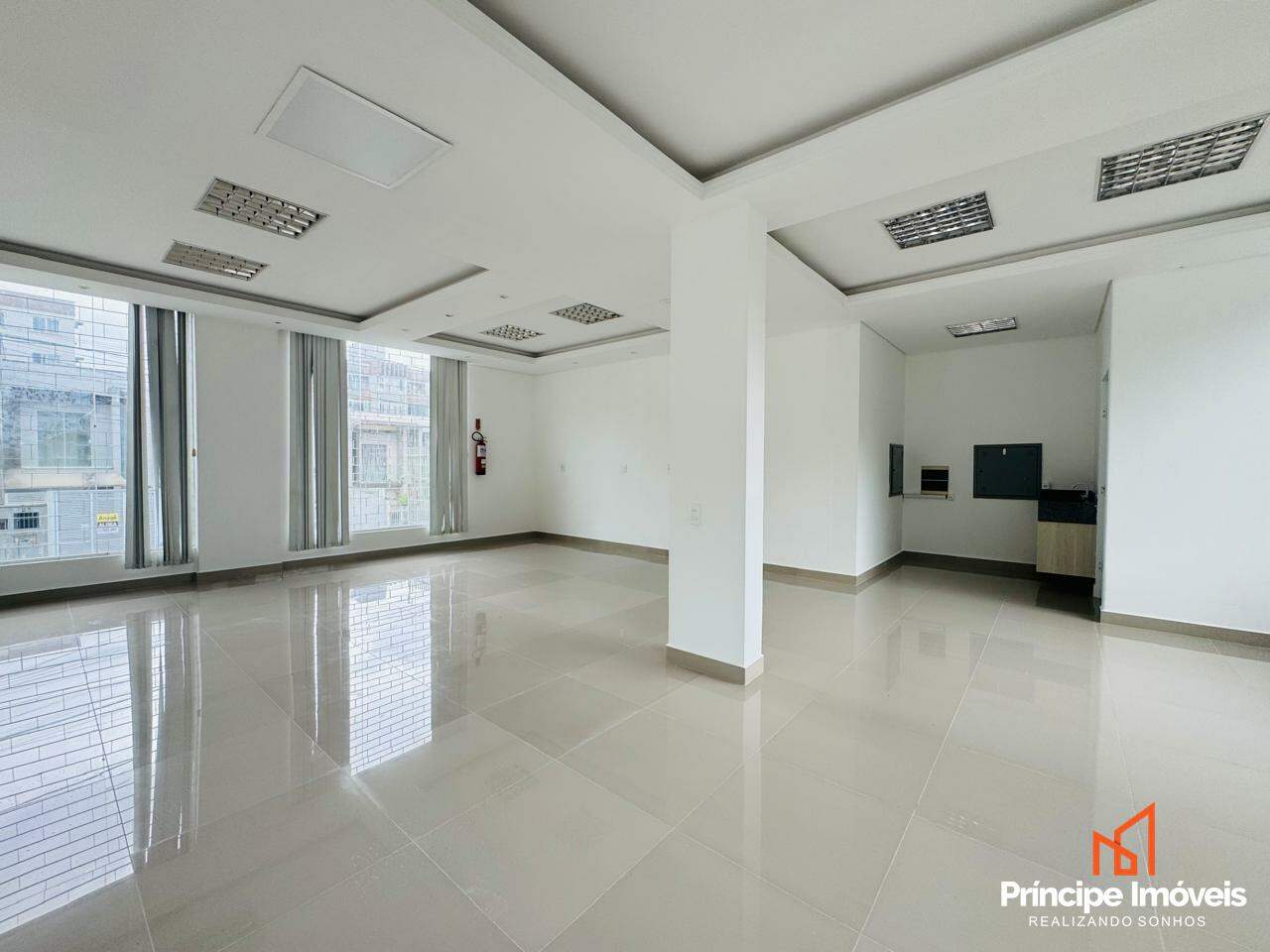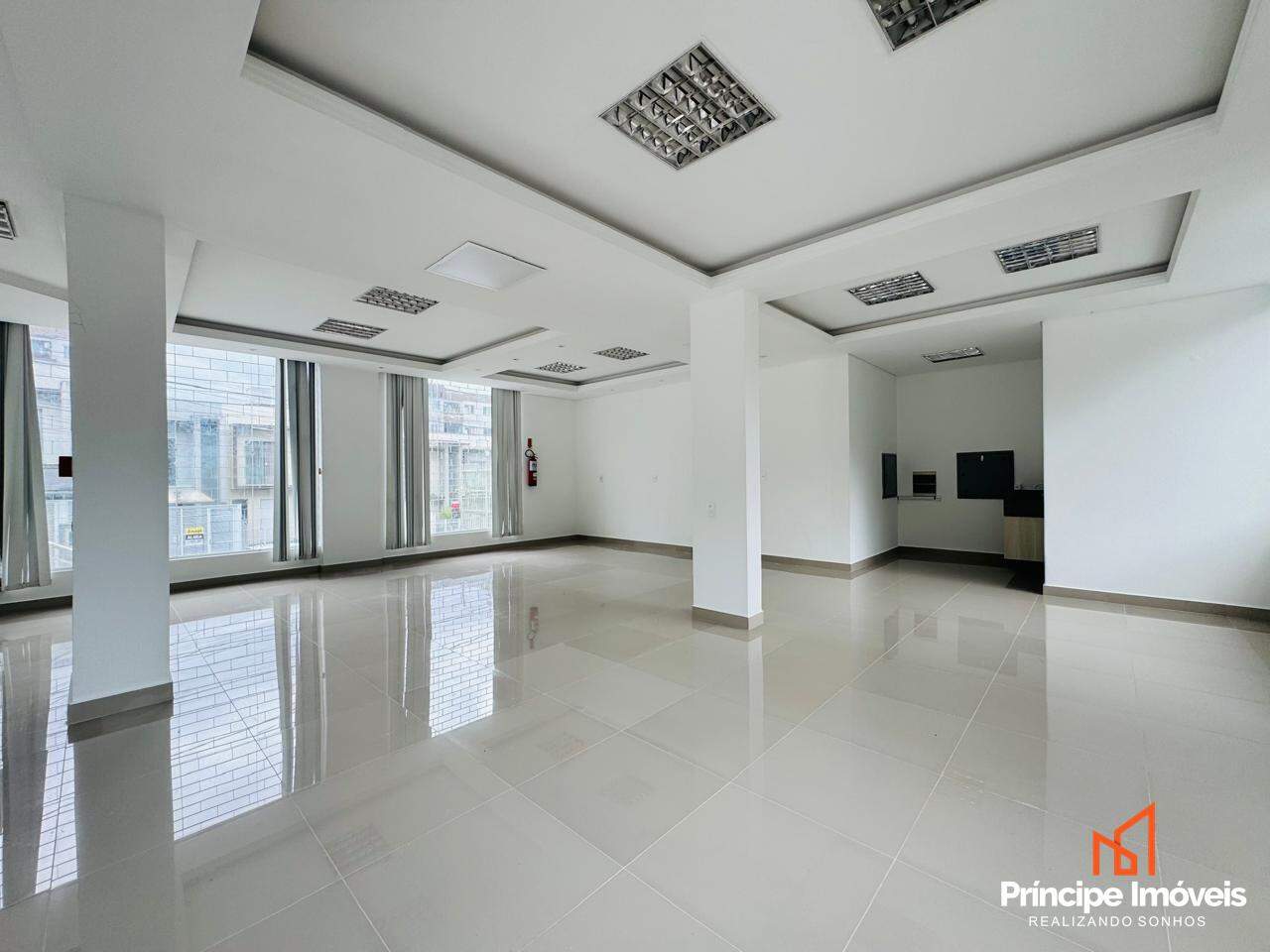 Ampla sala comercial térrea possuindo 100m² de área interna e privativa, com excelente acabamento em porcelanato, luzes indiretas. Ampla vitrine em vidro com grades de proteção, e um banheiro social. Ainda, contém, estacionamento frontal rotativo com mais de 07 vagas. Infra para cabeamento elétrico, internet e ar-condicionado.