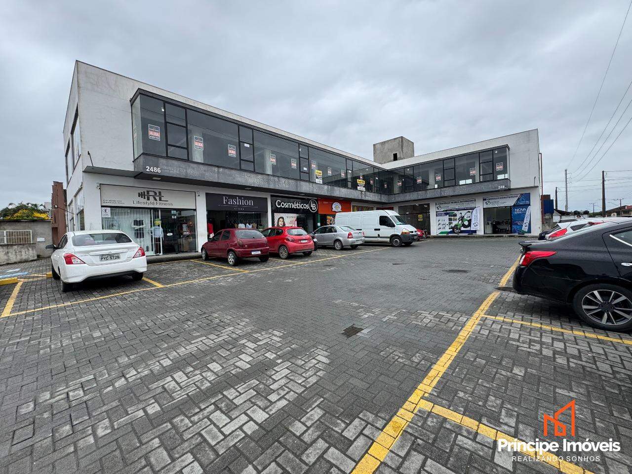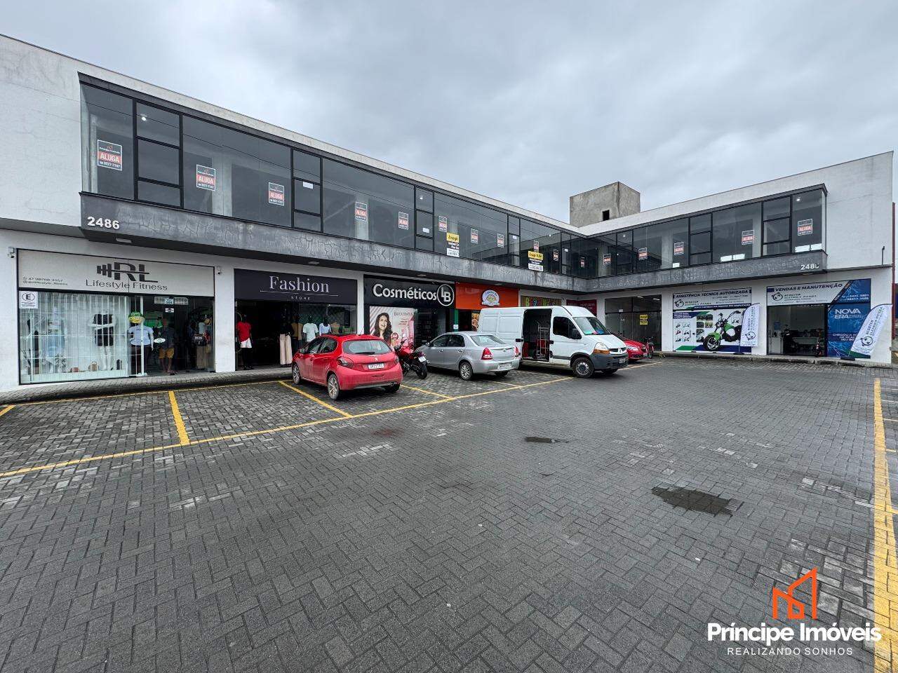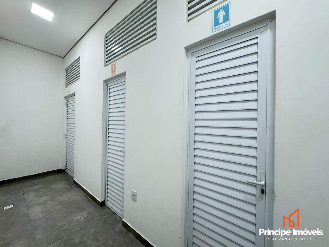 Condomínio comercial conta com estacionamento rotativo, serviço de zeladoria, e banheiros sociais de uso comum.