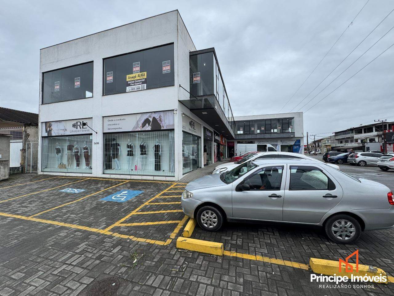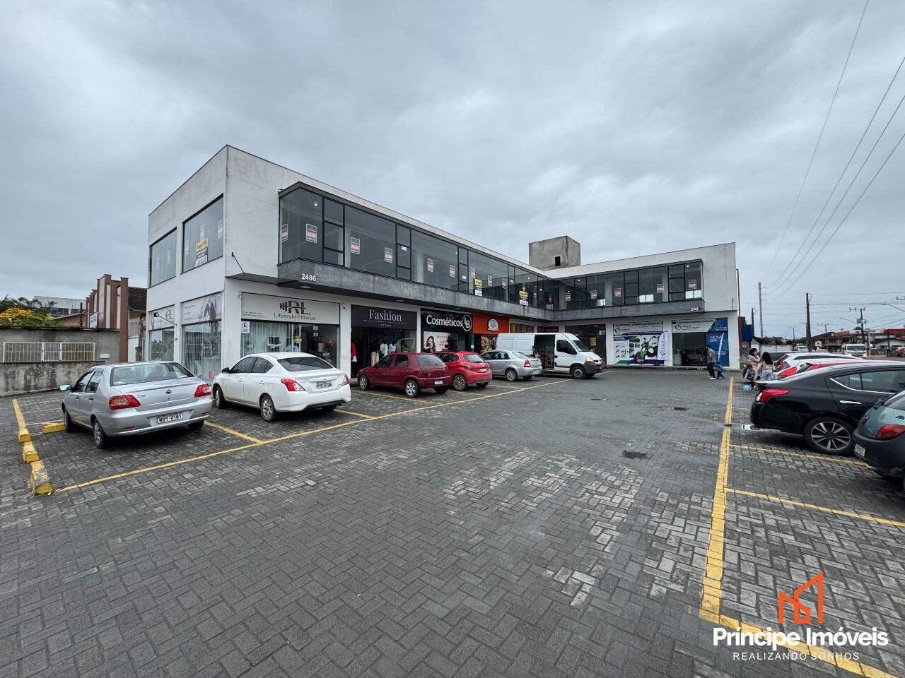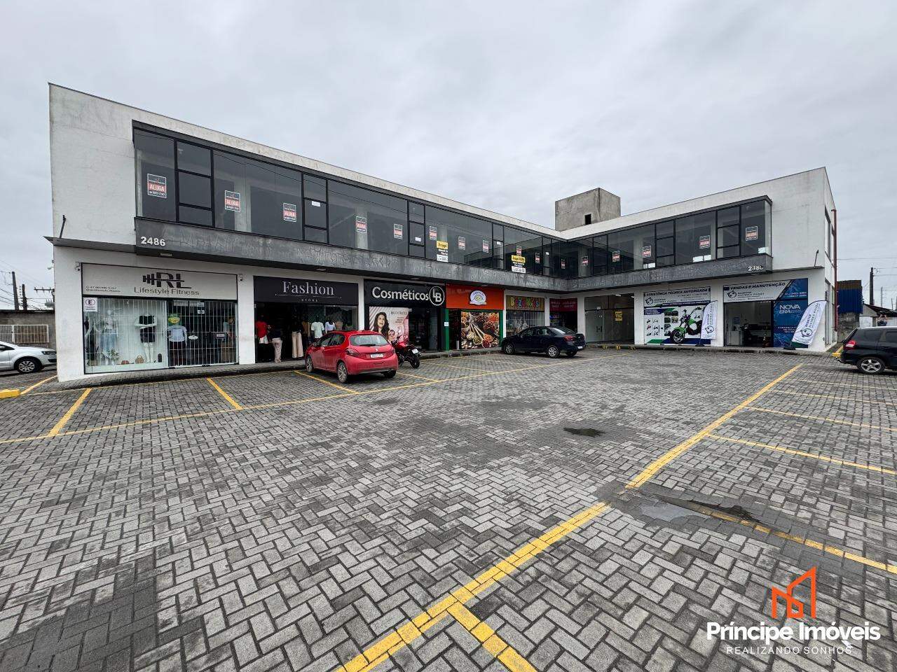 Condomínio comercial conta com estacionamento rotativo, serviço de zeladoria, e banheiros sociais de uso comum.