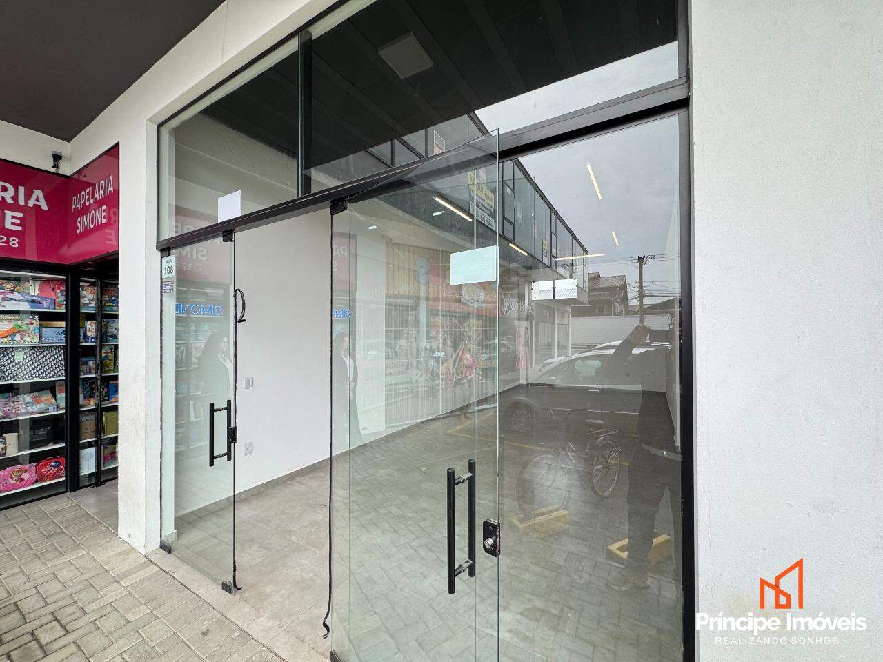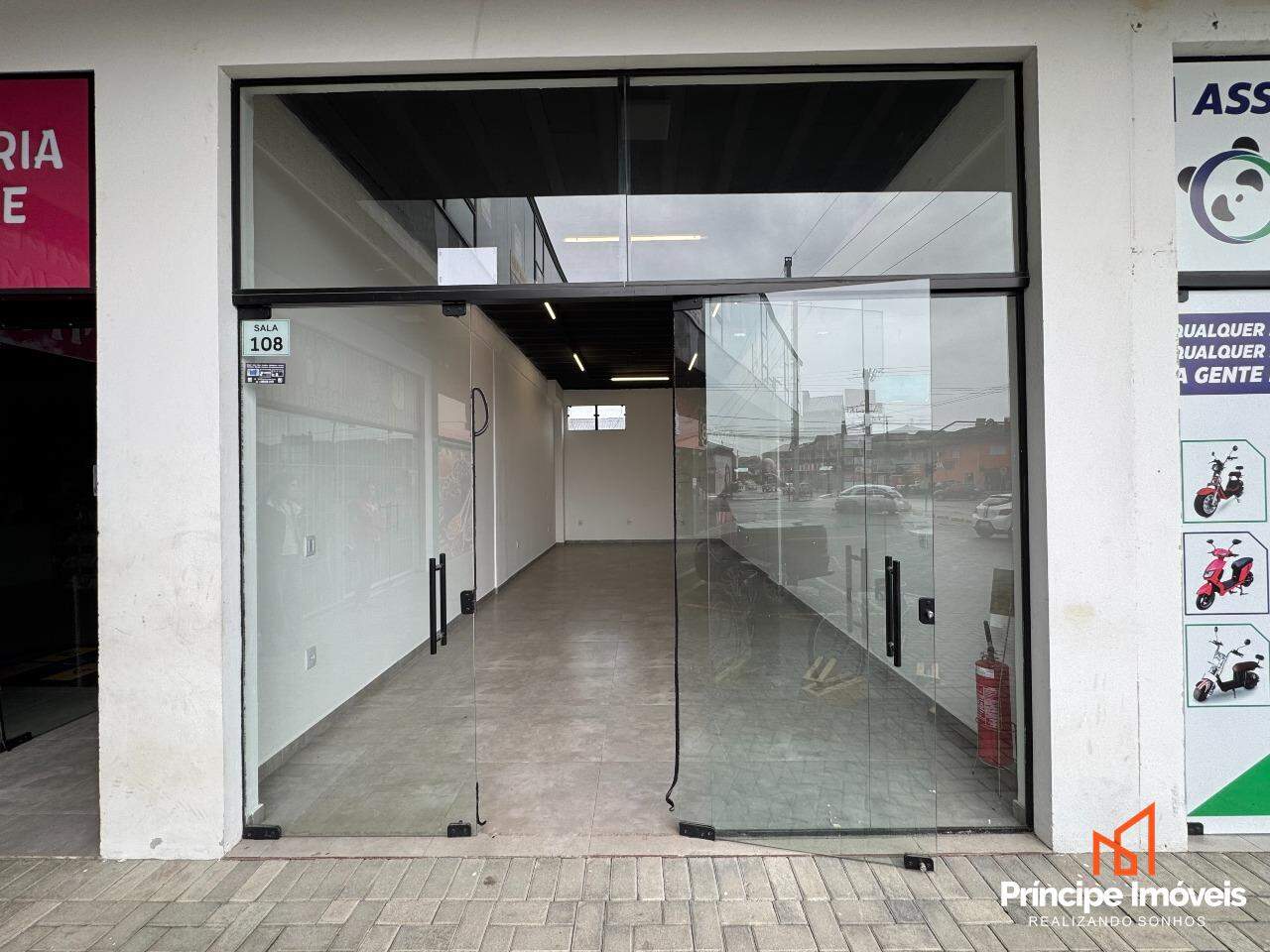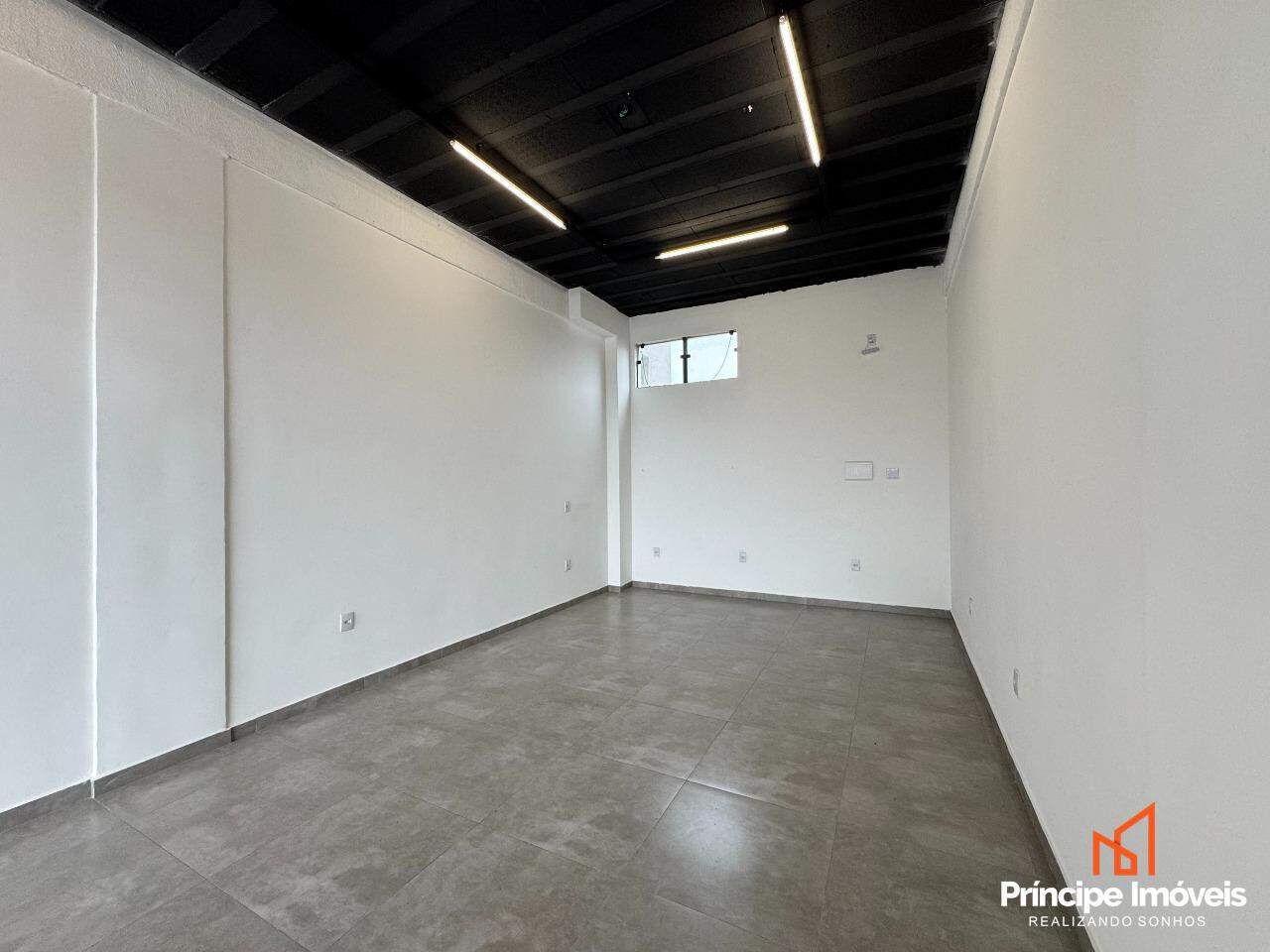 Sala comercial térrea possuindo 30m² de área interna e privativa. Contém infraestrutura para instalação de ar condicionado e personalização de rede elétrica. Possuí acabamento em piso porcelanato, paredes em drywall, e vitrine em vidro.