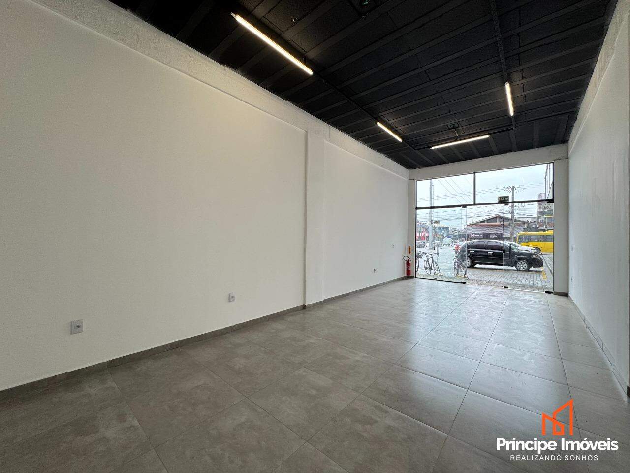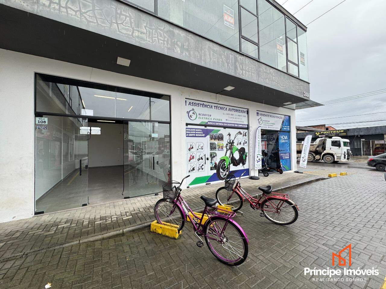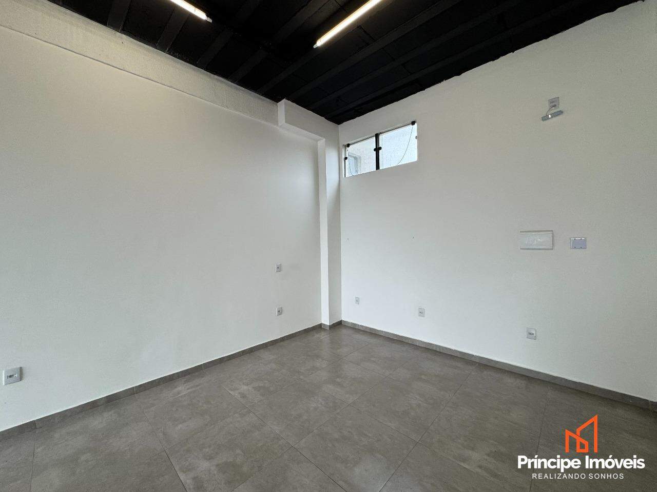 Sala comercial térrea possuindo 30m² de área interna e privativa. Contém infraestrutura para instalação de ar condicionado e personalização de rede elétrica. Possuí acabamento em piso porcelanato, paredes em drywall, e vitrine em vidro.